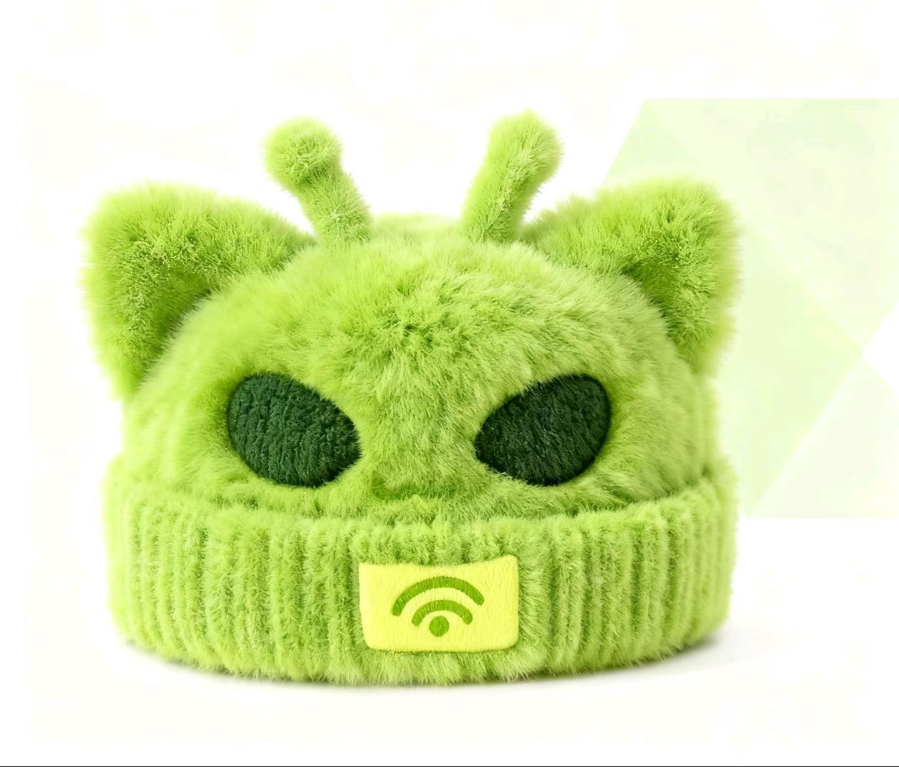 This trending alien kitten baseball cap/furry hat is a winter essential – a green kitten hat that's a hit on Xiaohongshu (Little Red Book).