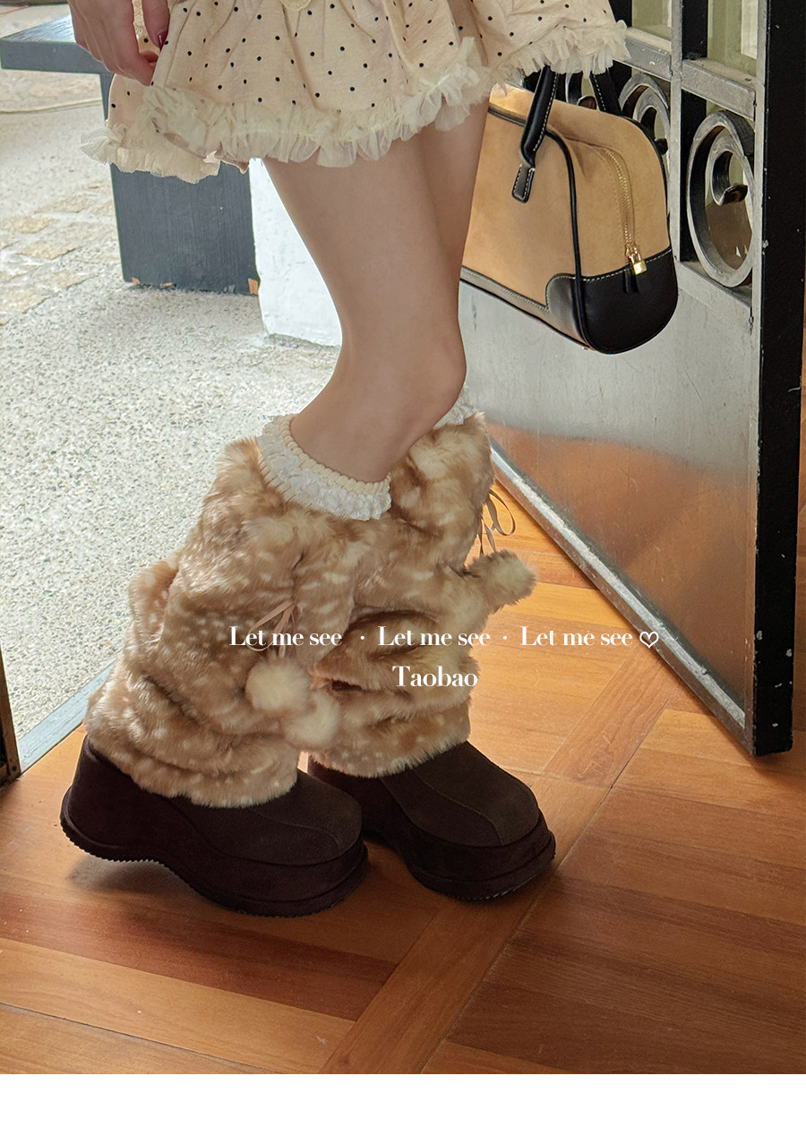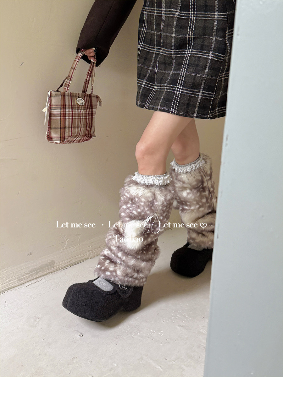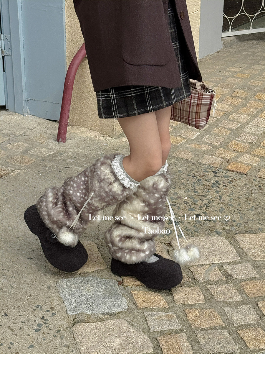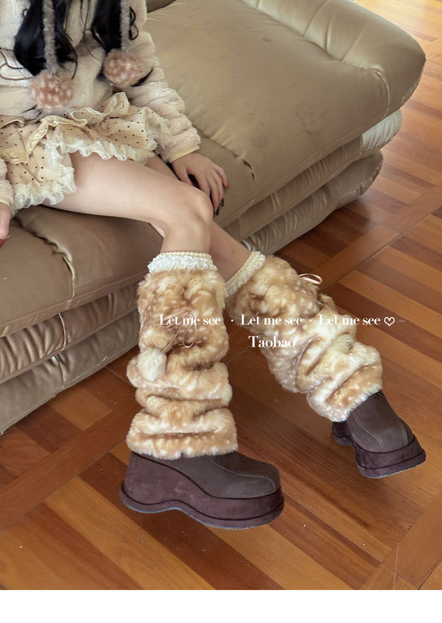 LET ME SEE 复古小鹿少女感堆堆加厚袜套 冬日甜美粉色鹿保暖袜套 [Original Page Link]