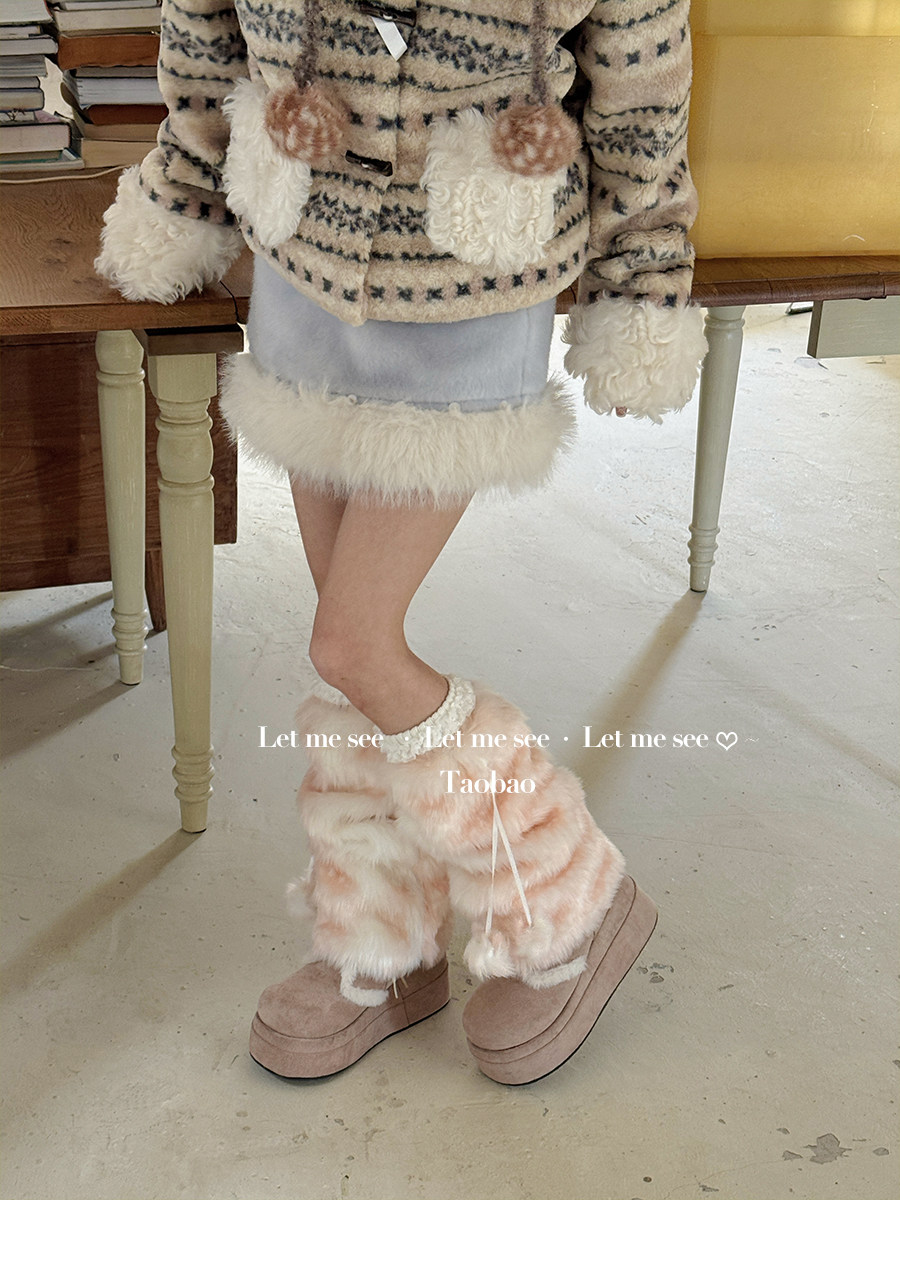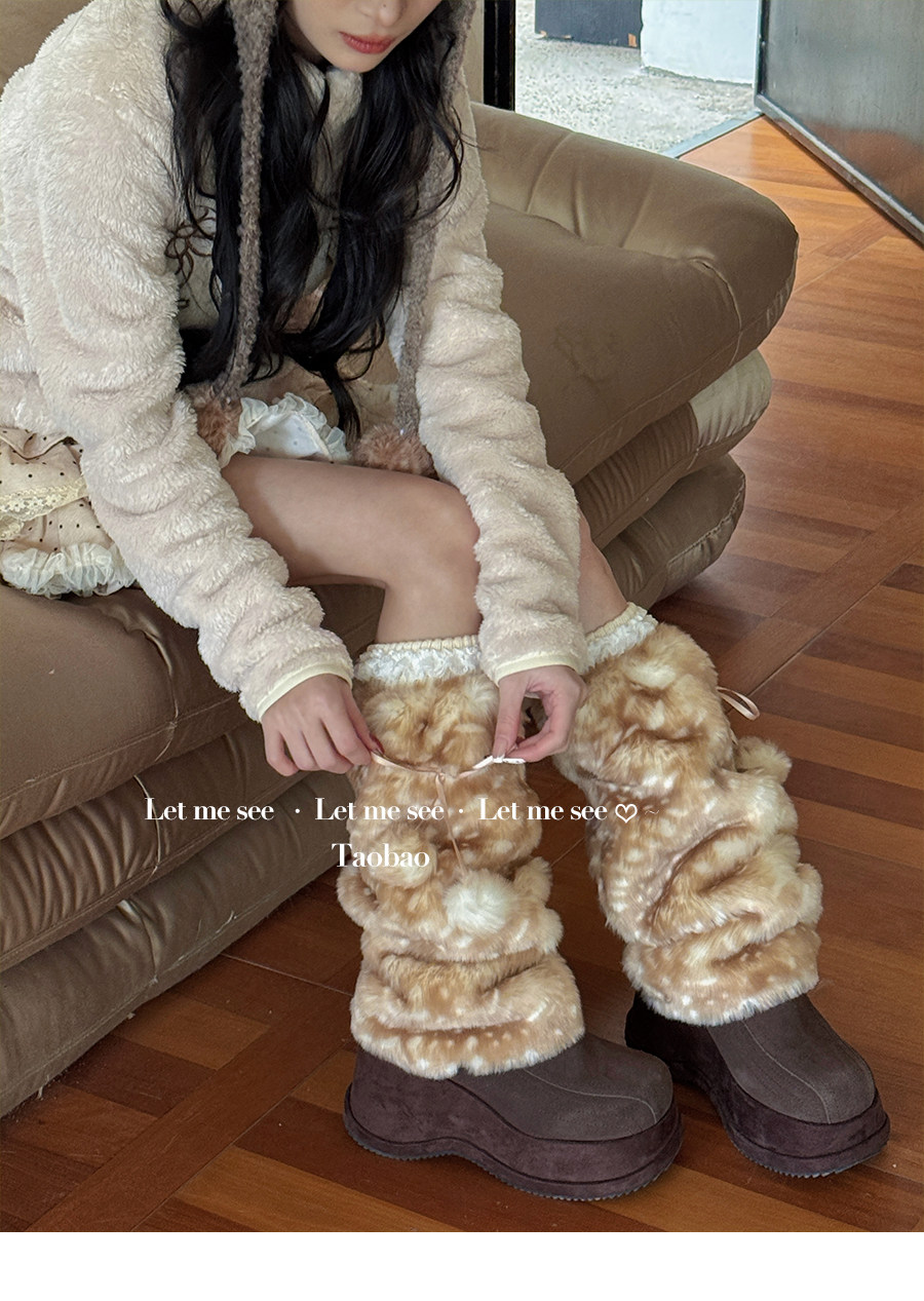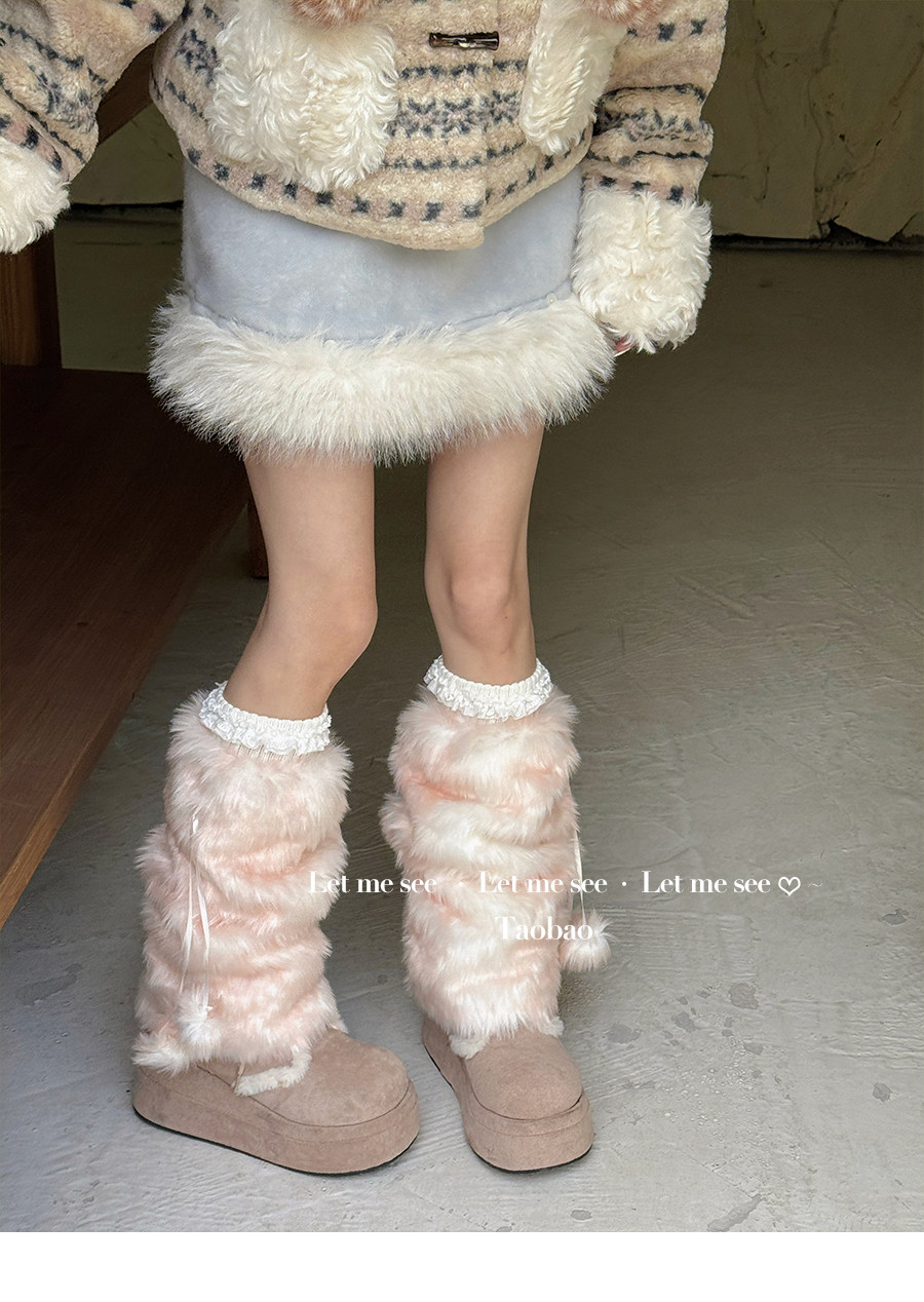LET ME SEE 复古小鹿少女感堆堆加厚袜套 冬日甜美粉色鹿保暖袜套 [Original Page Link]