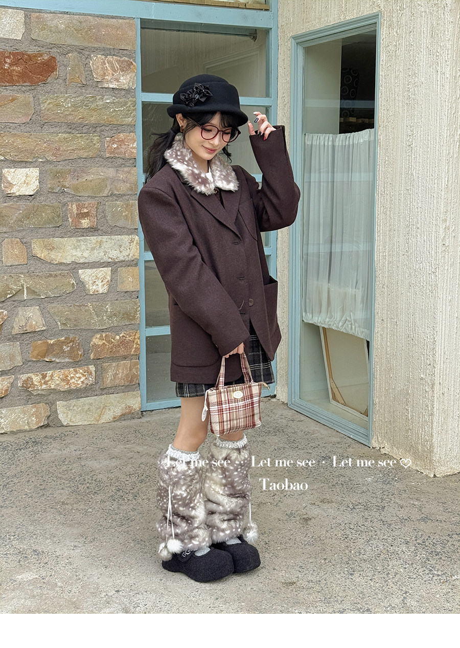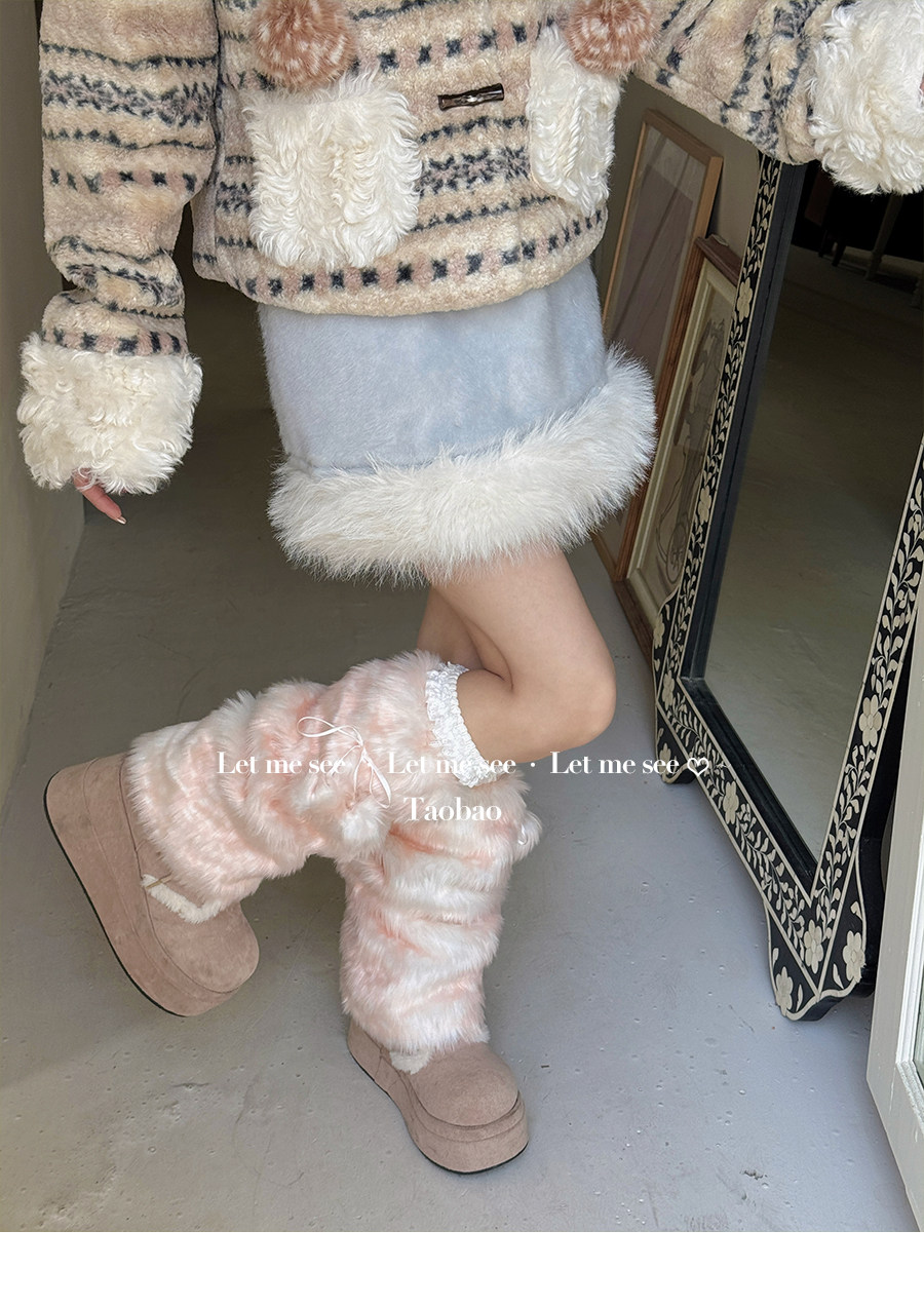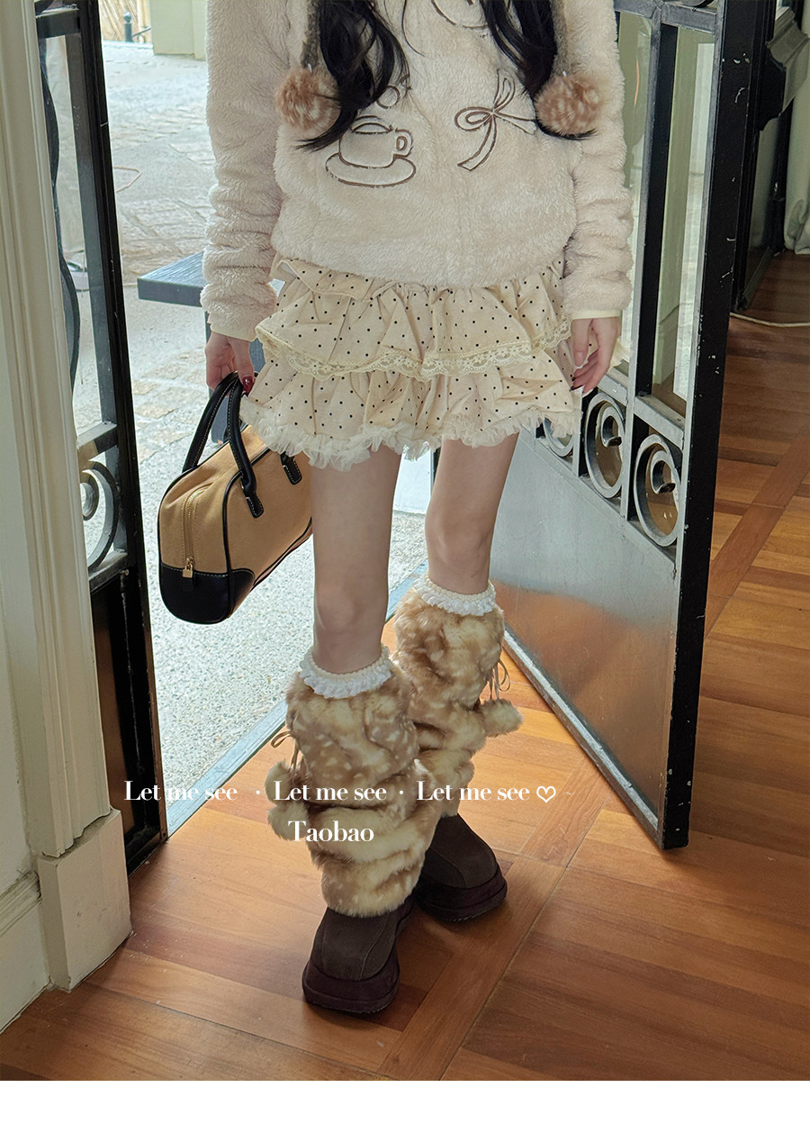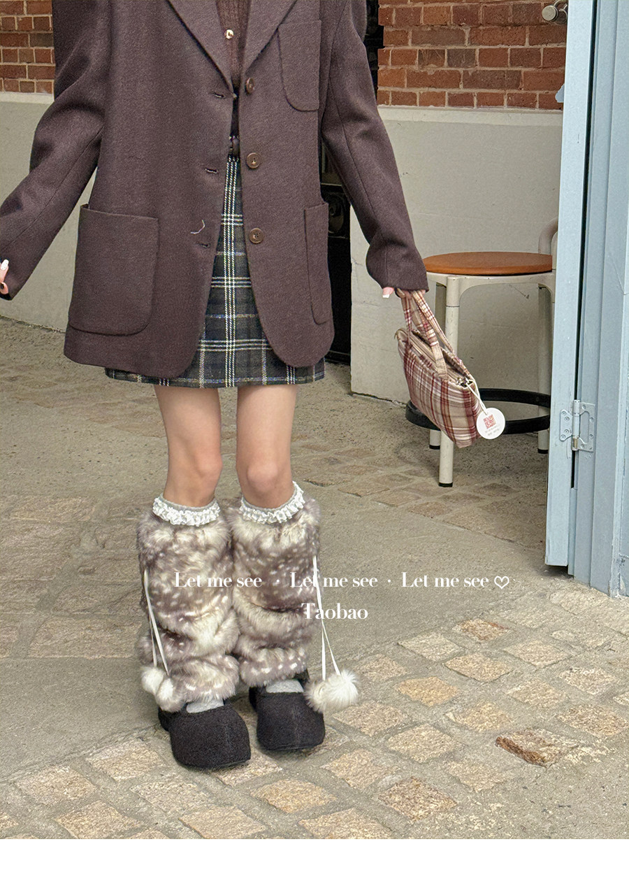LET ME SEE 复古小鹿少女感堆堆加厚袜套 冬日甜美粉色鹿保暖袜套 [Original Page Link]