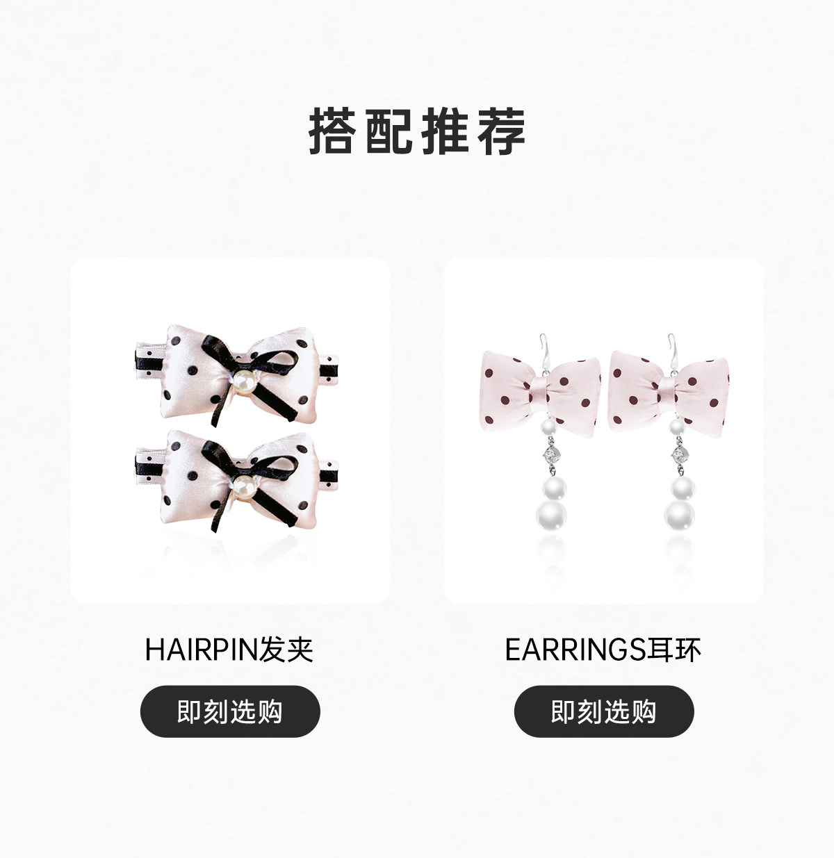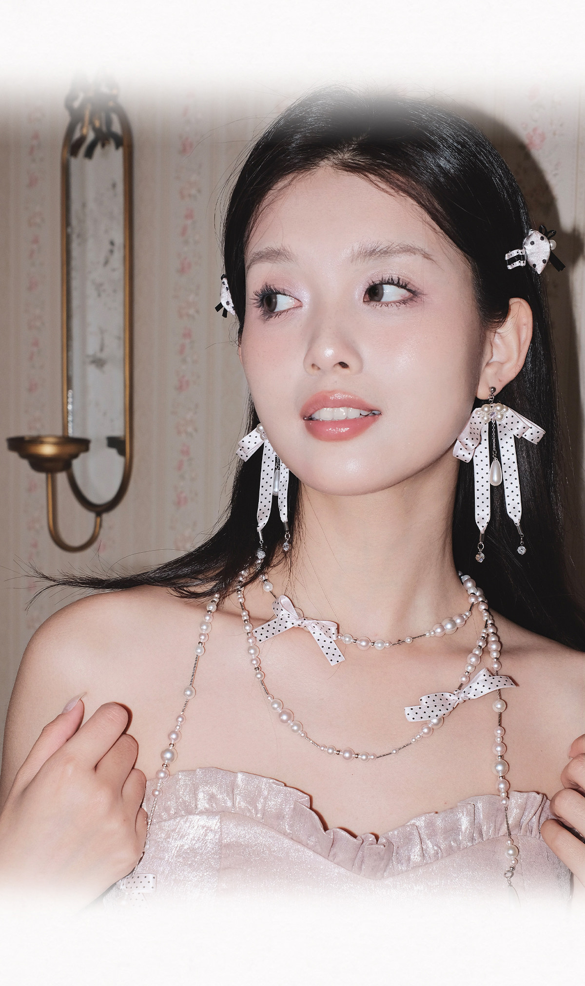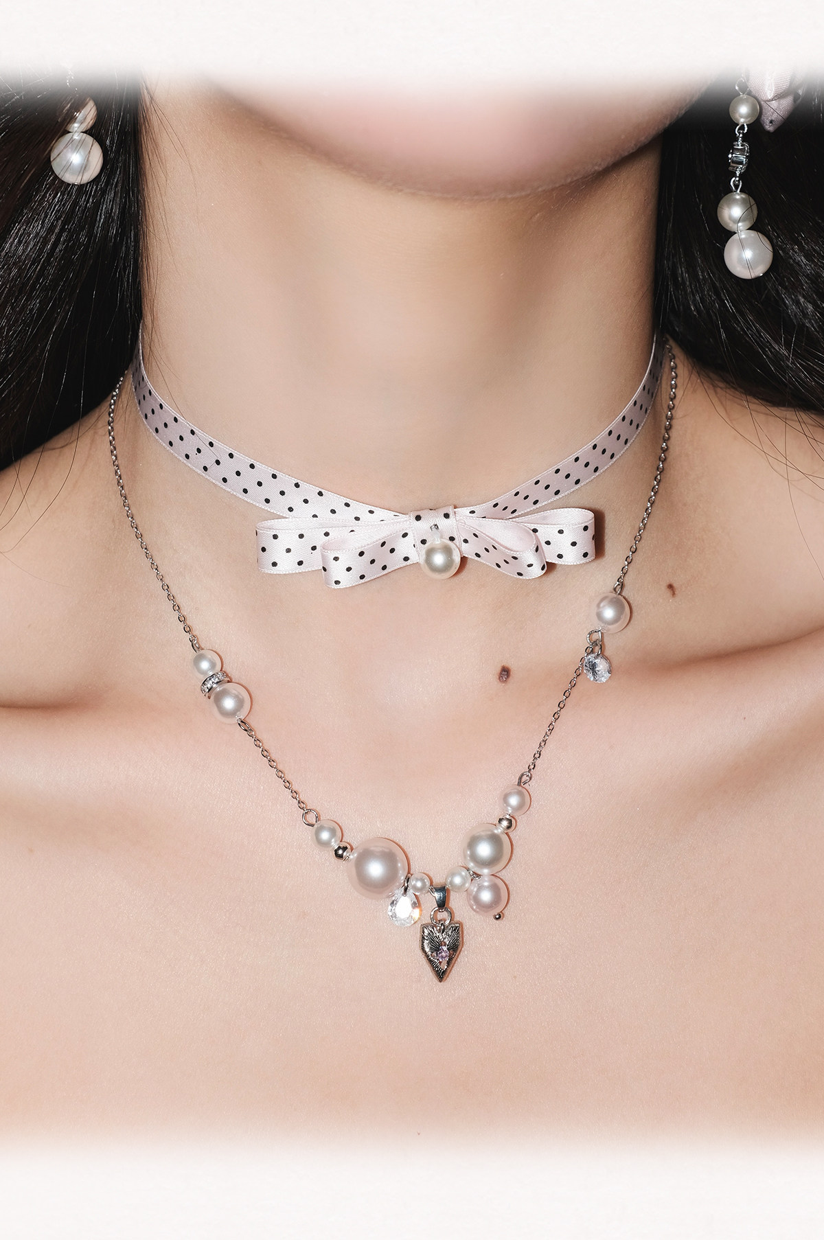 Polka dot lovers, Miu style! Original niche satin bow pearl necklace, double-layer long sweater chain.
