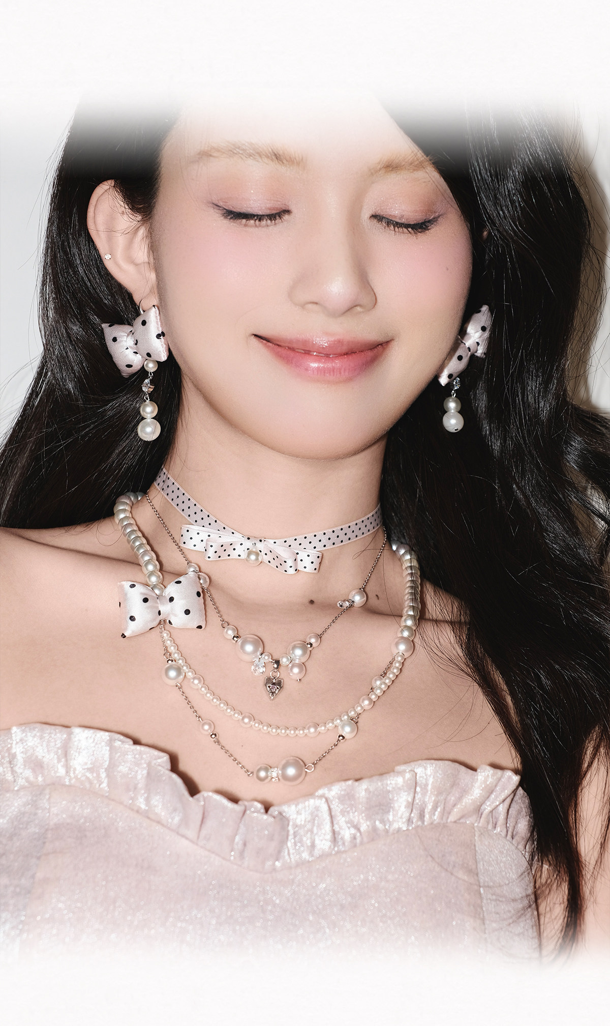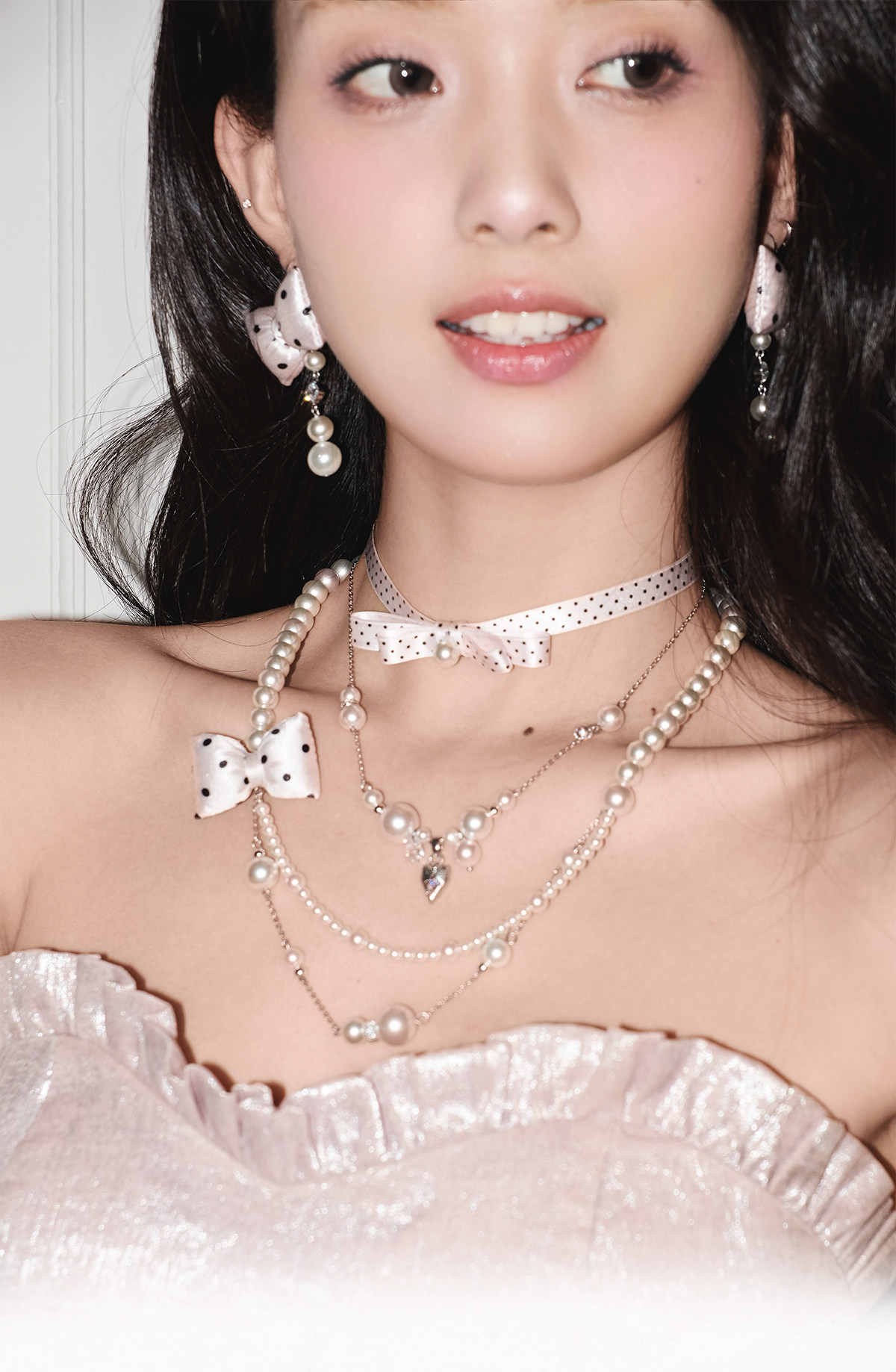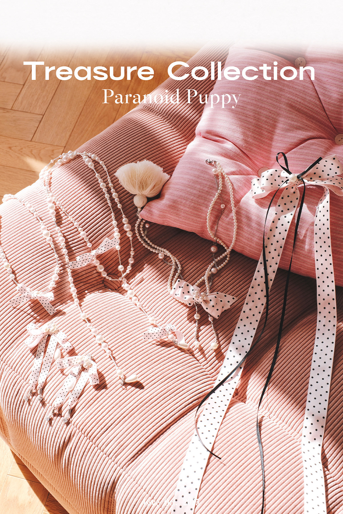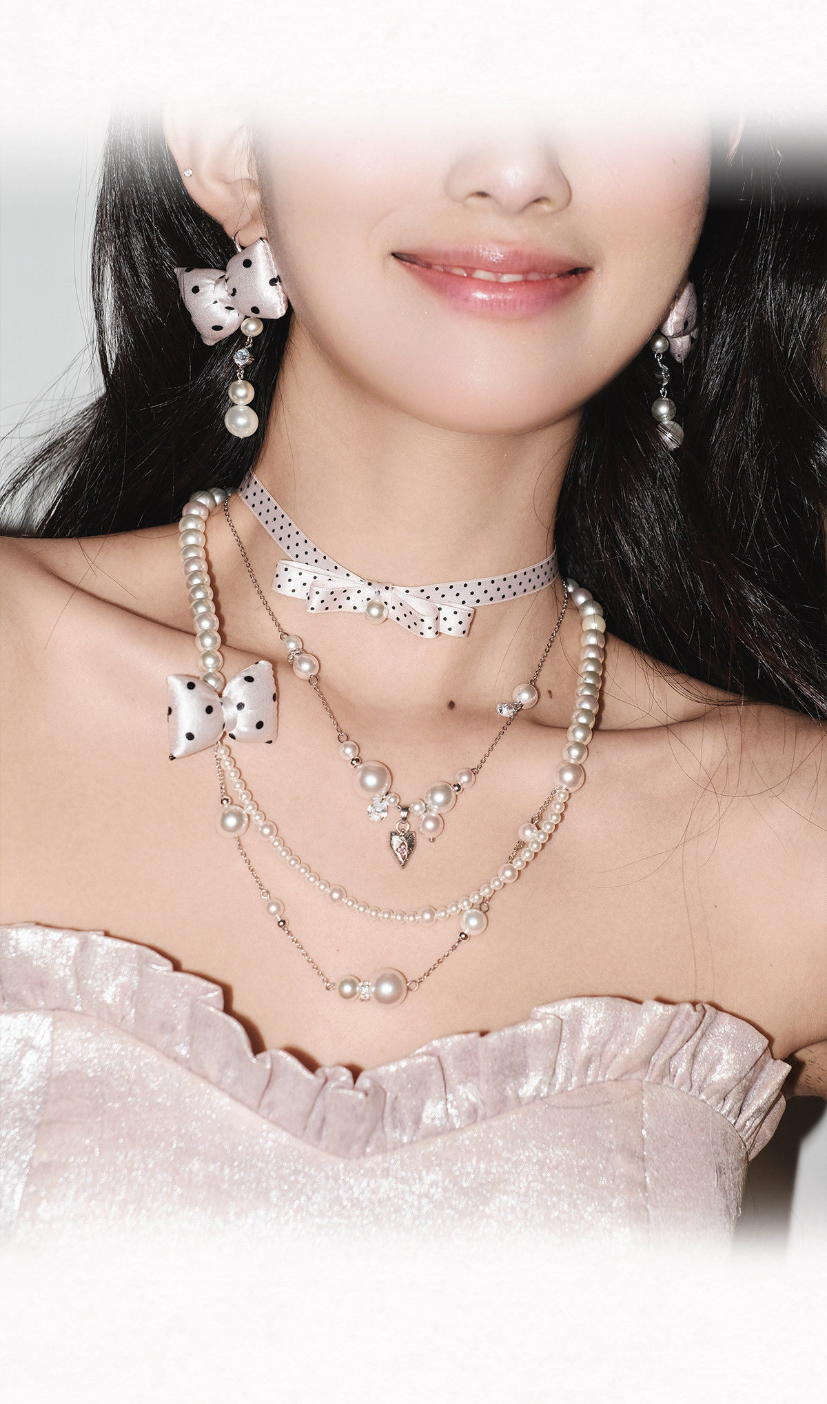 Polka dot lovers, Miu style! Original niche satin bow pearl necklace, double-layer long sweater chain.