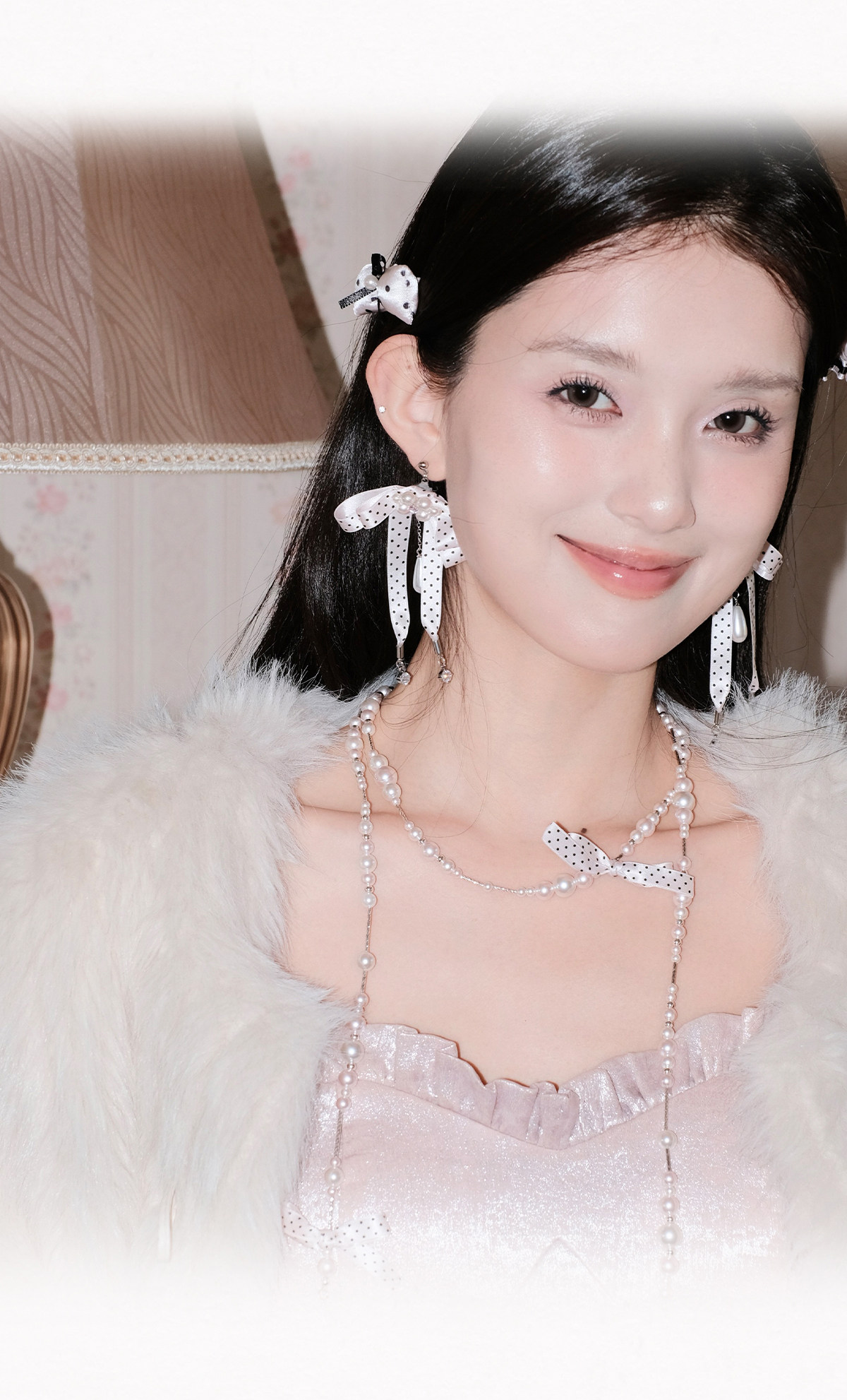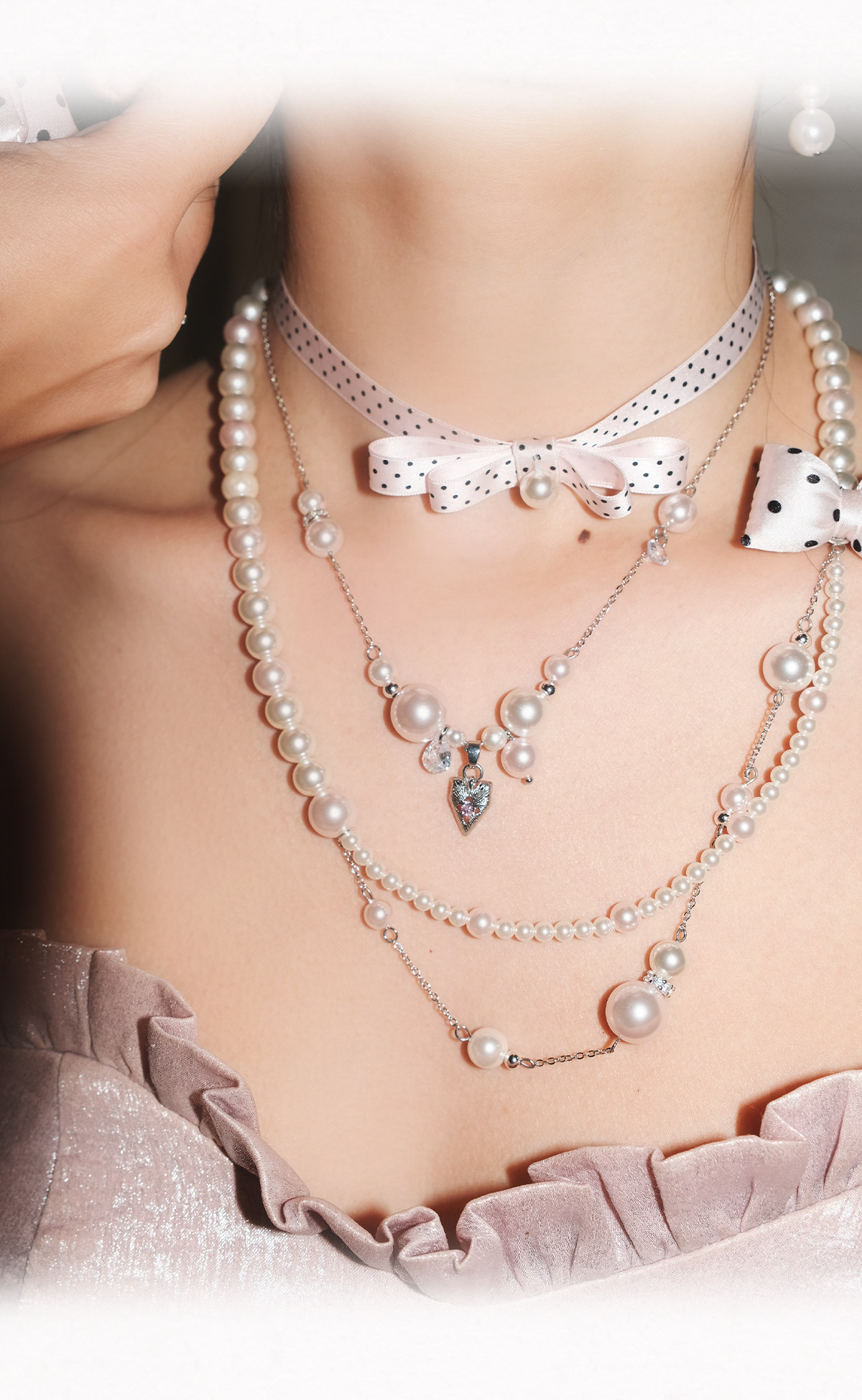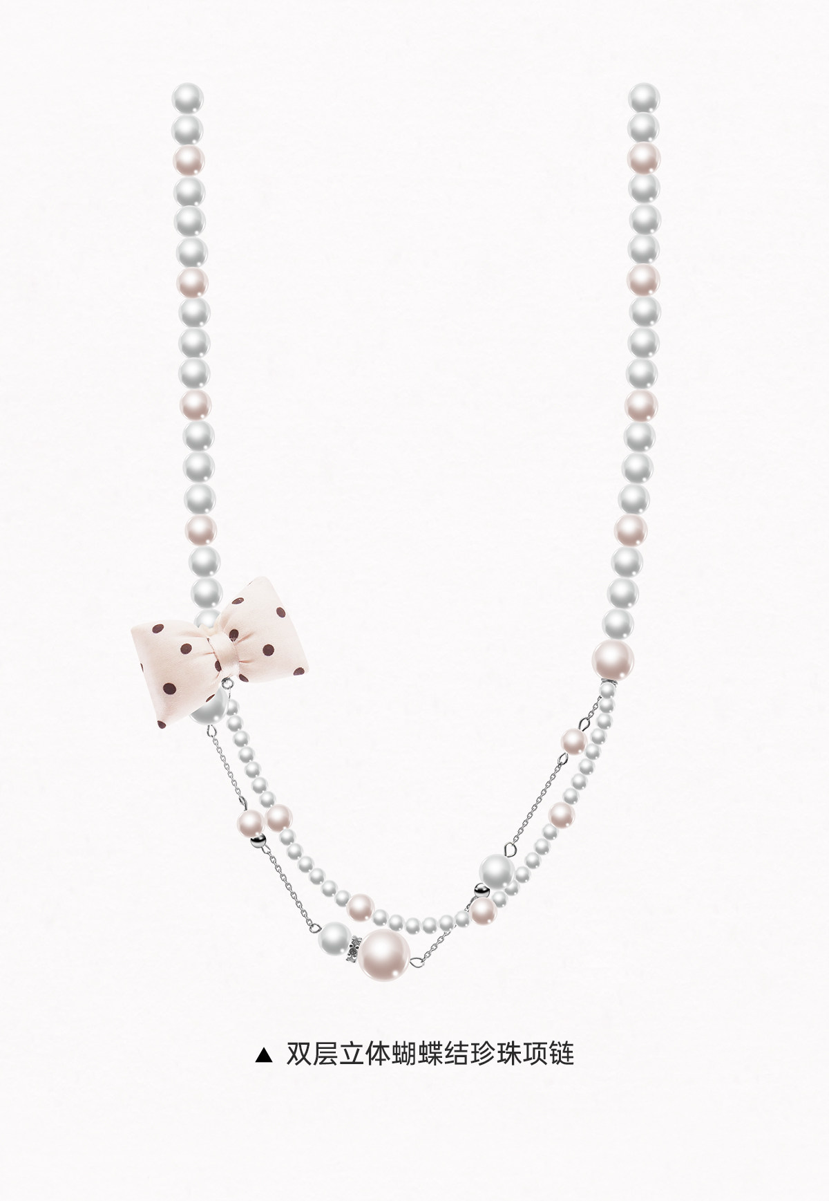 波点控miu系!原创小众绸缎蝴蝶结少女珍珠项链双层长款毛衣链 [Original Page Link]