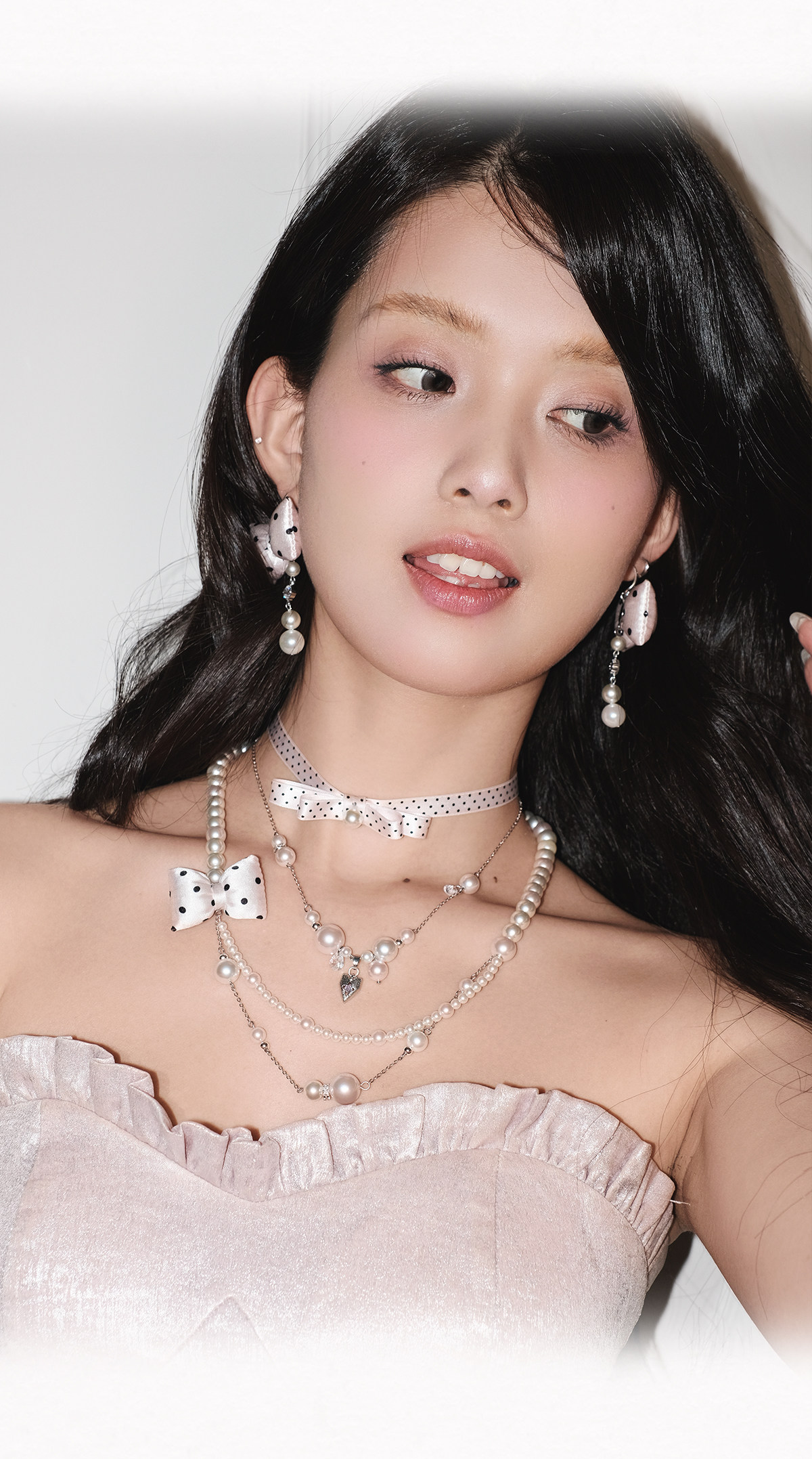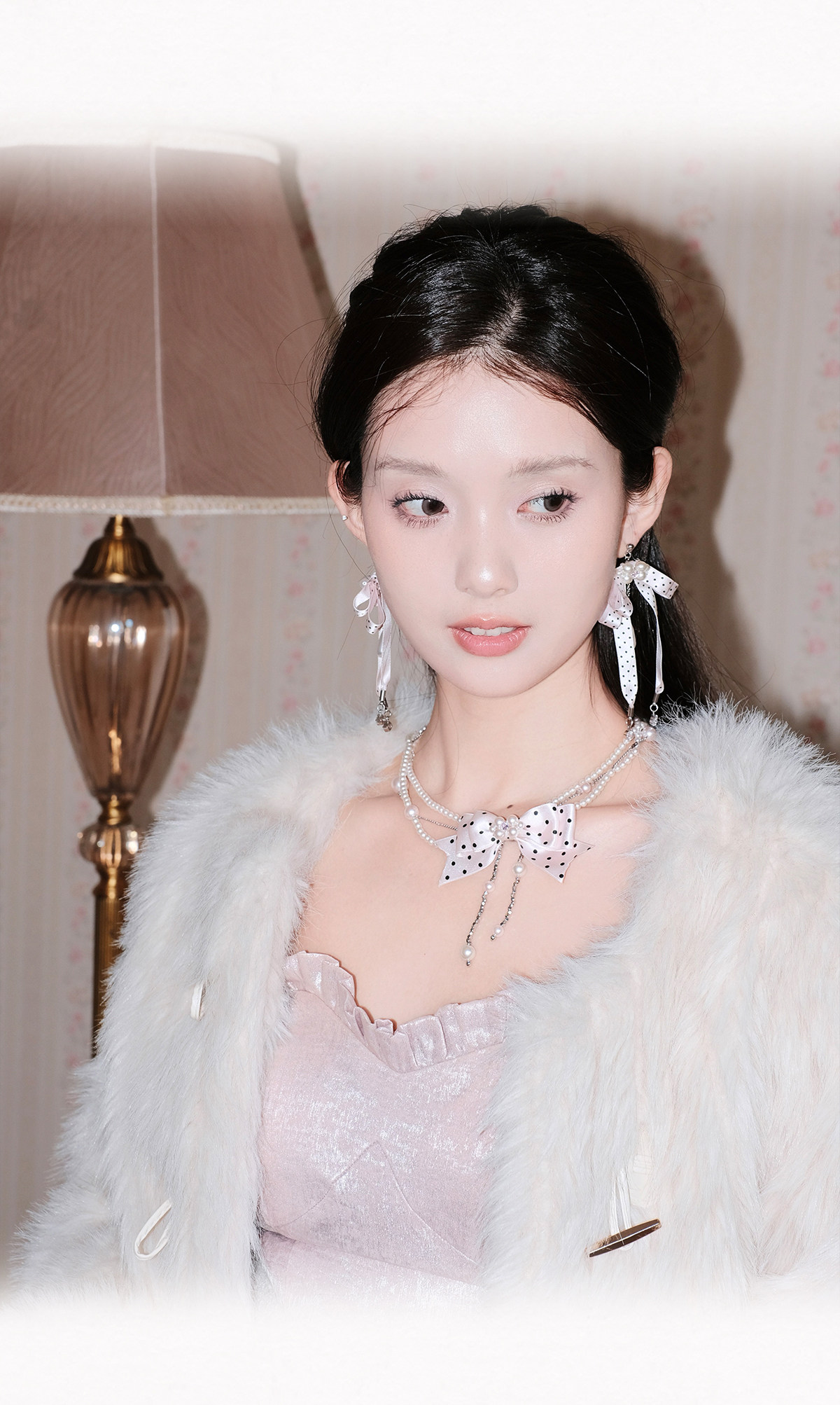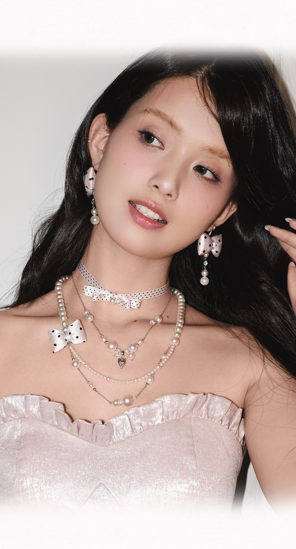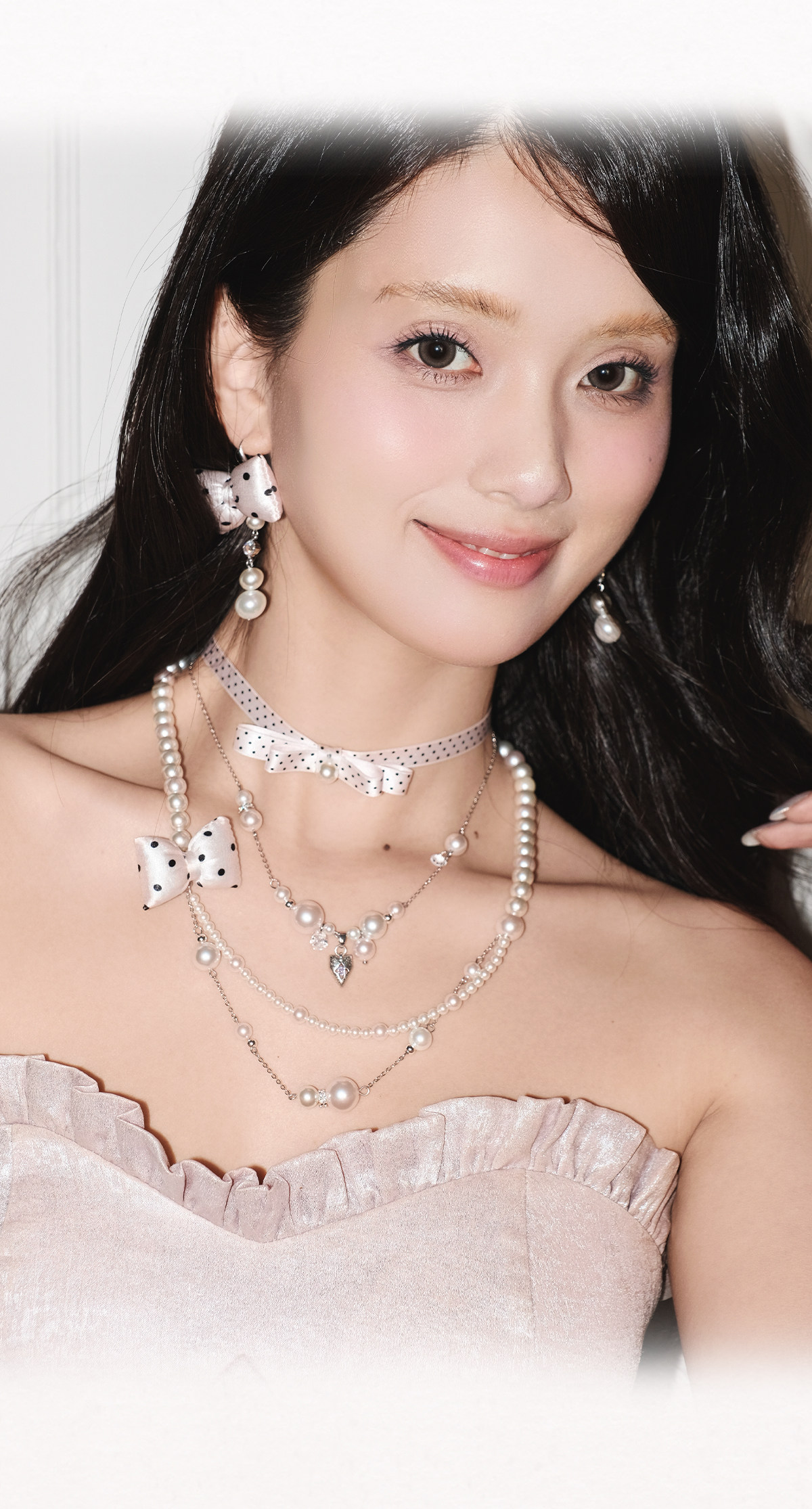波点控miu系!原创小众绸缎蝴蝶结少女珍珠项链双层长款毛衣链 [Original Page Link]