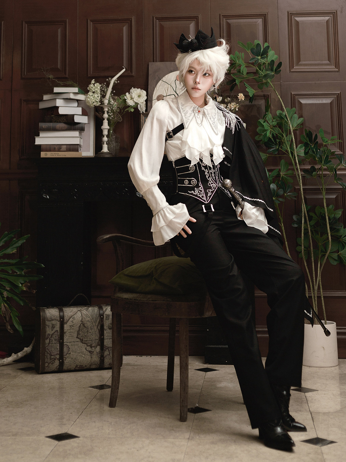 原创正版王约olita洋装正太王子装少年感暗黑披肩上衣腰封裤套装 [Original Page Link]