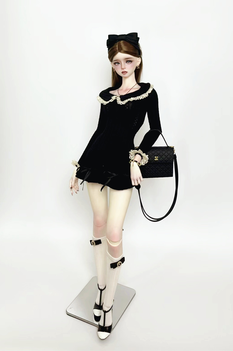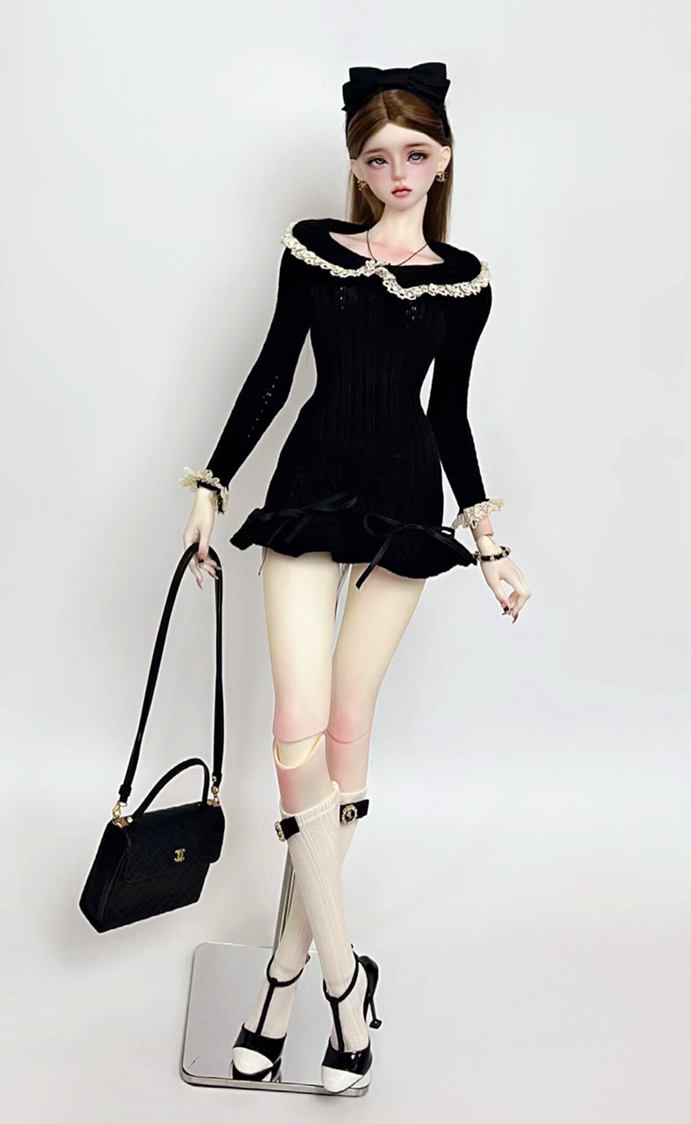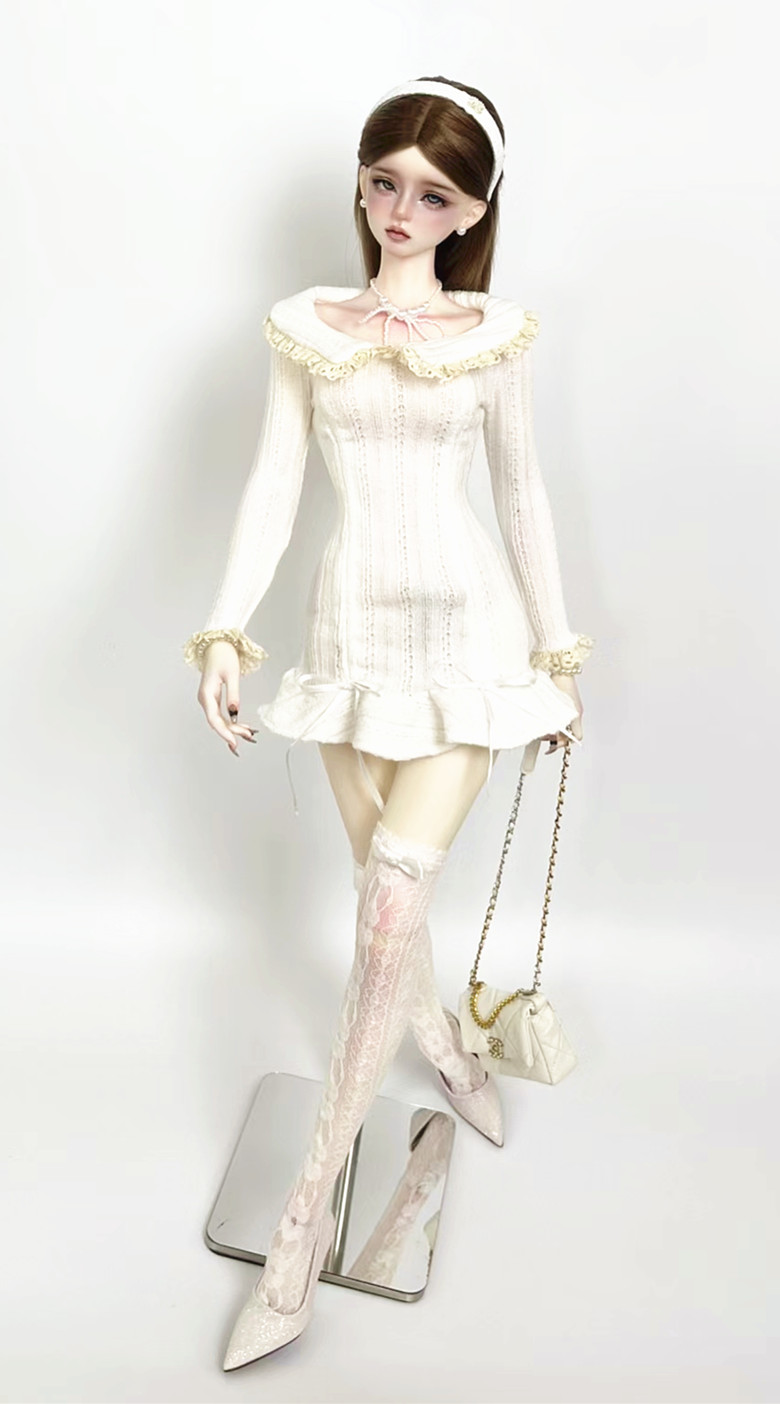 Bjd 3-point doll dress with hollowed-out knit drawstring