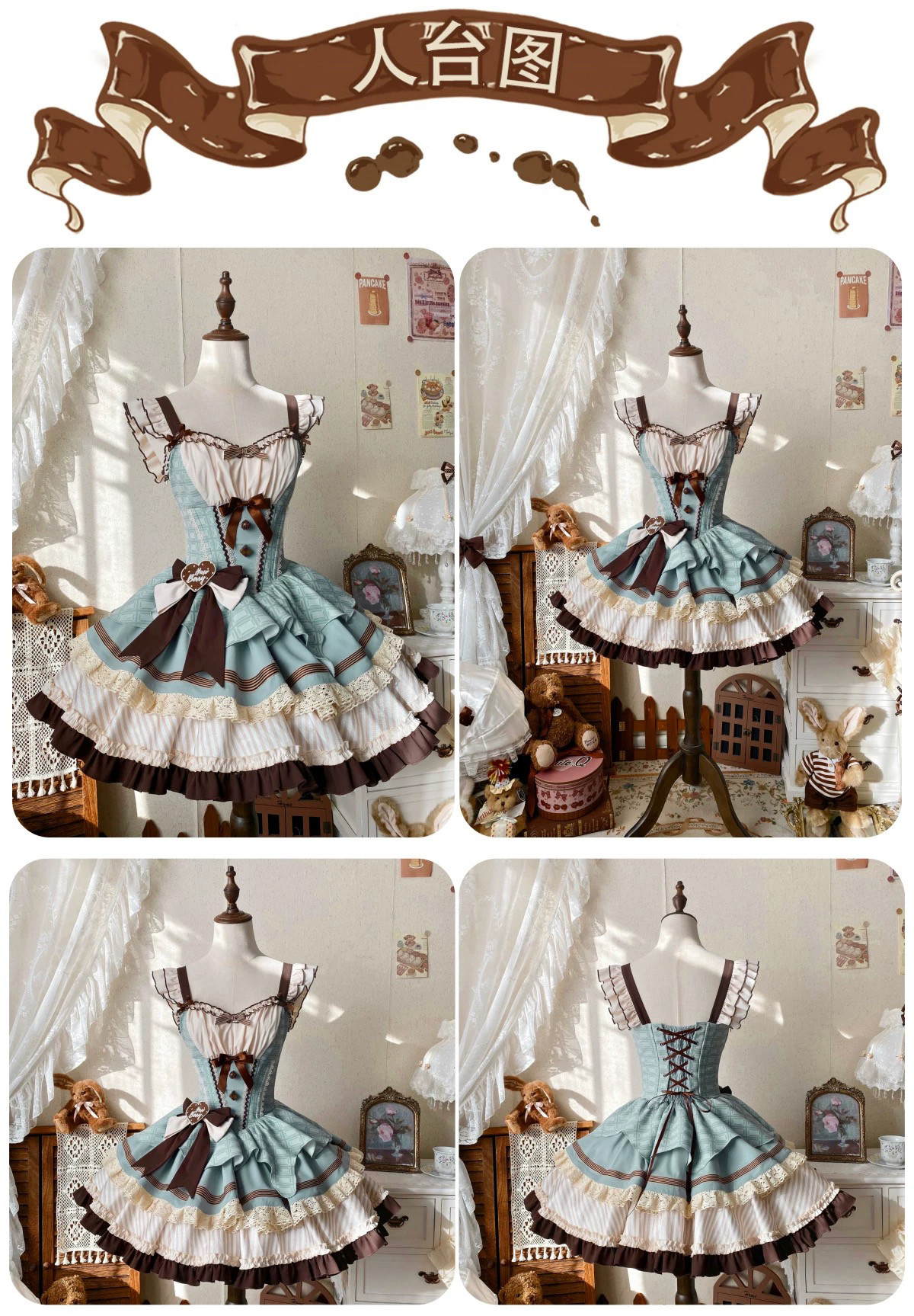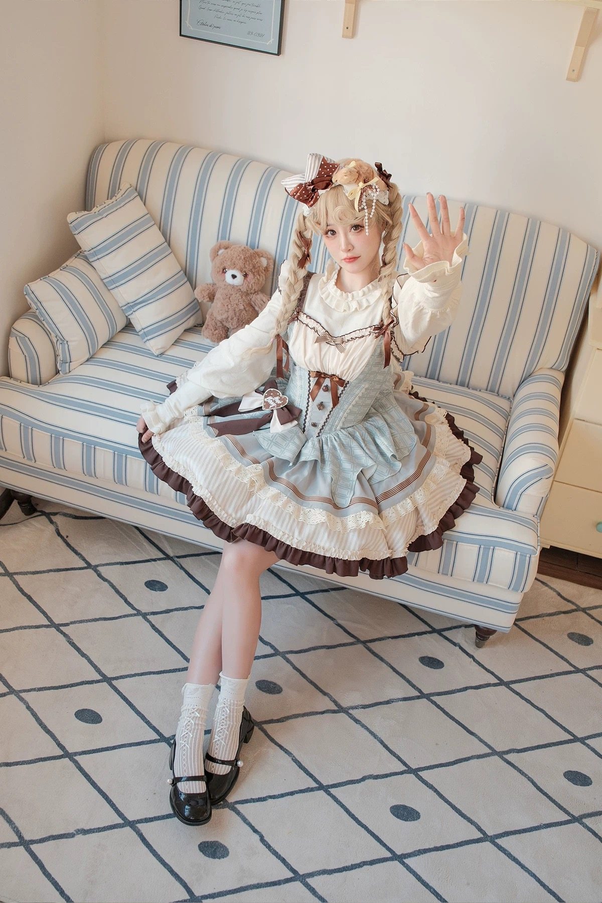 Thin and delicate Lolita dress, sweet and cute mint chocolate ballet style Lolita dress, everyday Lolita style.