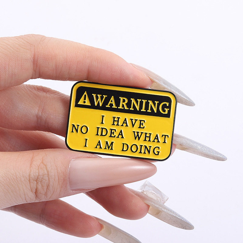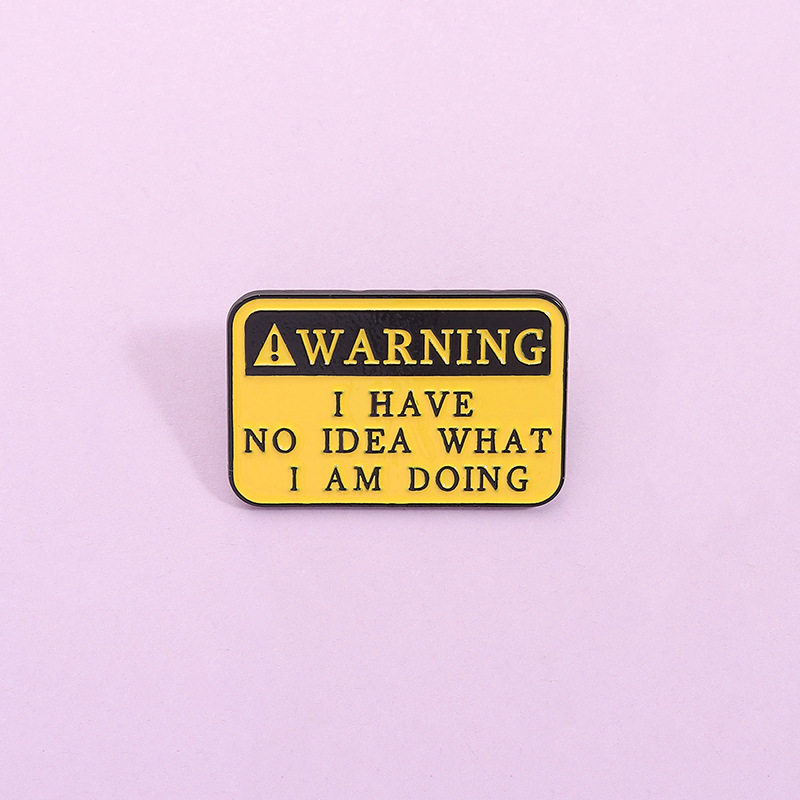 创意黄色警示牌合金胸针我不知道自己在做什么英文短句徽章配饰 [Original Page Link]