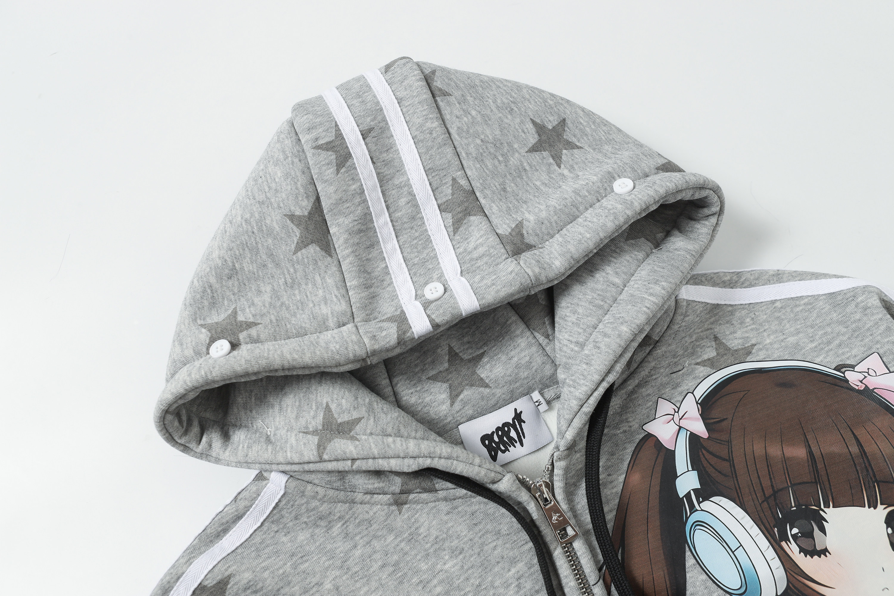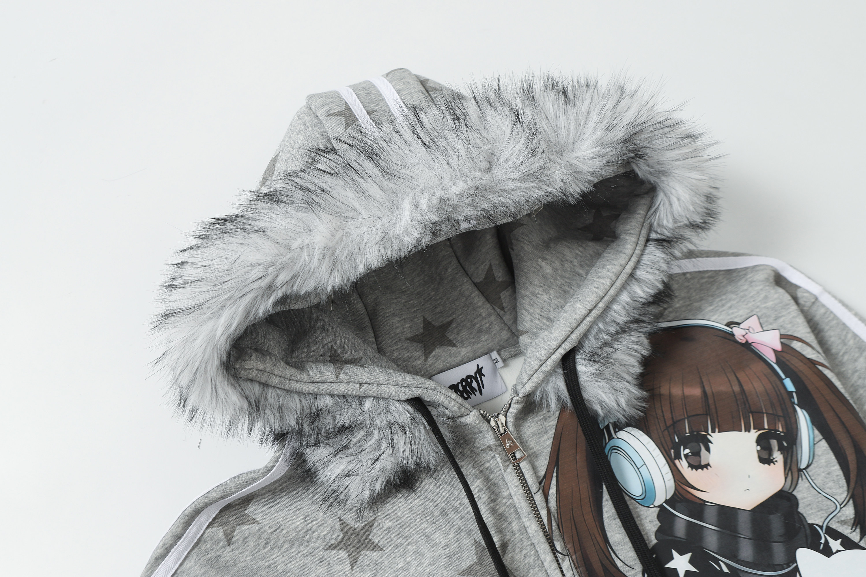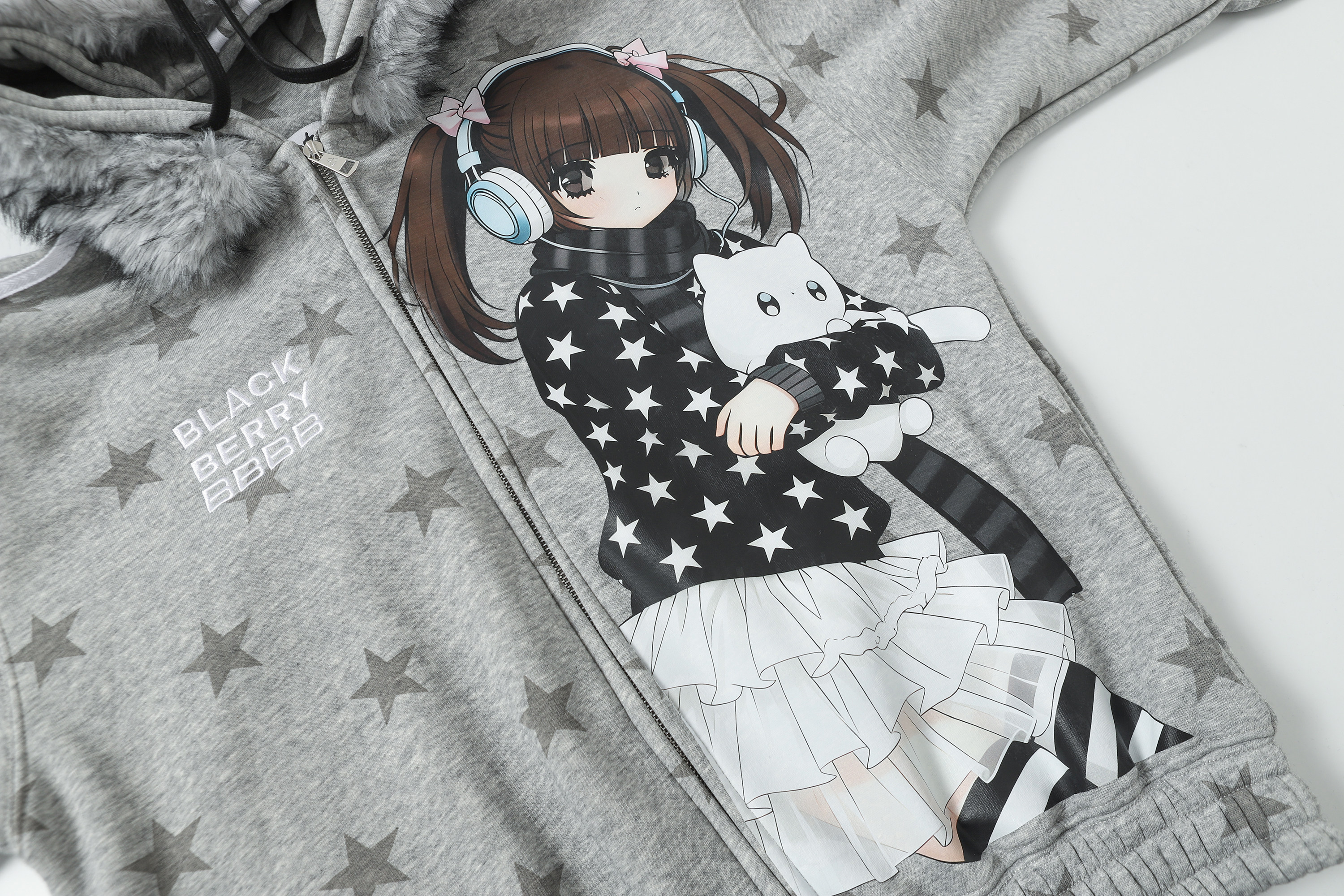 BlackBerry2025AW星星女孩猫咪灰色加绒毛领可拆外套 [Original Page Link]