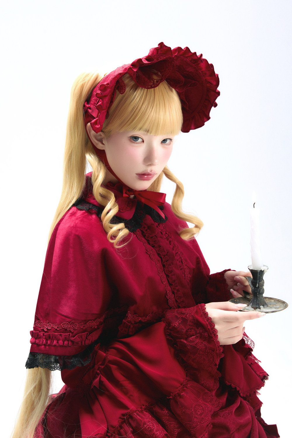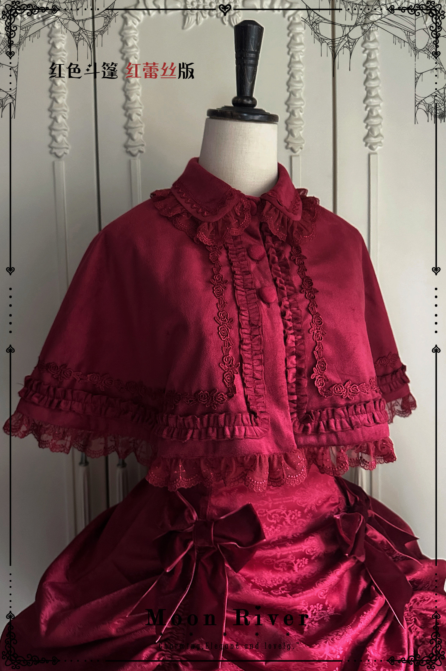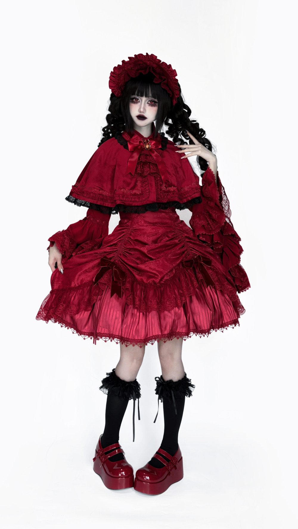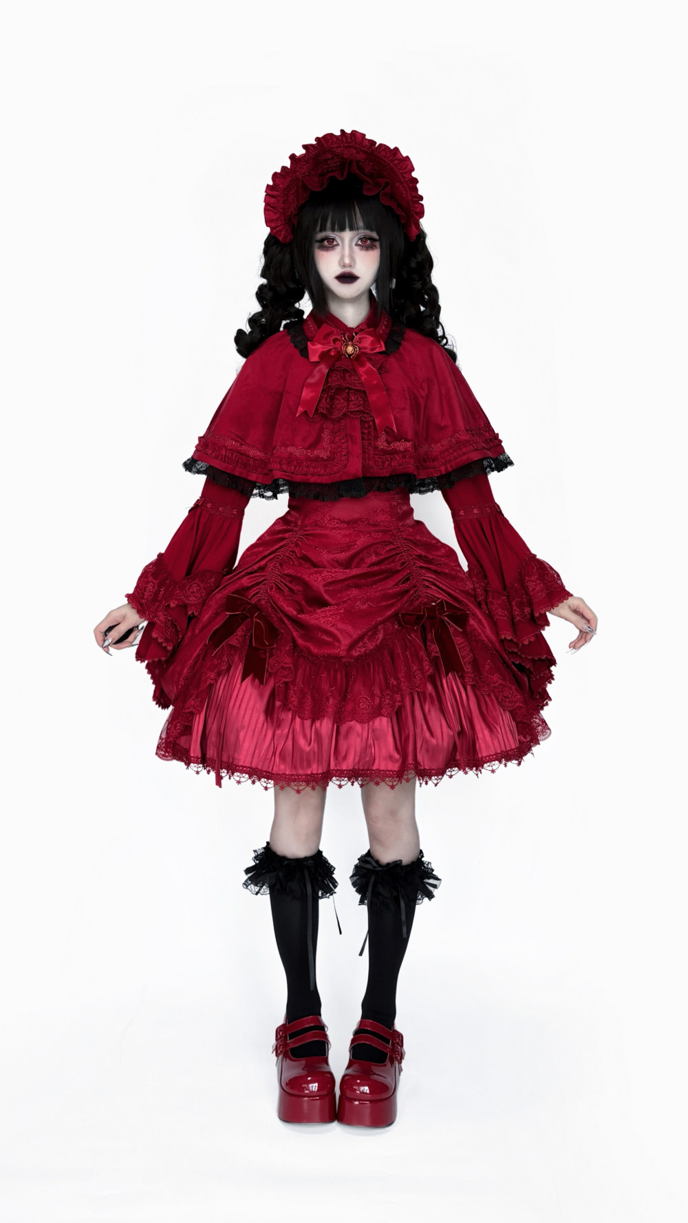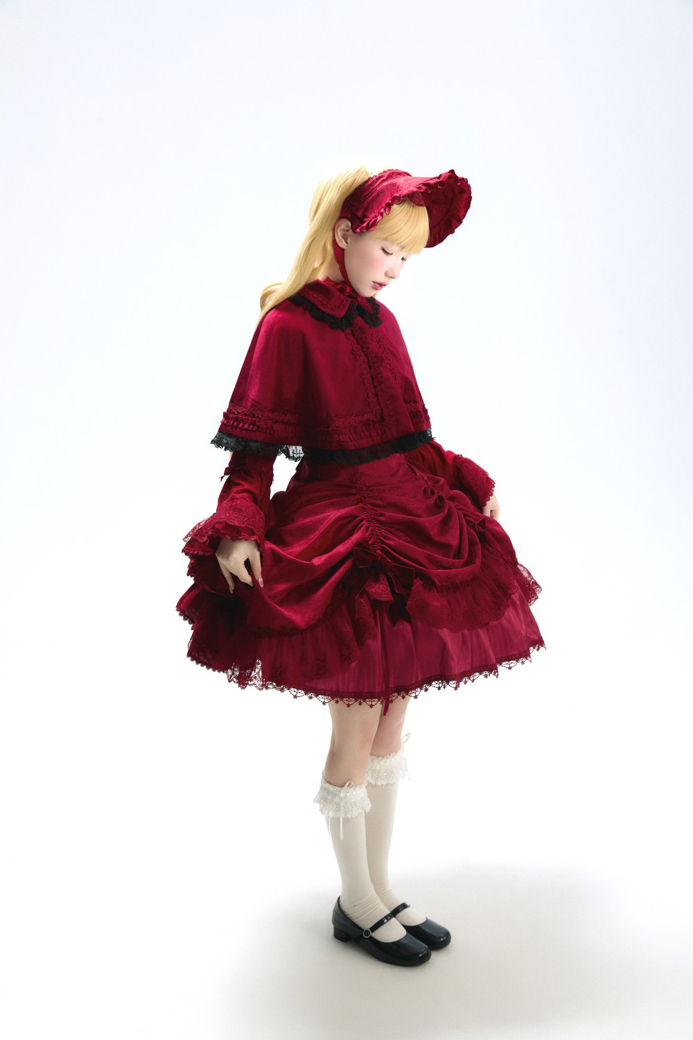 红色JSK4型 搭配红蕾丝红丝绒斗篷 黑蕾丝红丝绒斗篷 姬袖衬衫 蕾丝领结