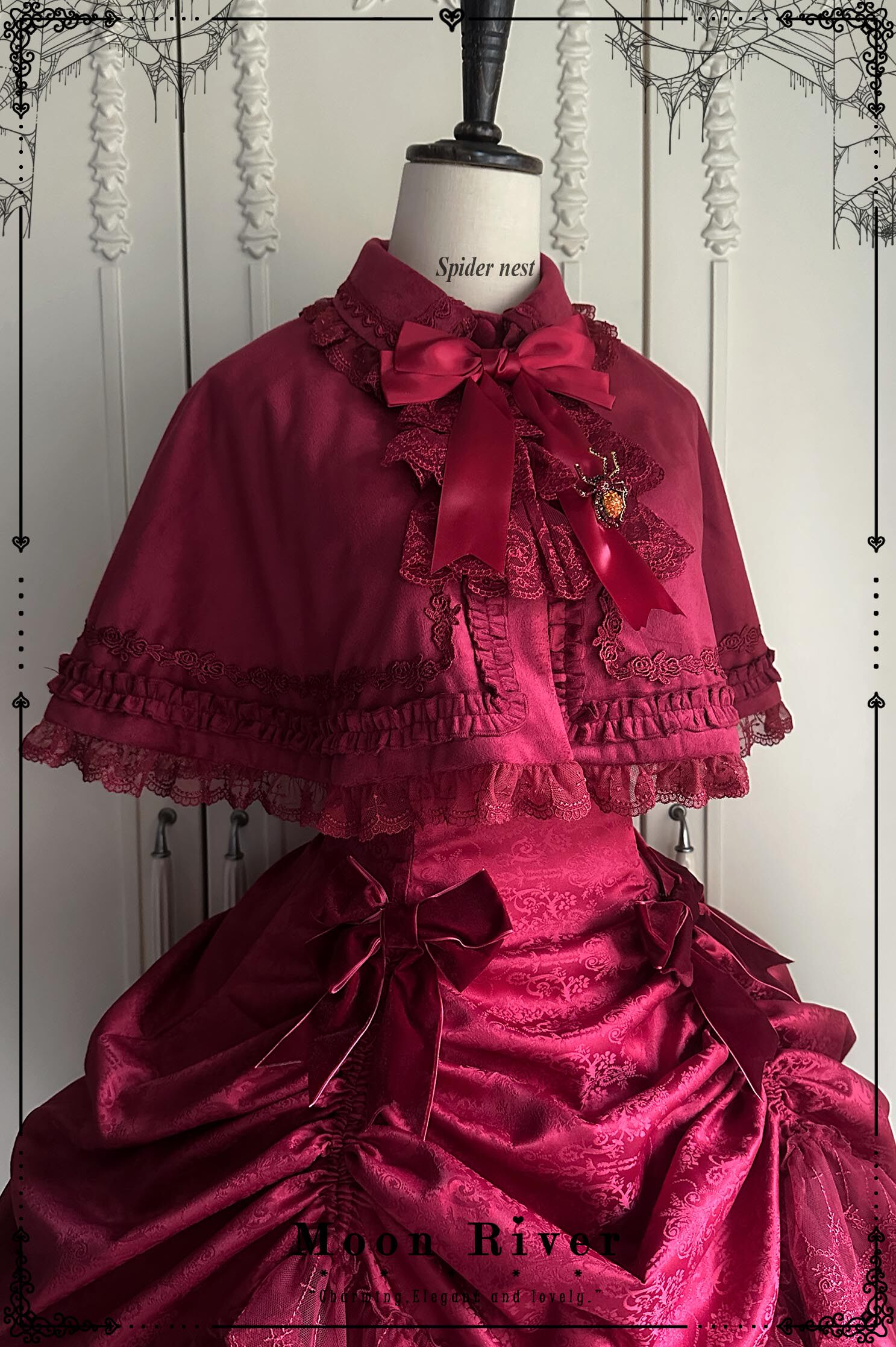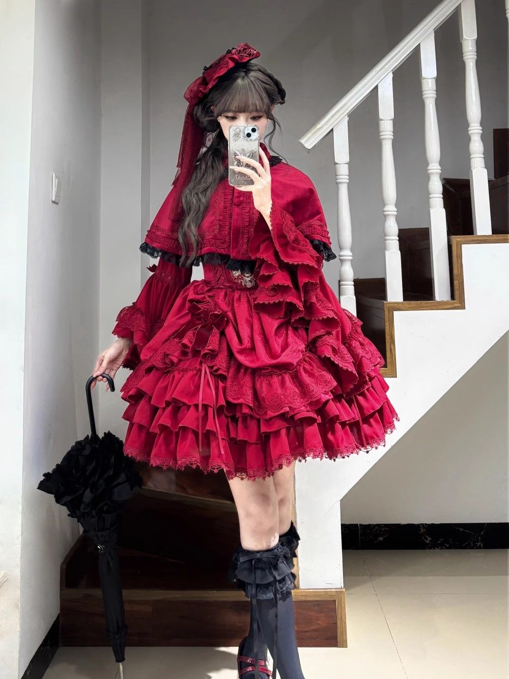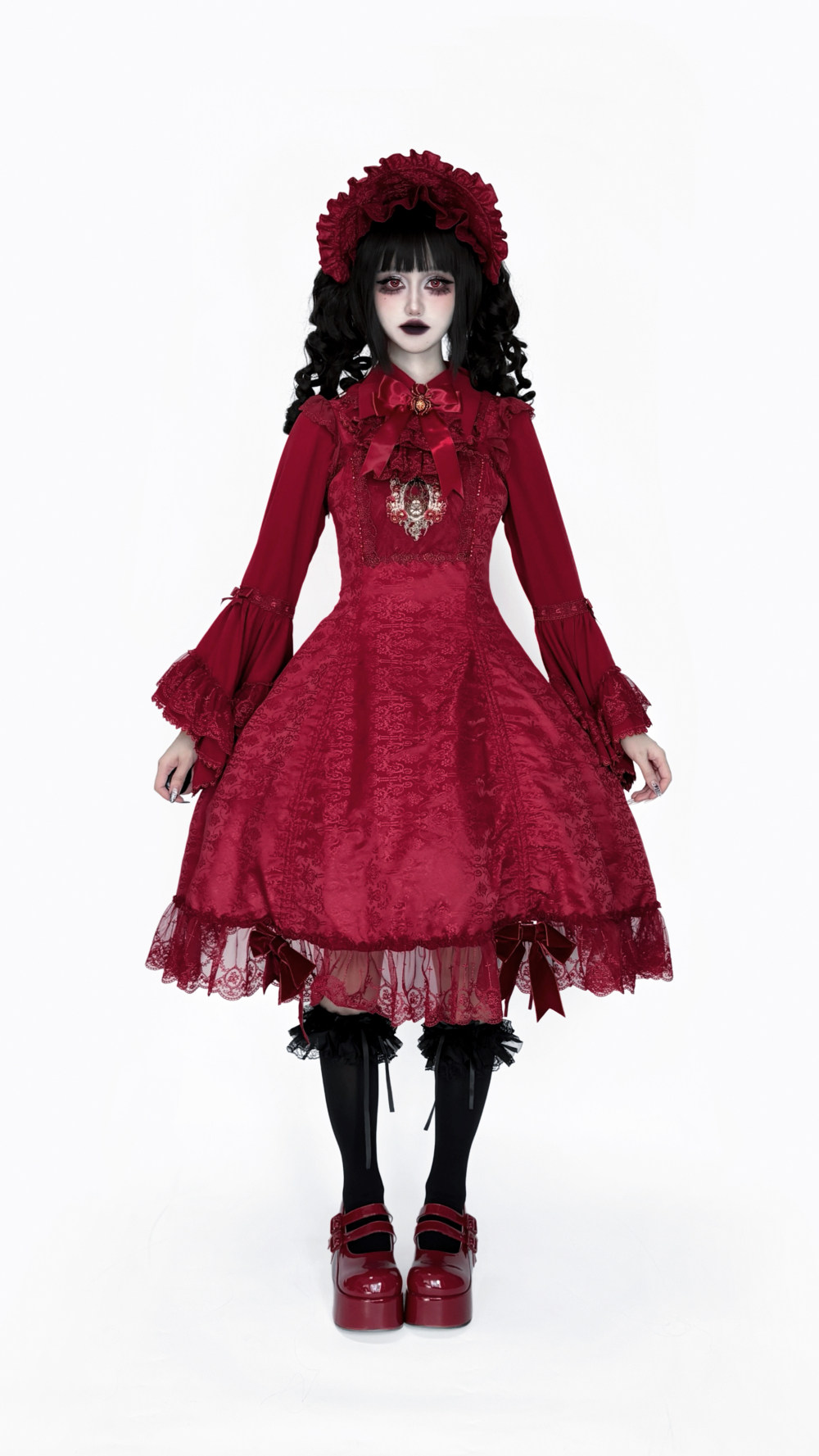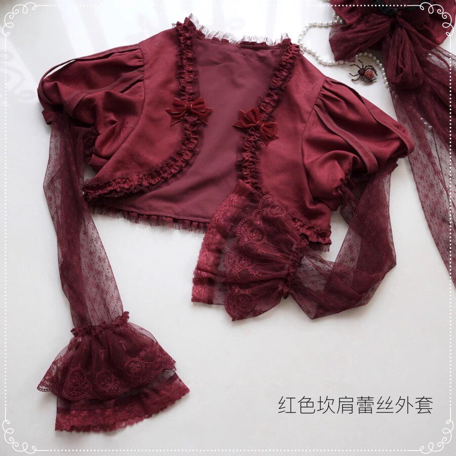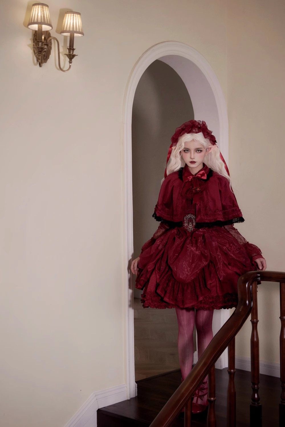 红色JSK4型 搭配红蕾丝红丝绒斗篷 黑蕾丝红丝绒斗篷 姬袖衬衫 蕾丝领结