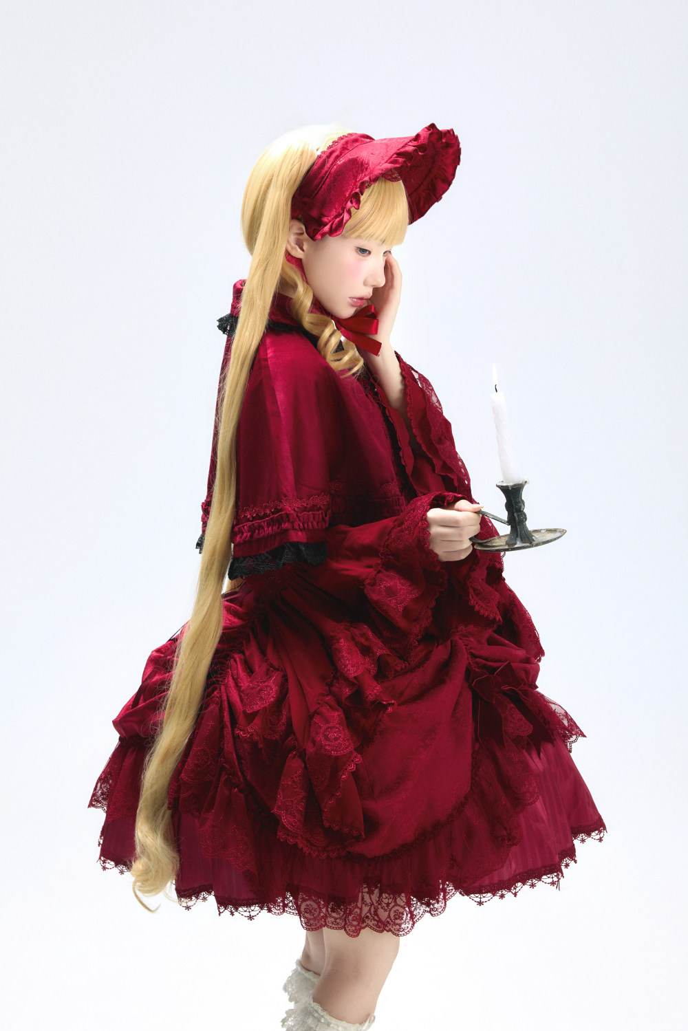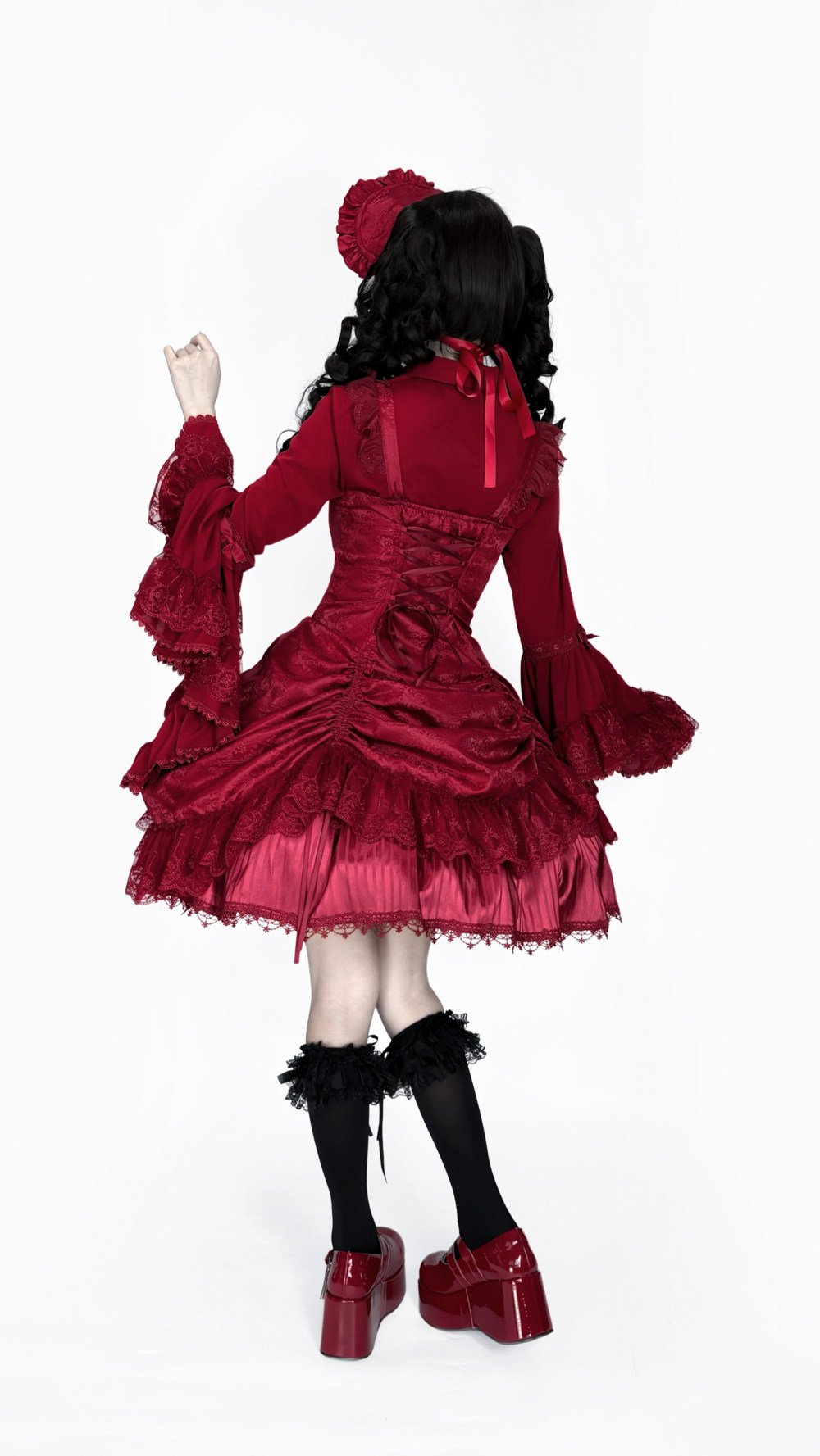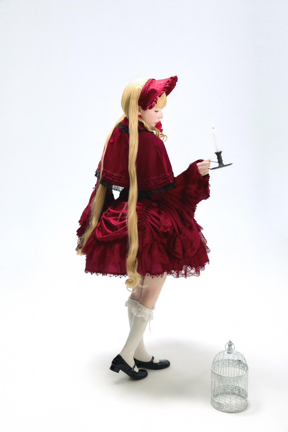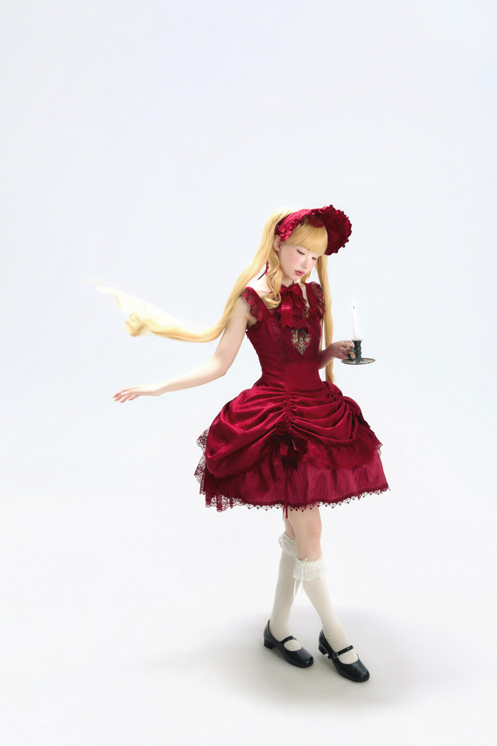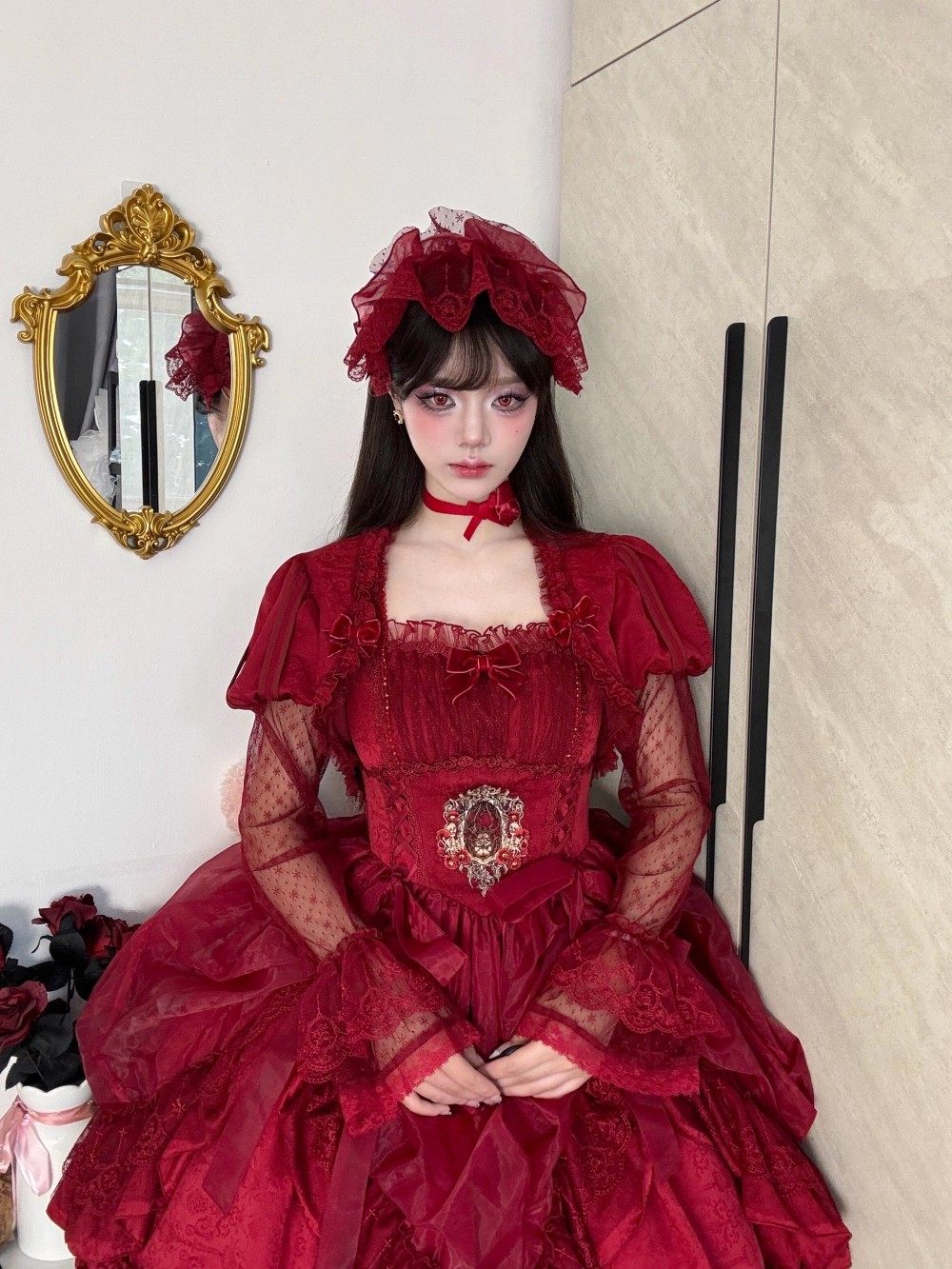 红色JSK4型 搭配红蕾丝红丝绒斗篷 黑蕾丝红丝绒斗篷 姬袖衬衫 蕾丝领结