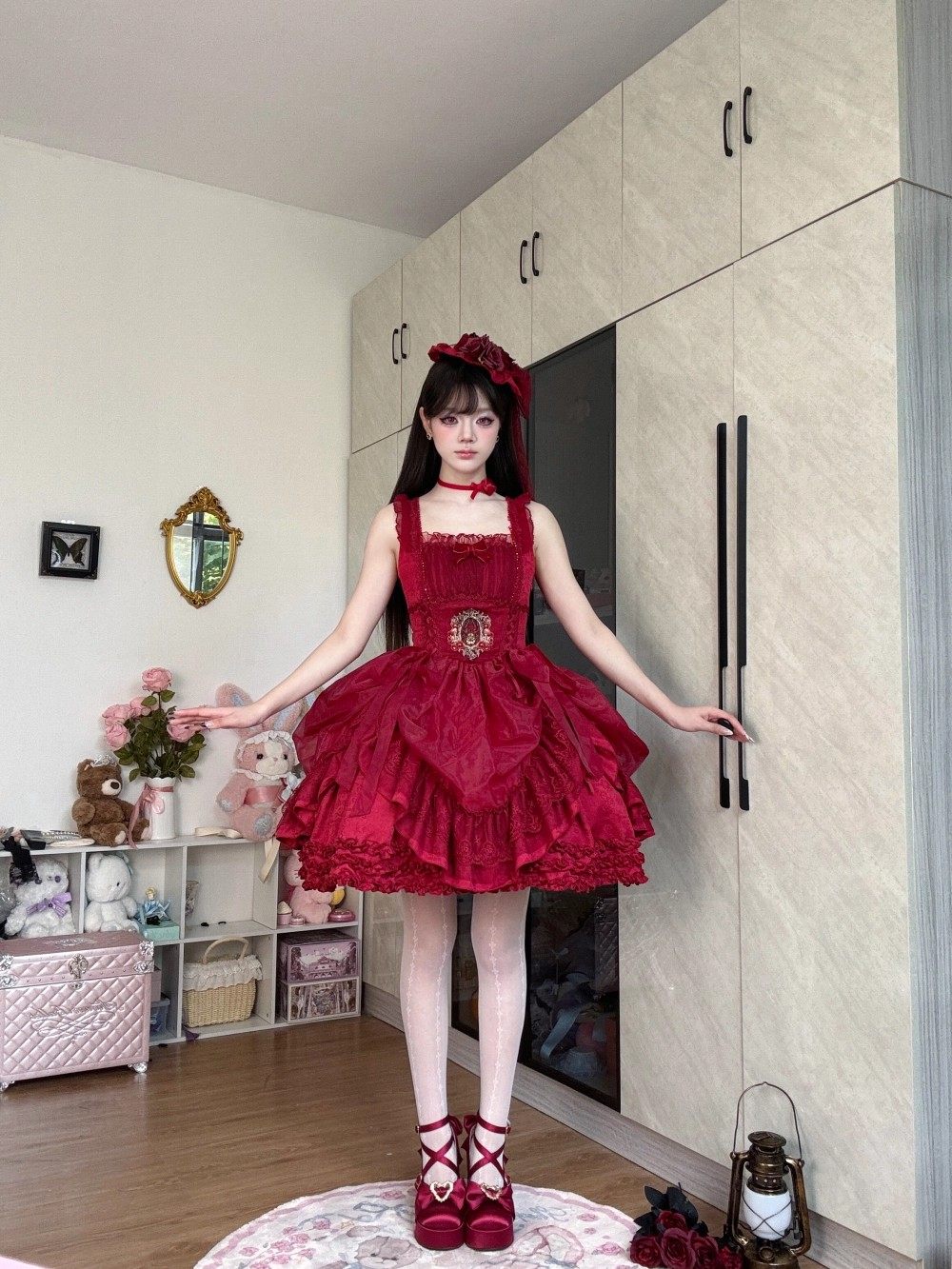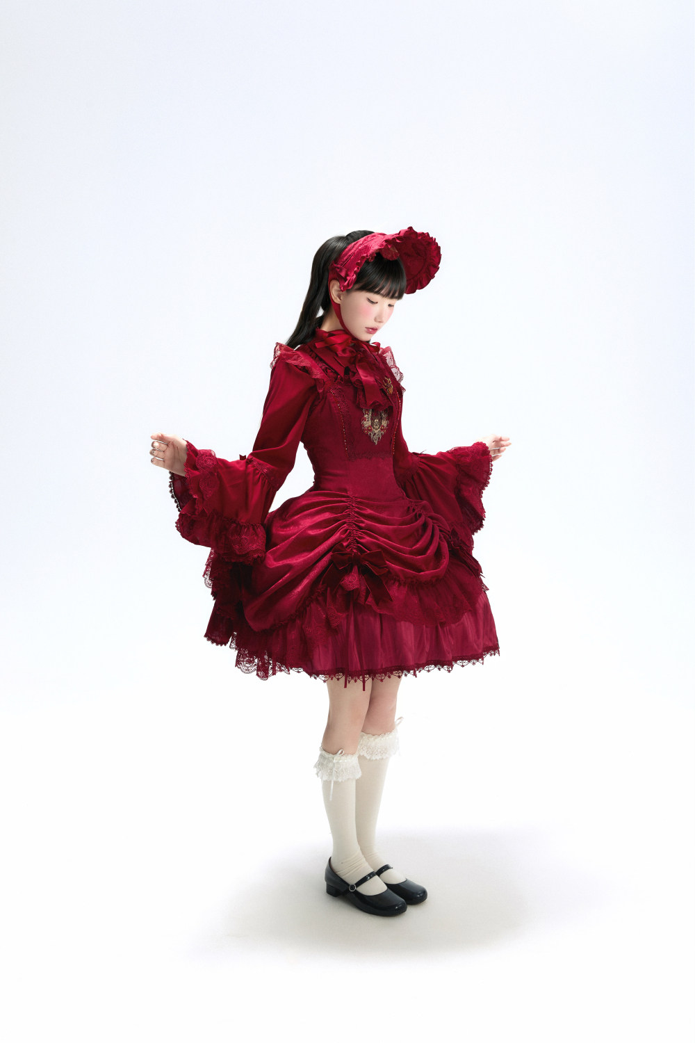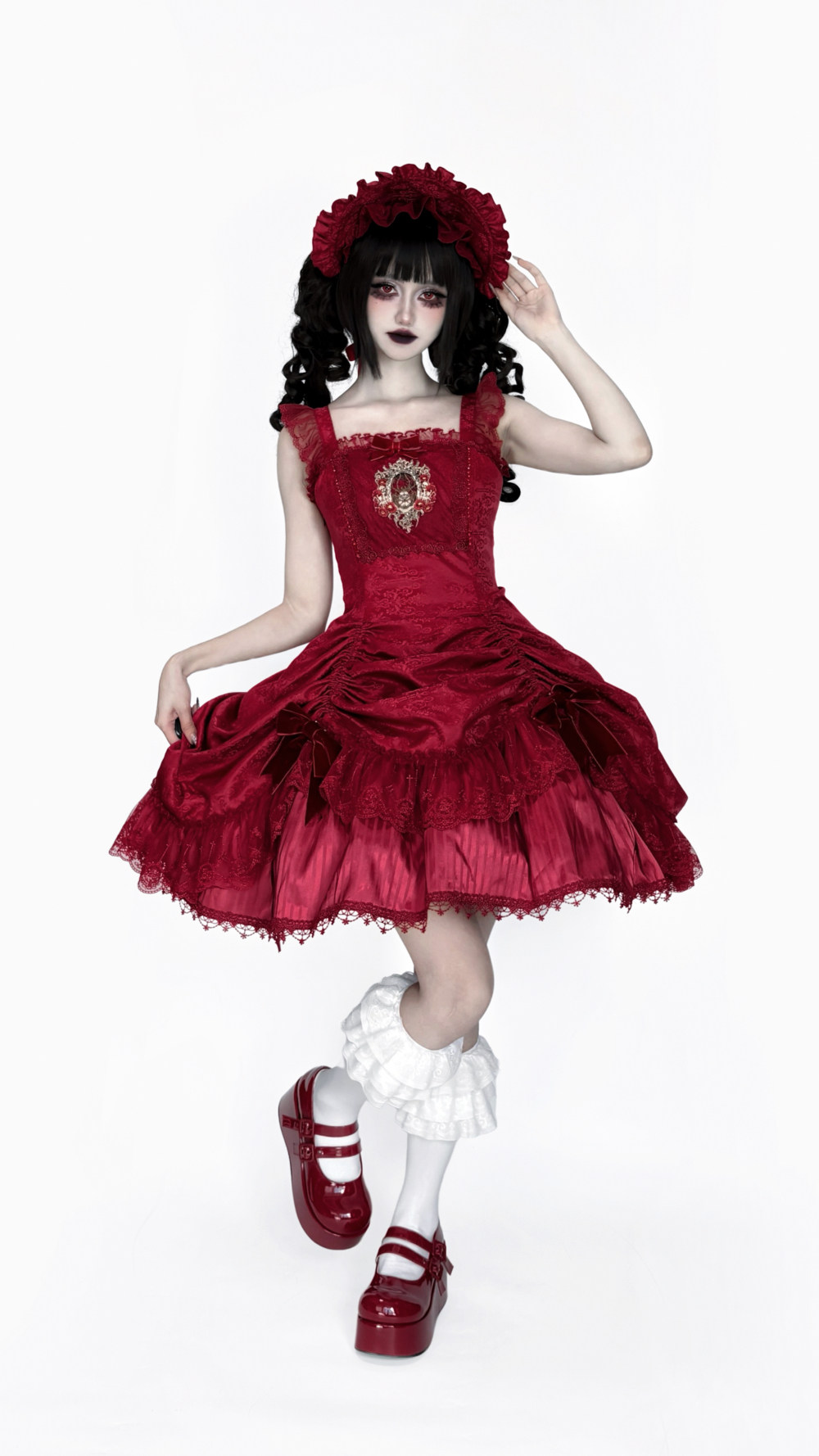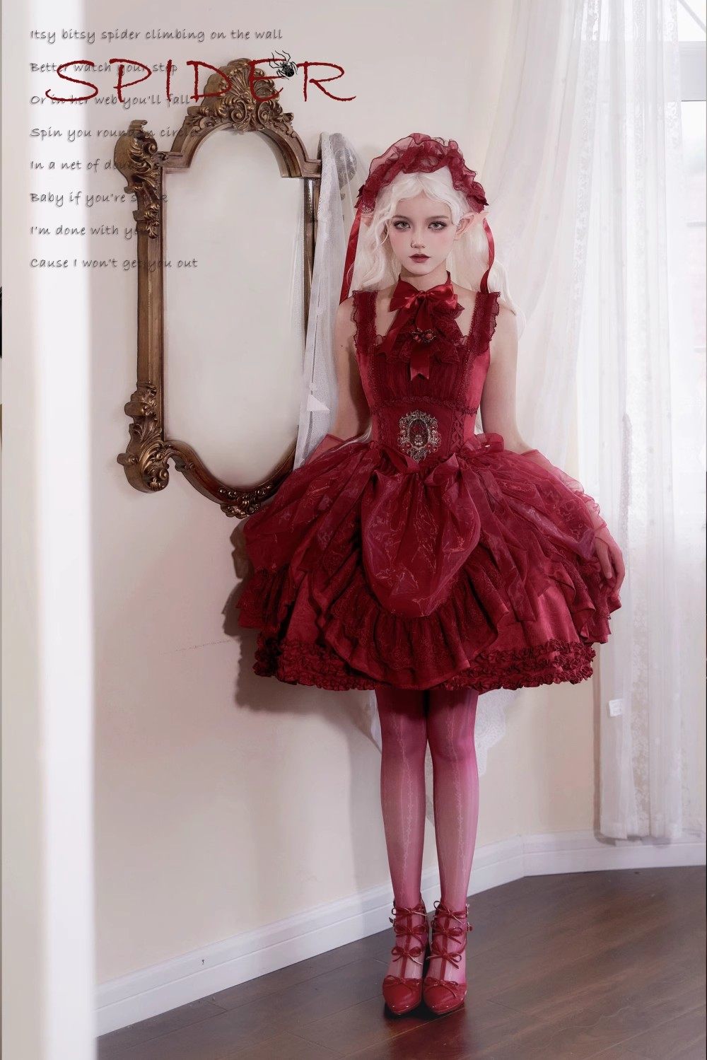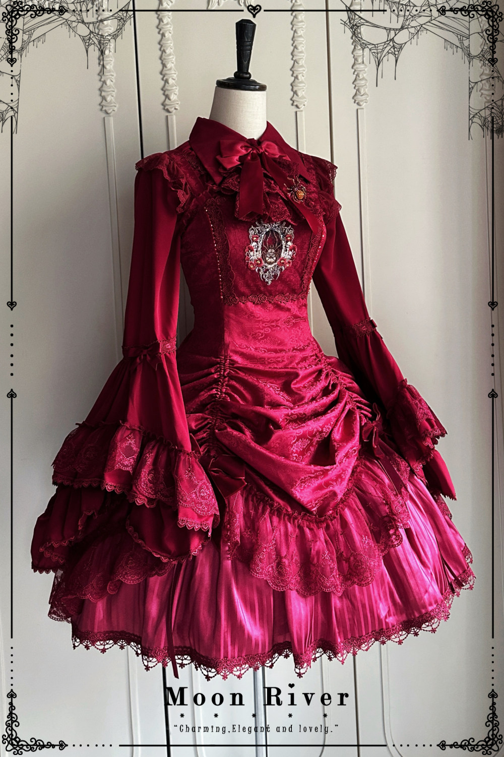 红色JSK4型 搭配红蕾丝红丝绒斗篷 黑蕾丝红丝绒斗篷 姬袖衬衫 蕾丝领结