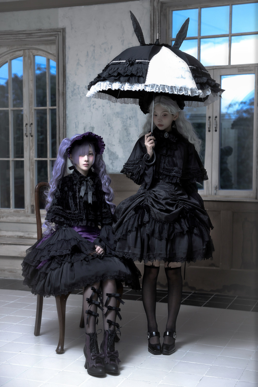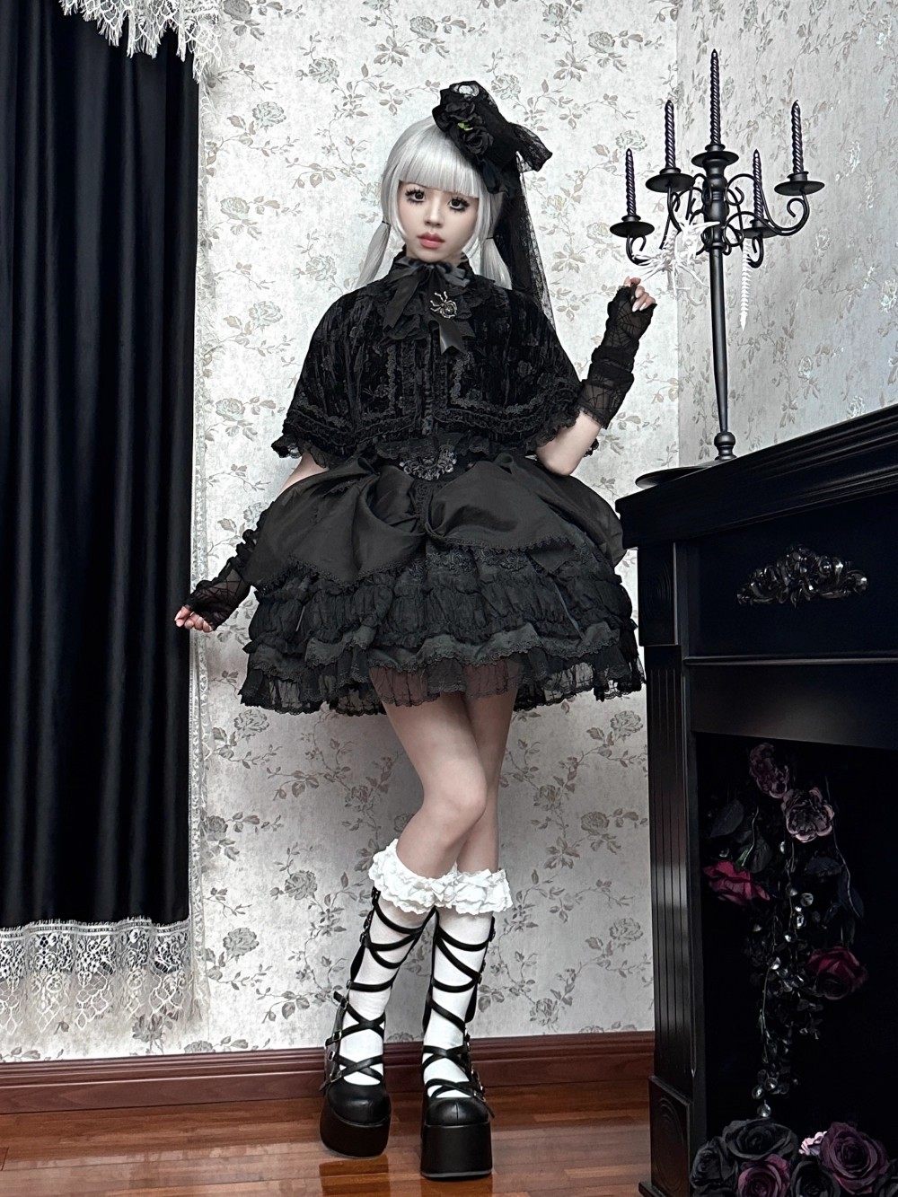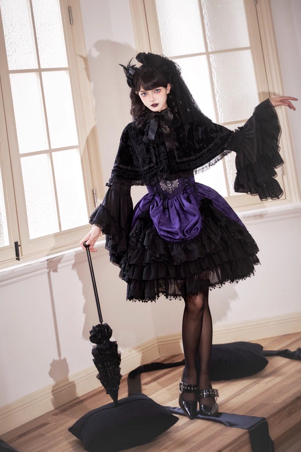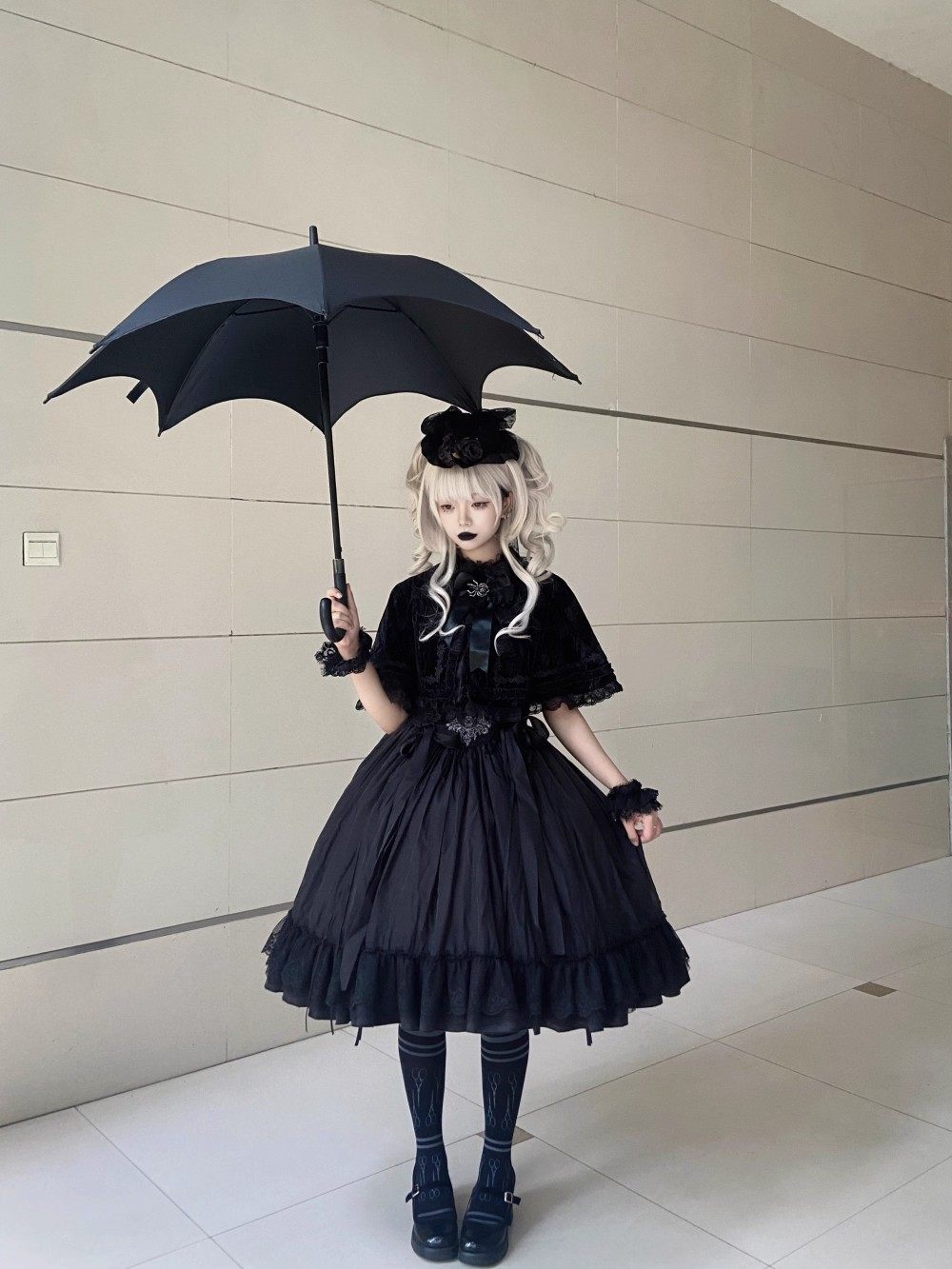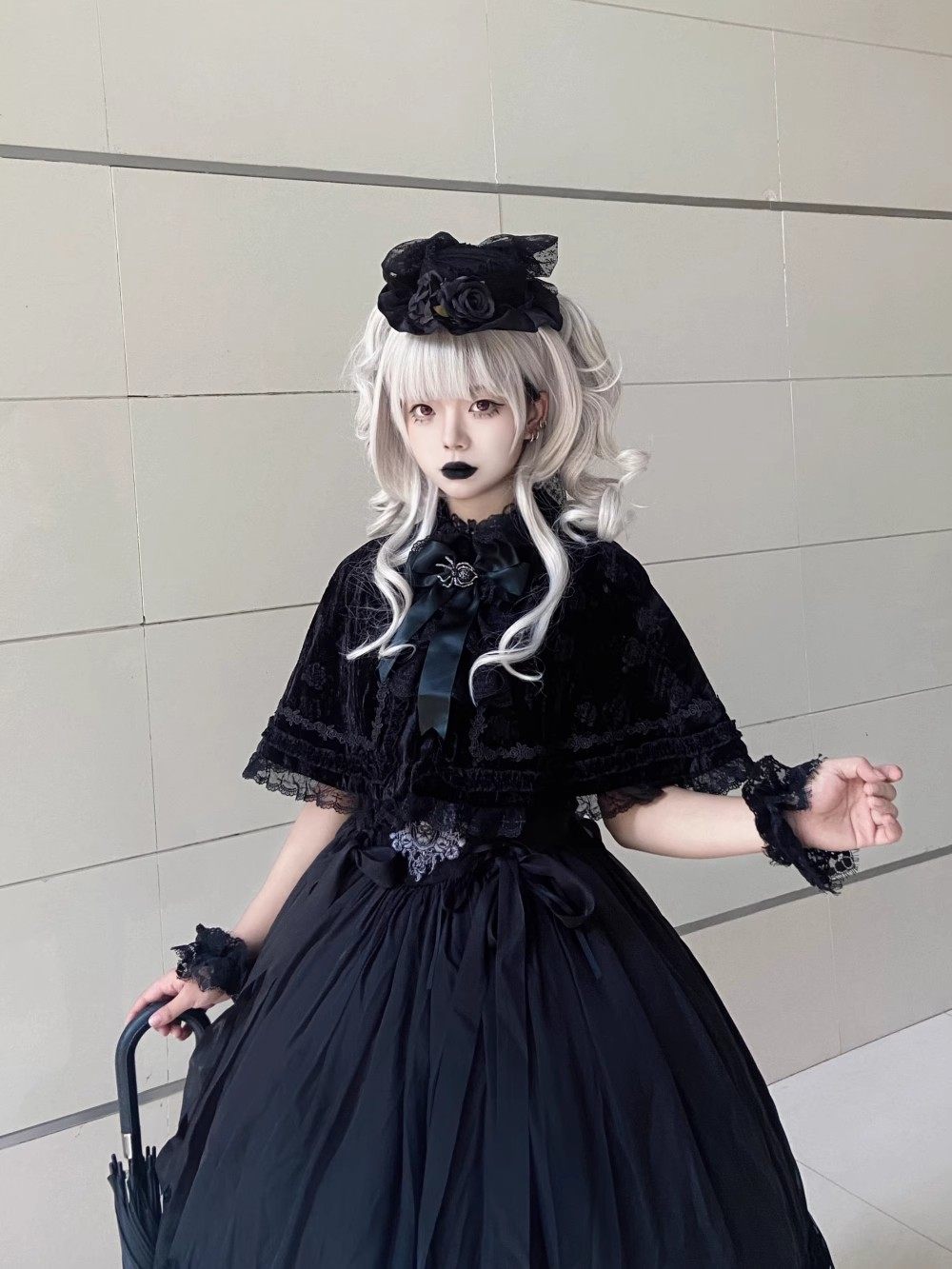 可搭配品:暗纹/纯色丝绒斗篷 蕾丝领结 不规则姬袖衬衫等