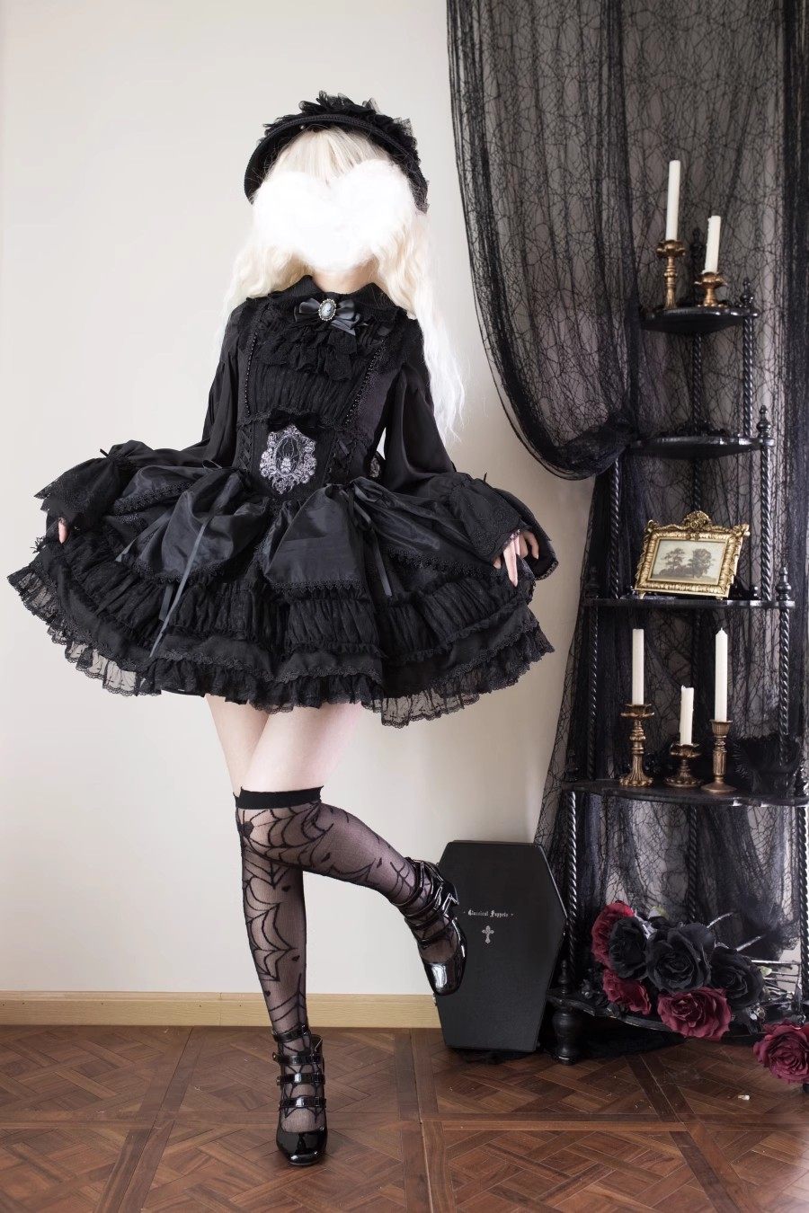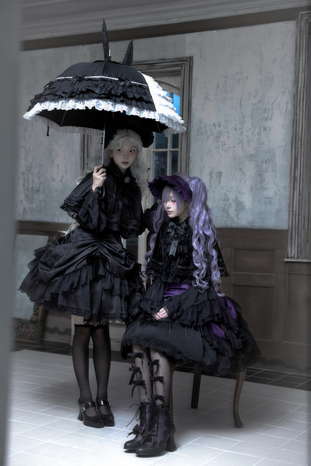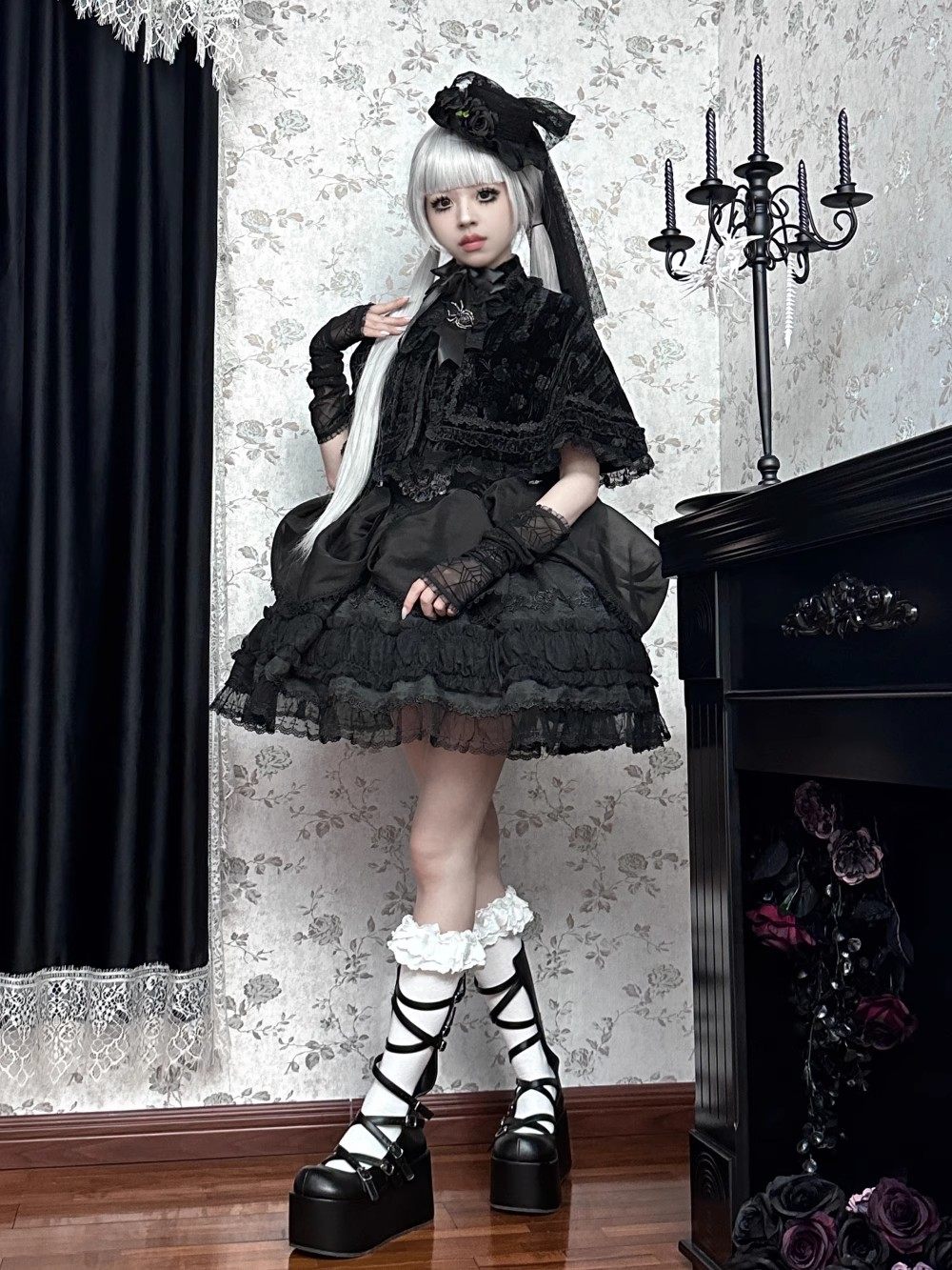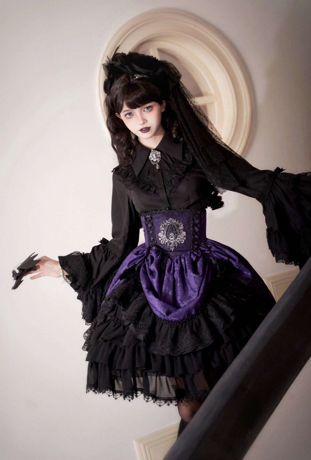 可搭配品:暗纹/纯色丝绒斗篷 蕾丝领结 不规则姬袖衬衫等