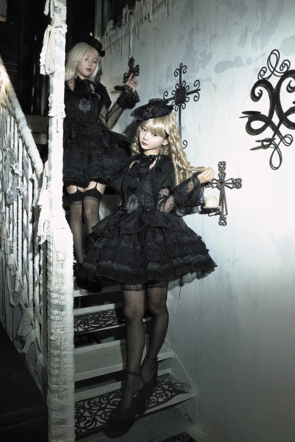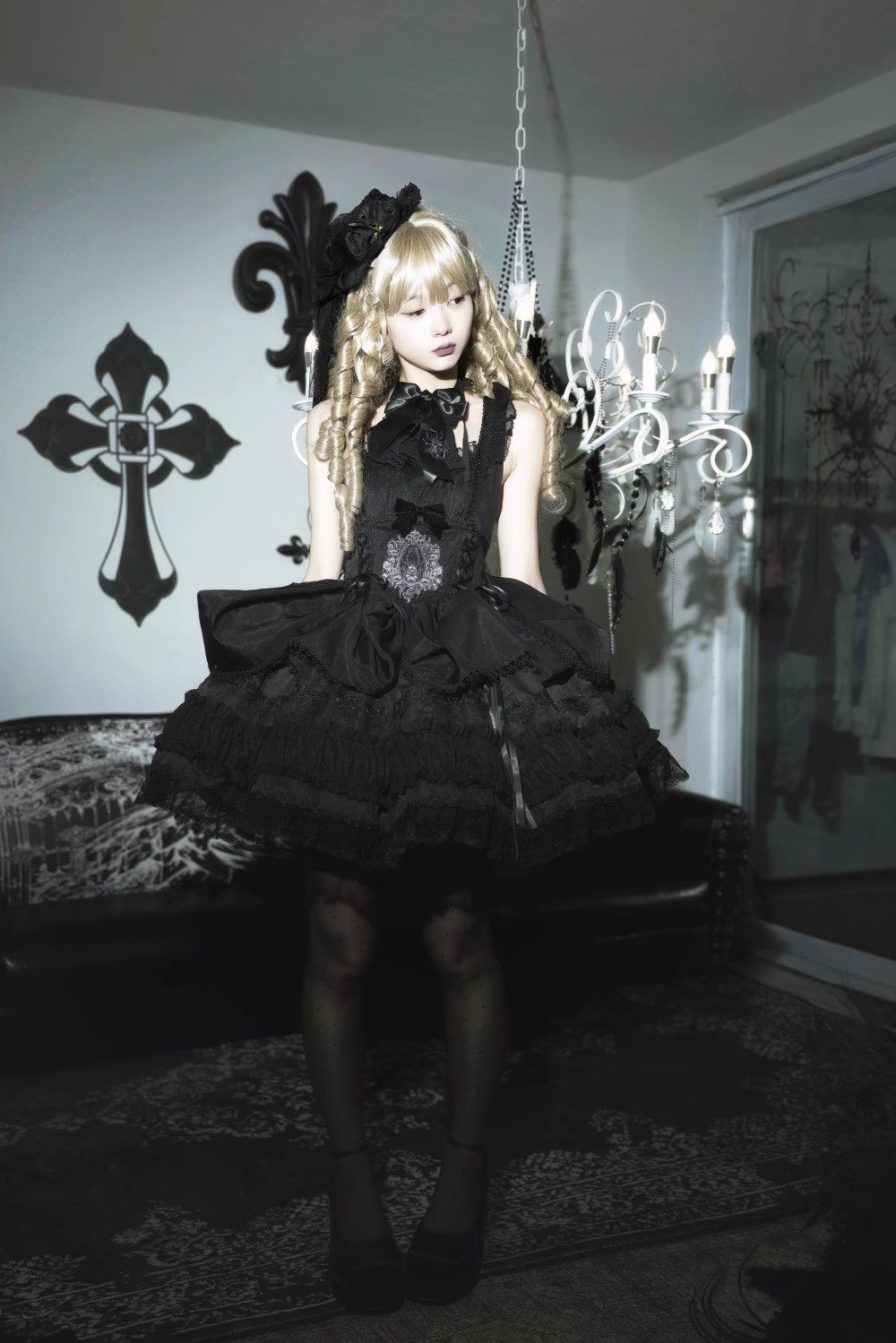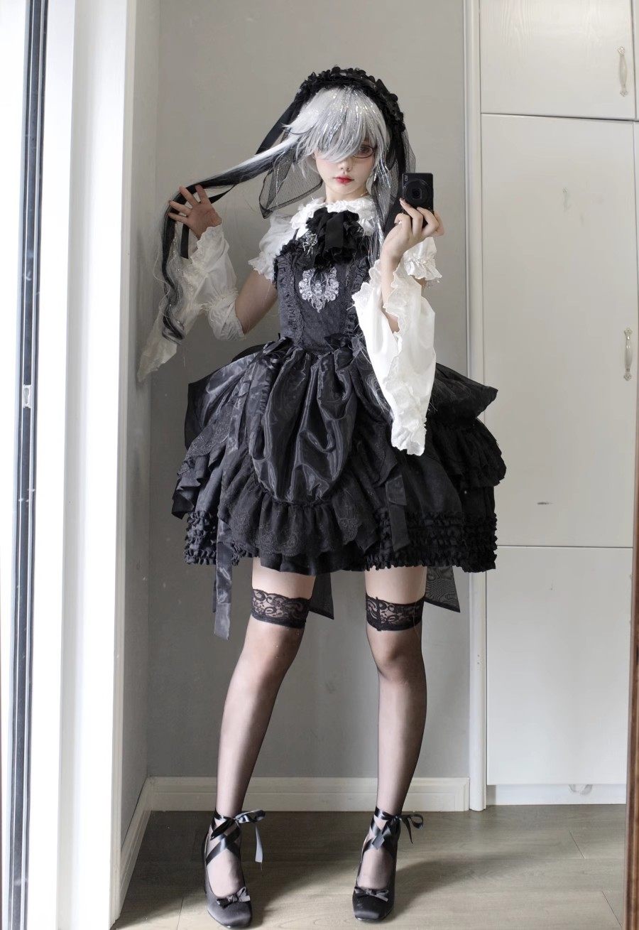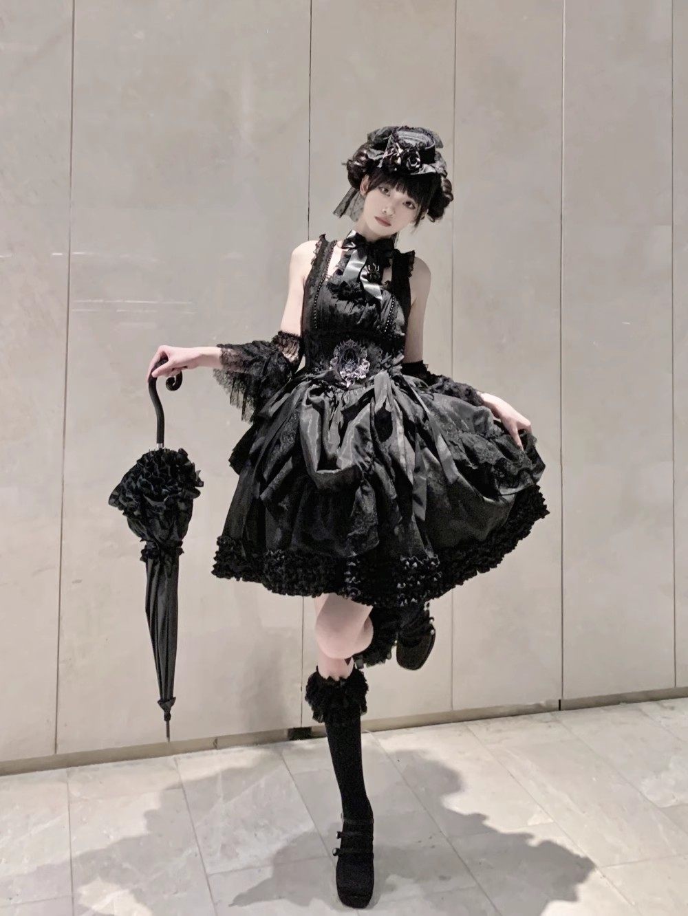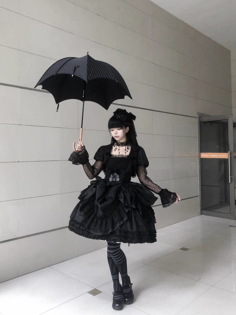 可搭配品:暗纹/纯色丝绒斗篷 蕾丝领结 不规则姬袖衬衫等