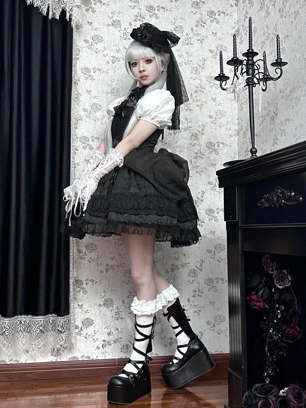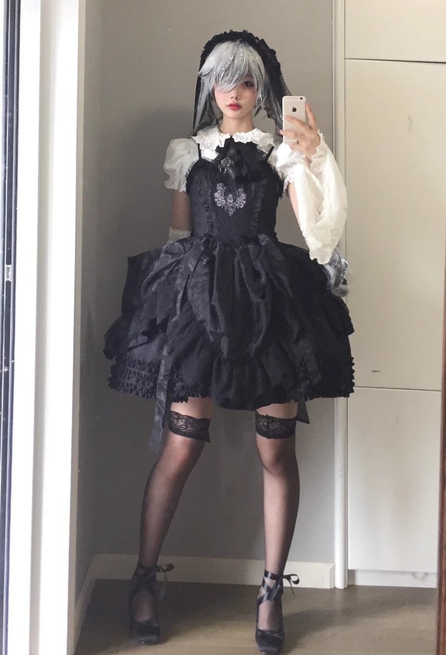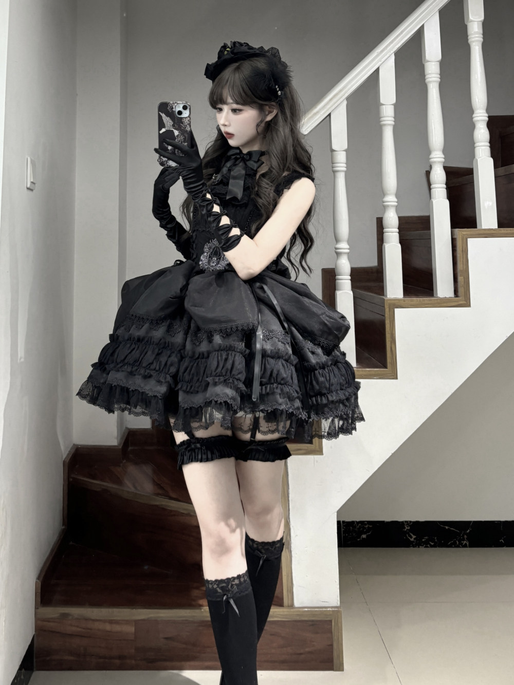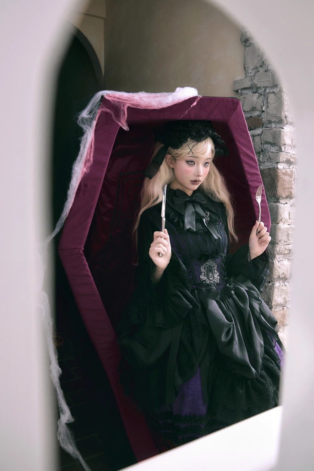 可搭配品:暗纹/纯色丝绒斗篷 蕾丝领结 不规则姬袖衬衫等