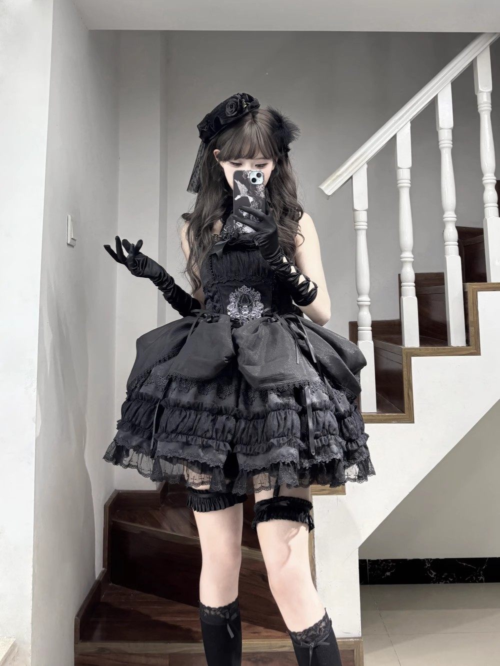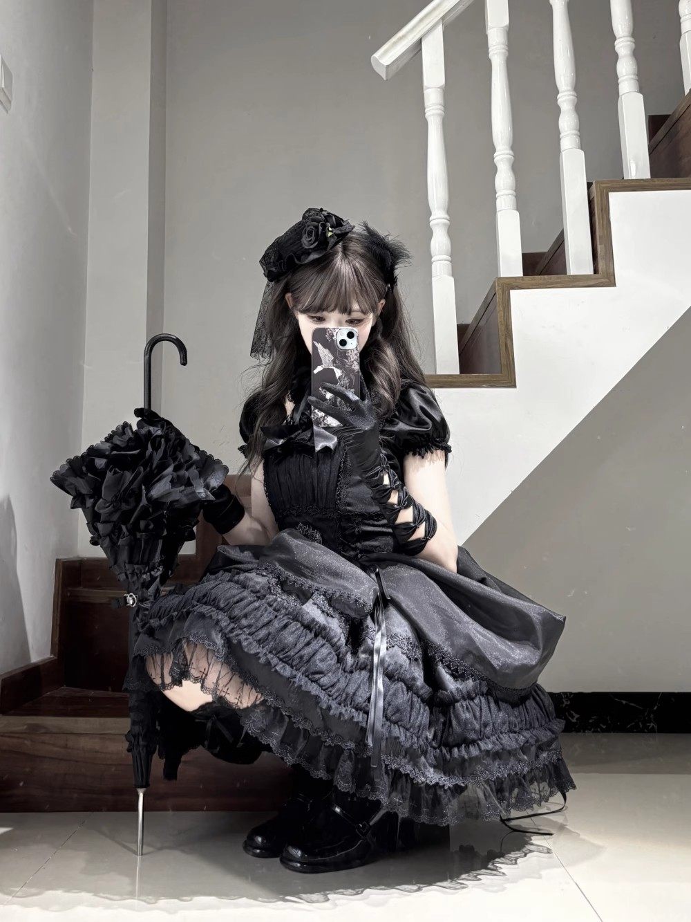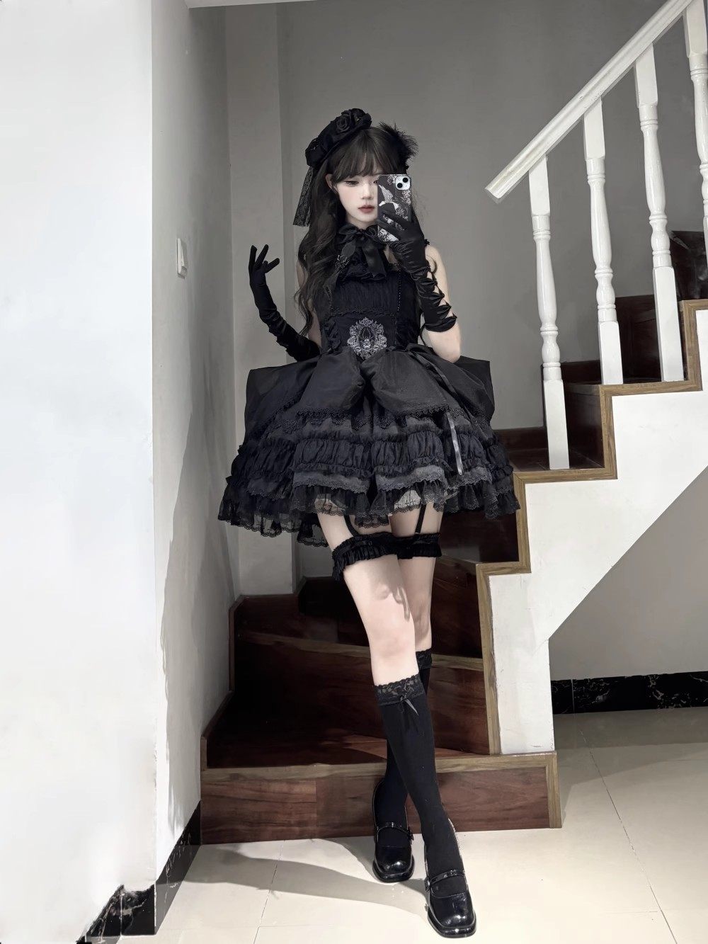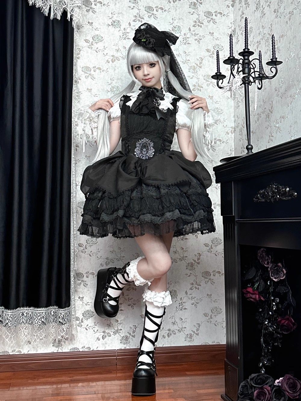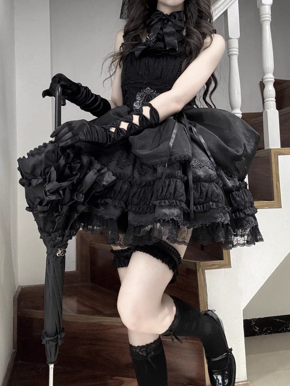 可搭配品:暗纹/纯色丝绒斗篷 蕾丝领结 不规则姬袖衬衫等