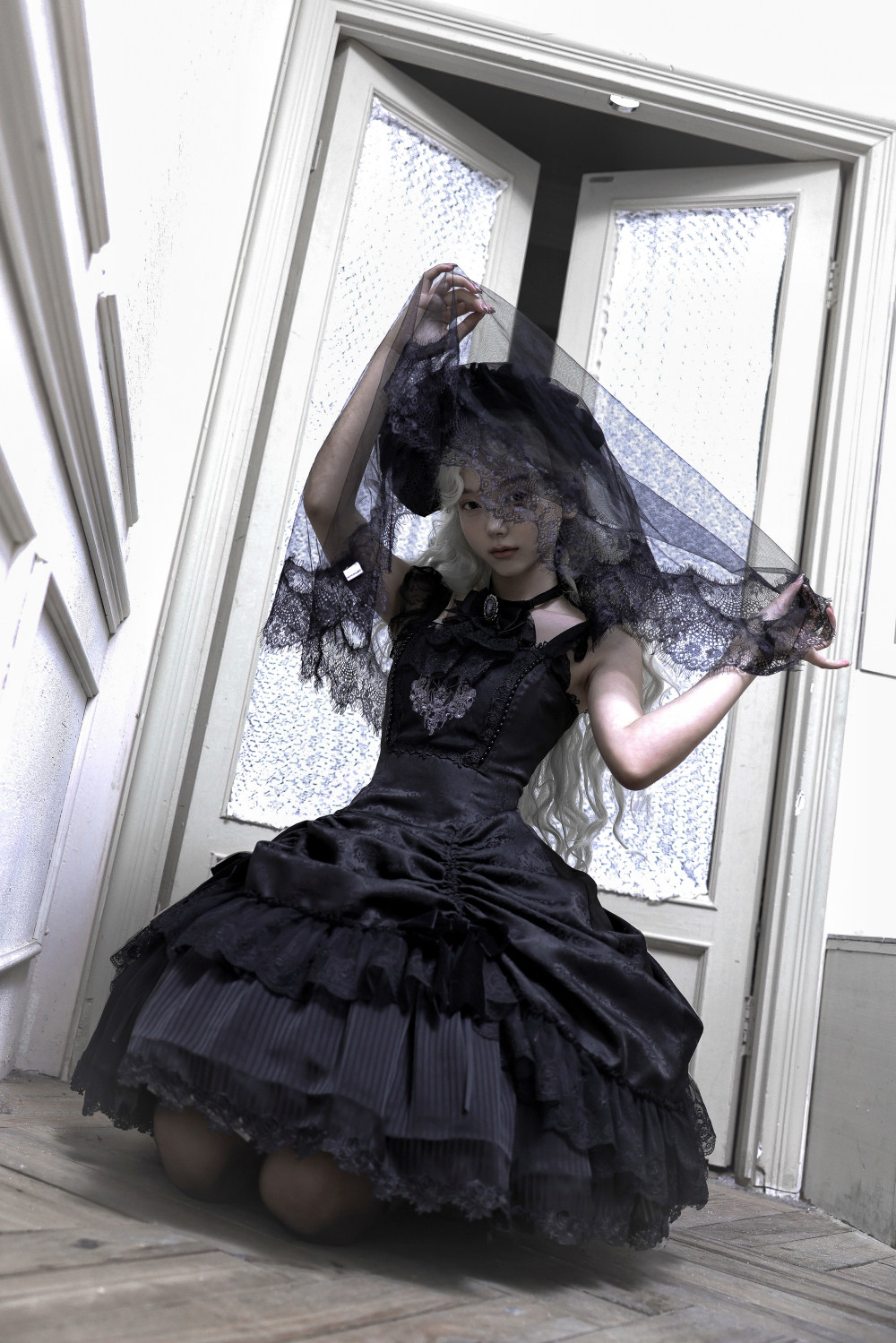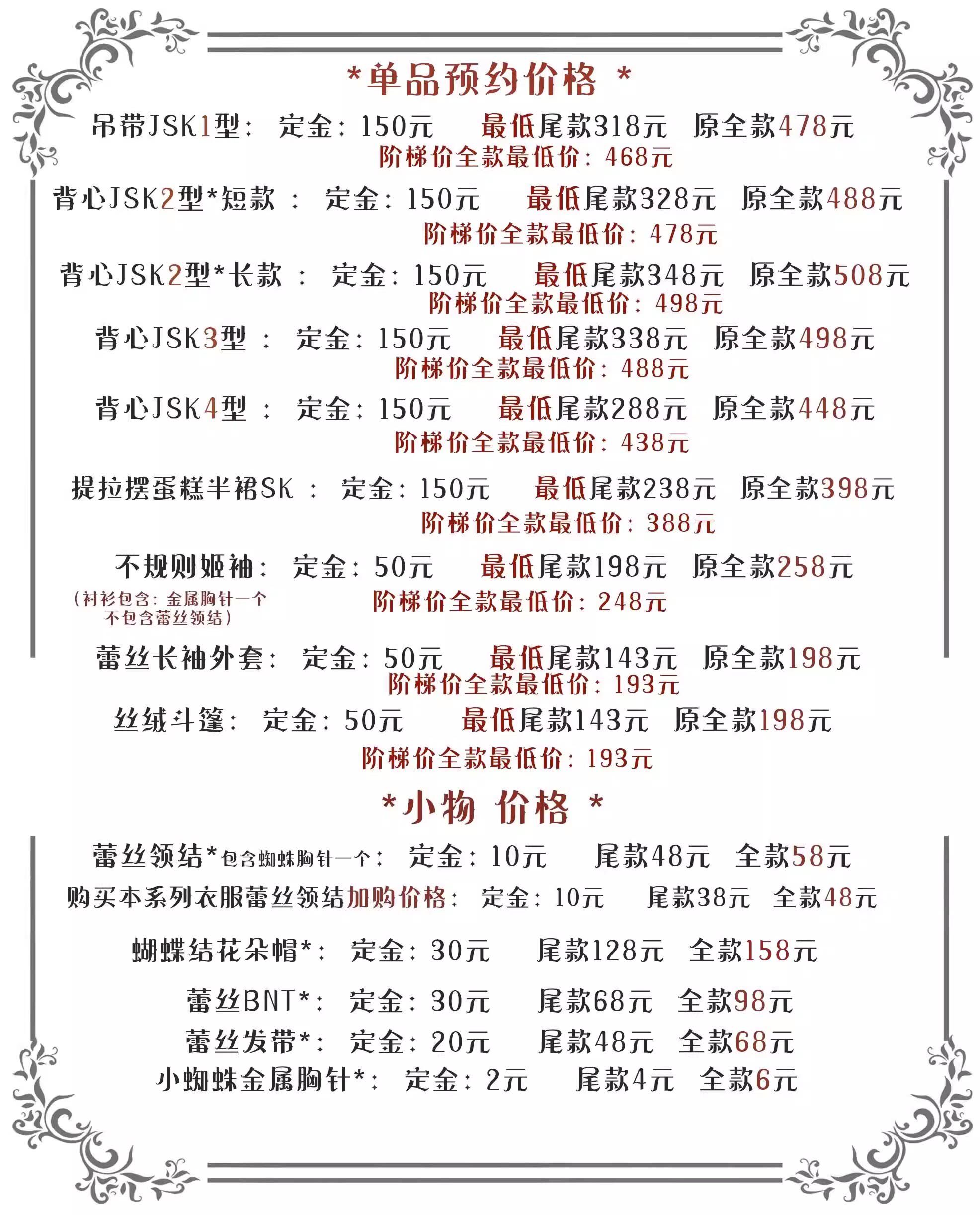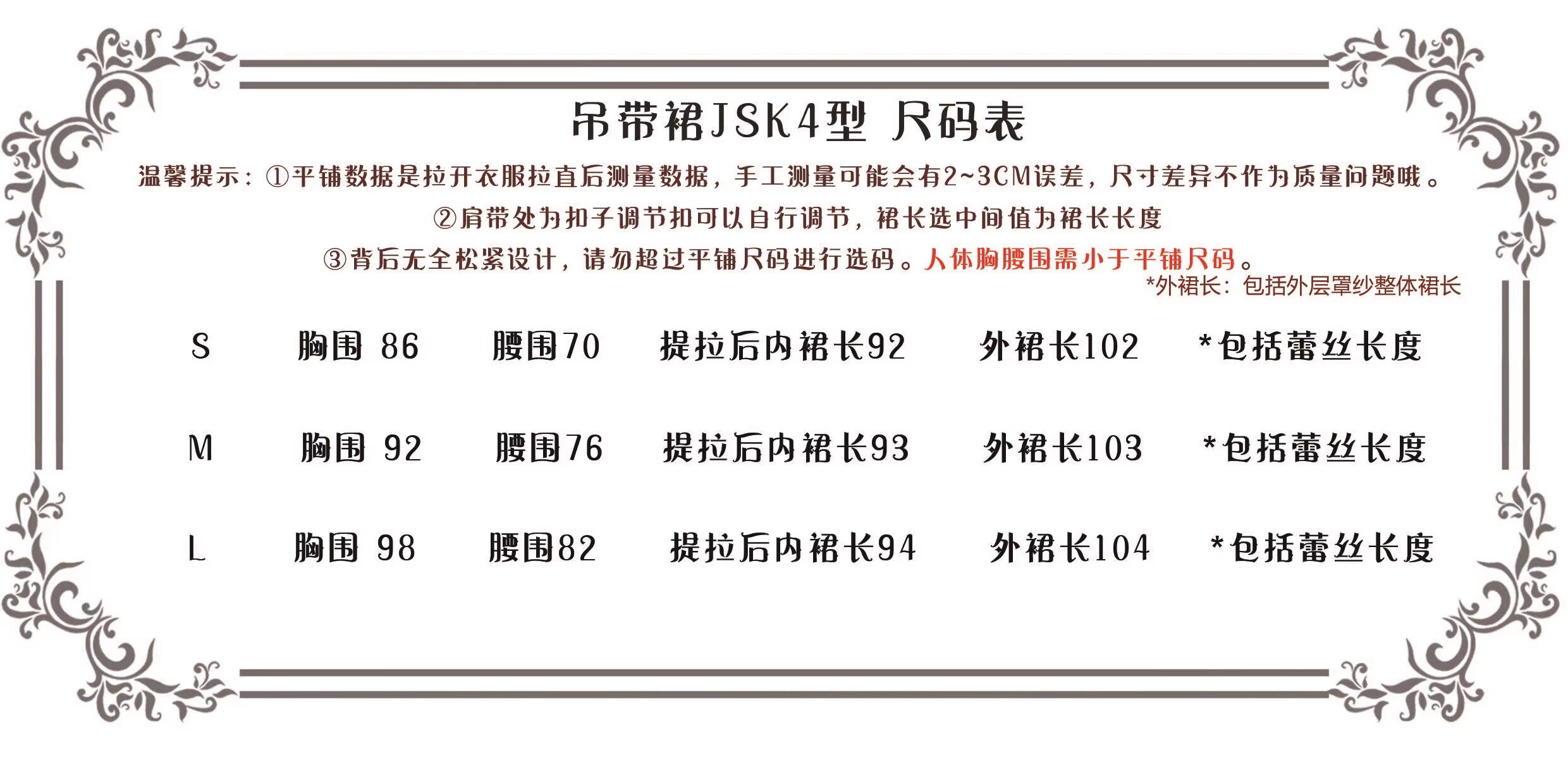 PS:JSK是提拉摆,罩纱前后一共4处有缎带,需要手动将罩纱提起来系缎带起来造型,出厂是未提拉状态