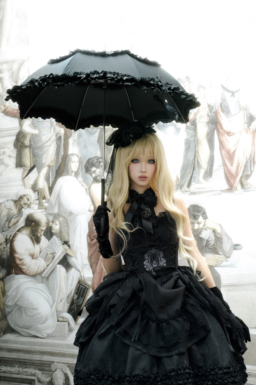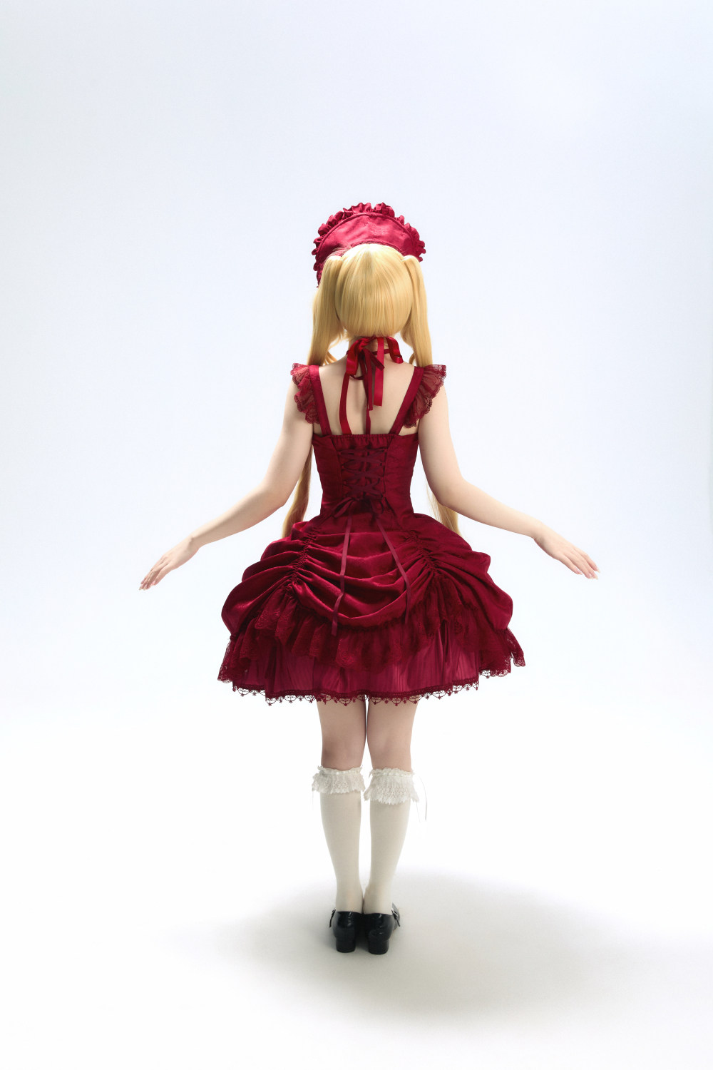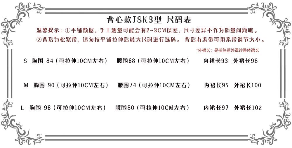 PS:JSK是提拉摆,罩纱前后一共4处有缎带,需要手动将罩纱提起来系缎带起来造型,出厂是未提拉状态