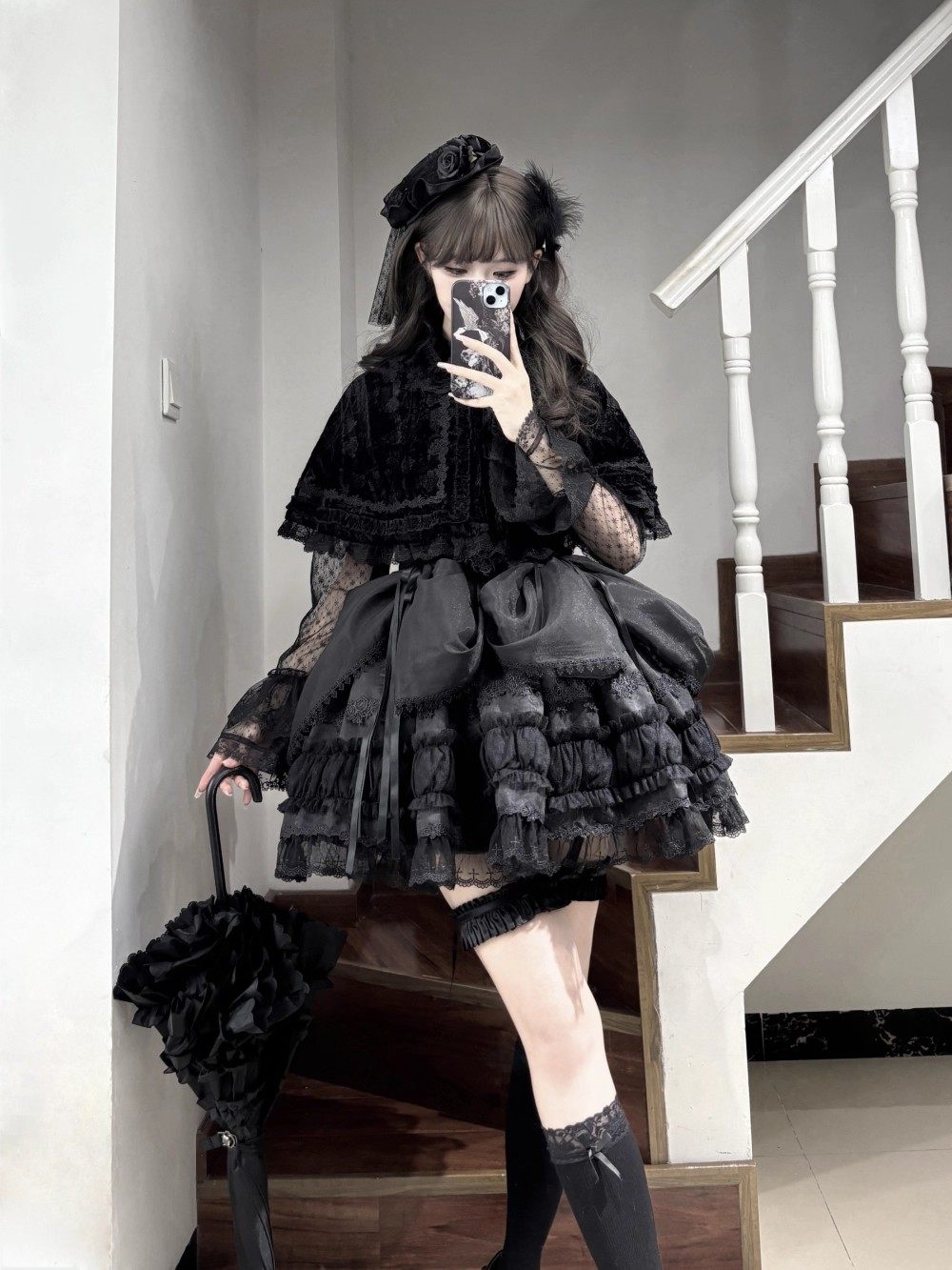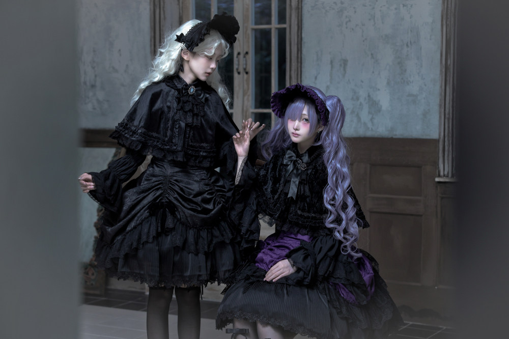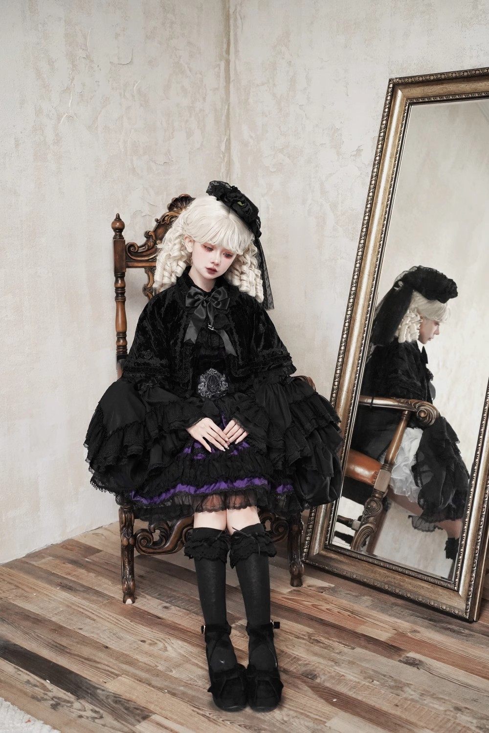 可搭配品:暗纹/纯色丝绒斗篷 蕾丝领结 不规则姬袖衬衫