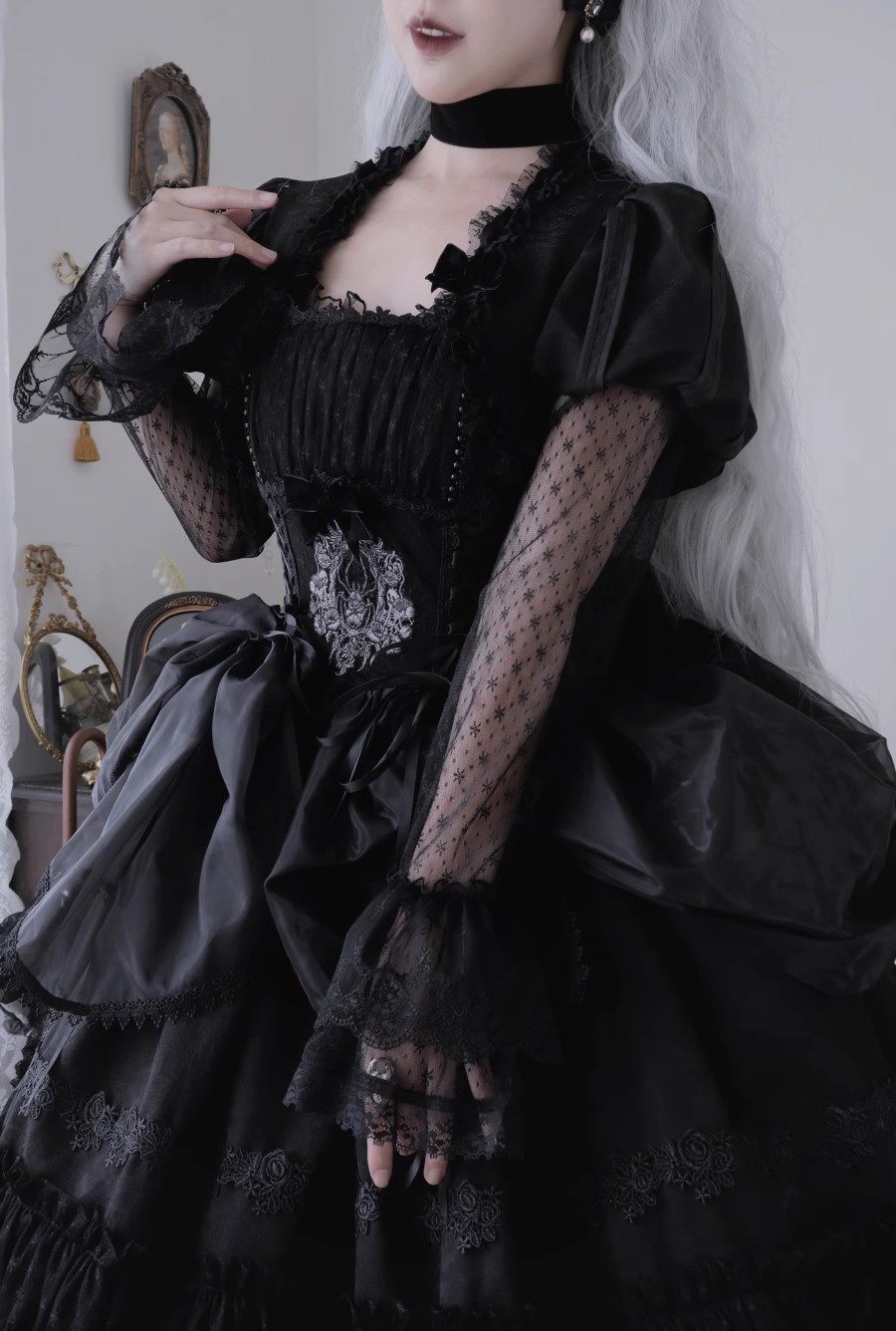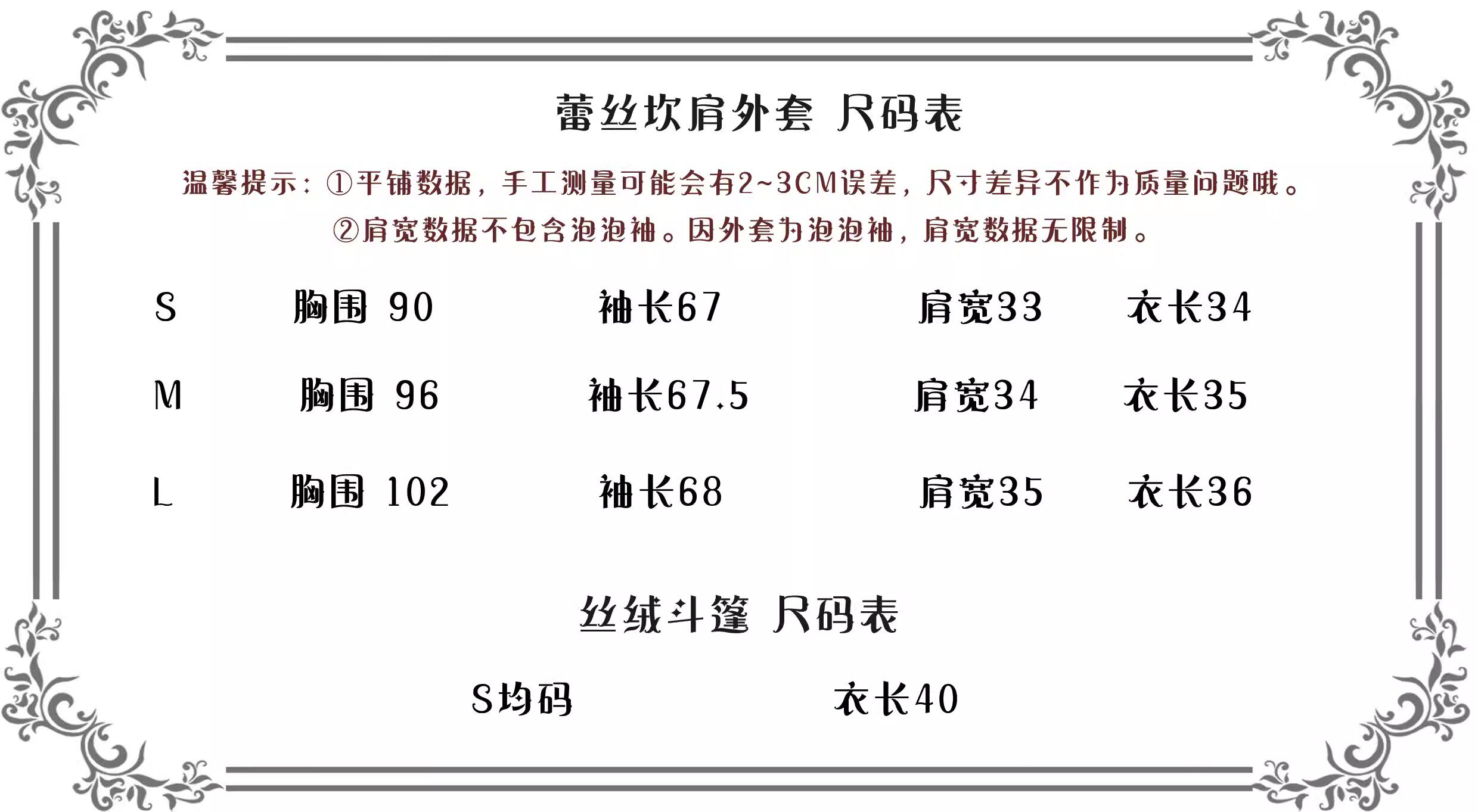 可搭配品:暗纹/纯色丝绒斗篷 蕾丝坎肩外套 蕾丝领结