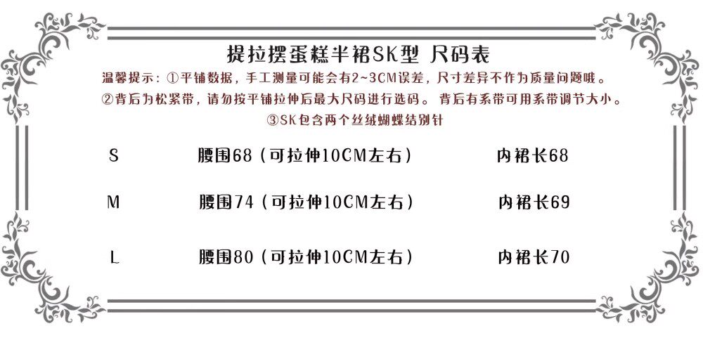 提拉摆蛋糕半裙SK (包含两个丝绒蝴蝶结别针)