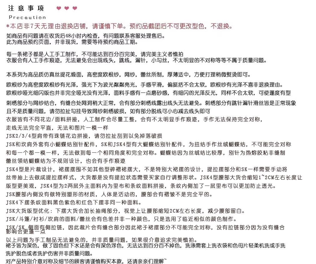 JSK1/2型/3型 主面料:提花仿真丝缎 欧根纱 蕾丝 内衬:超柔四面弹 包含一个丝绒蝴蝶结