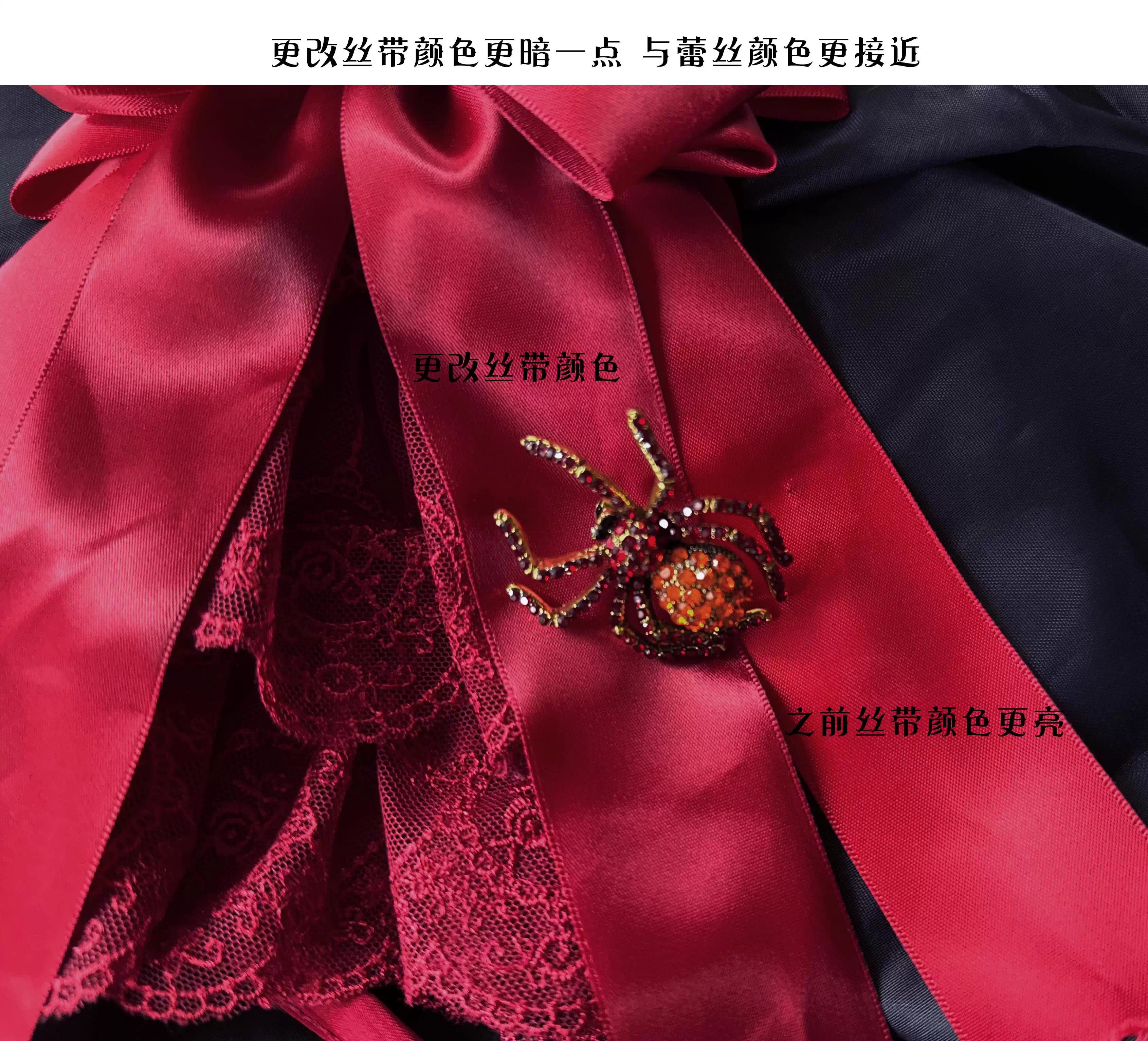 红色JSK腰部系带与罩纱提拉摆系带皆换成哑光缎带,黑色腰部缎带换为哑光缎带。