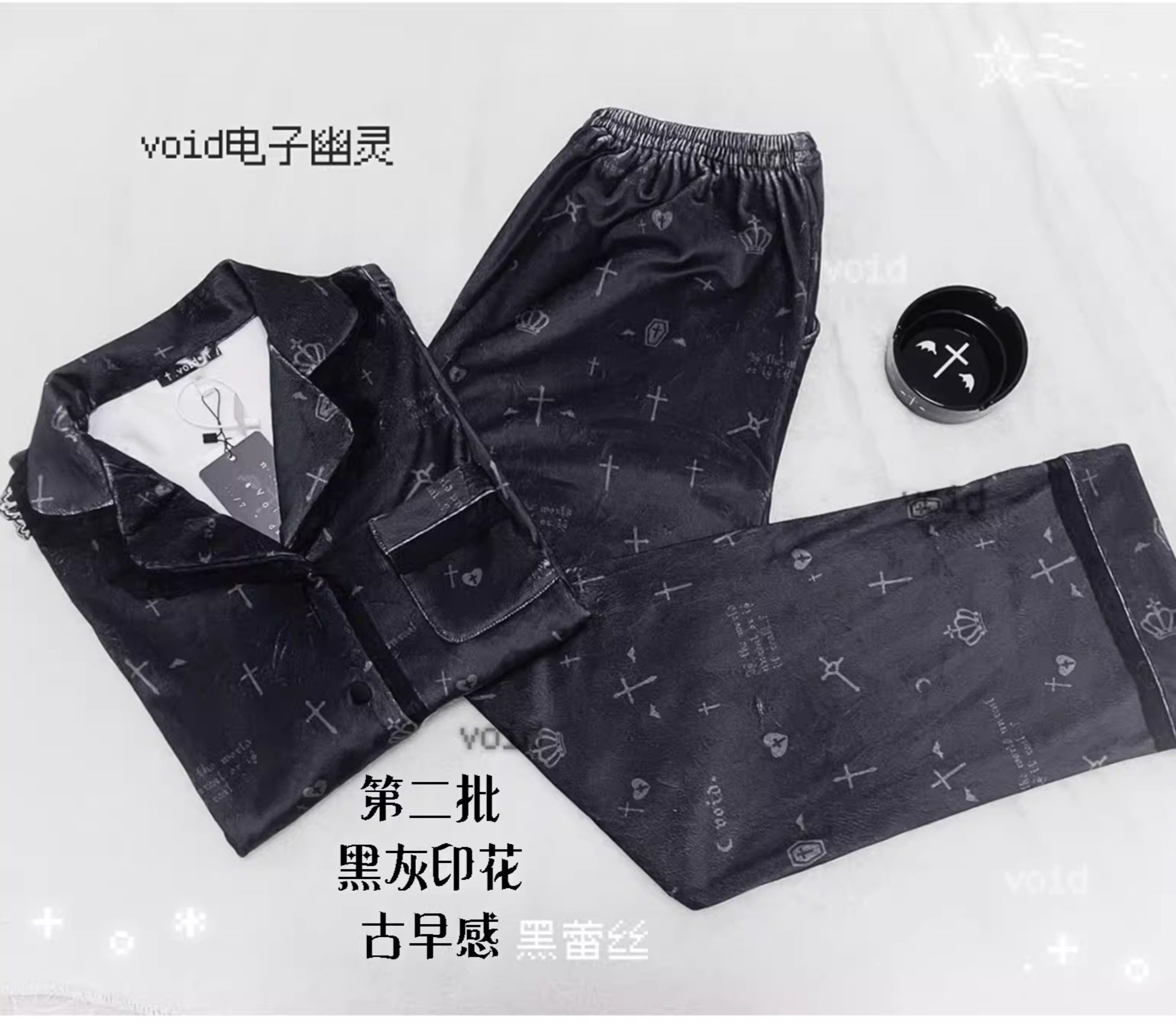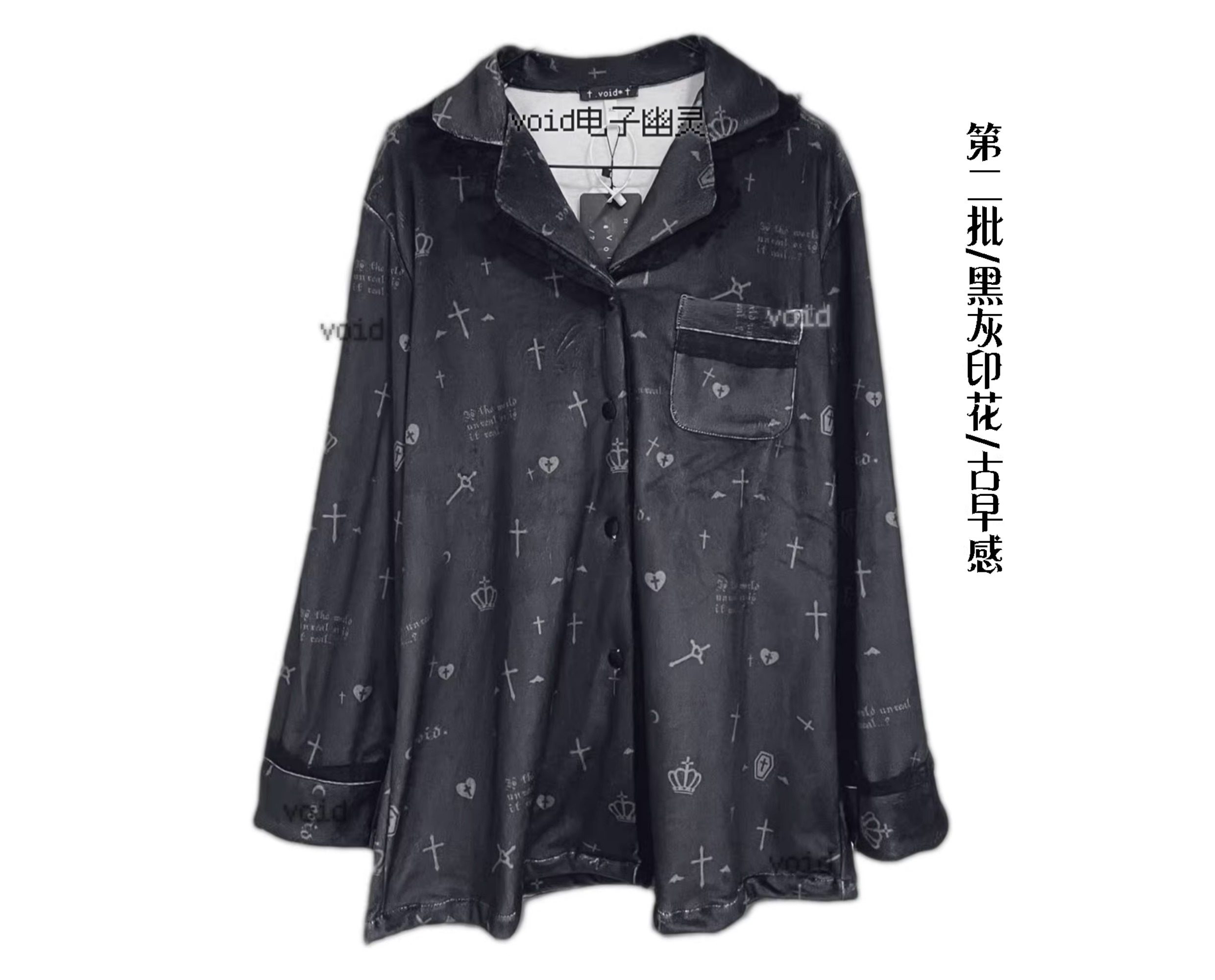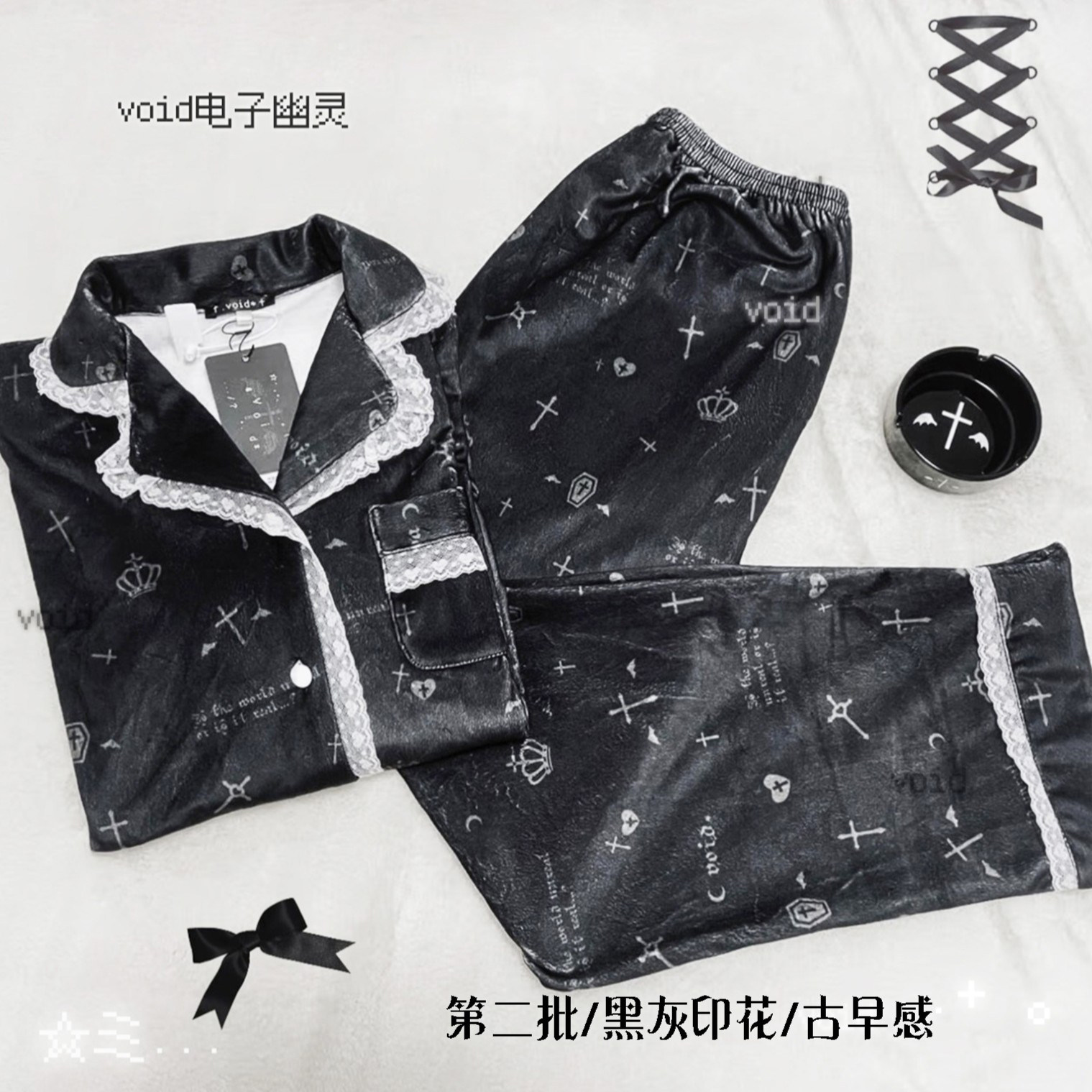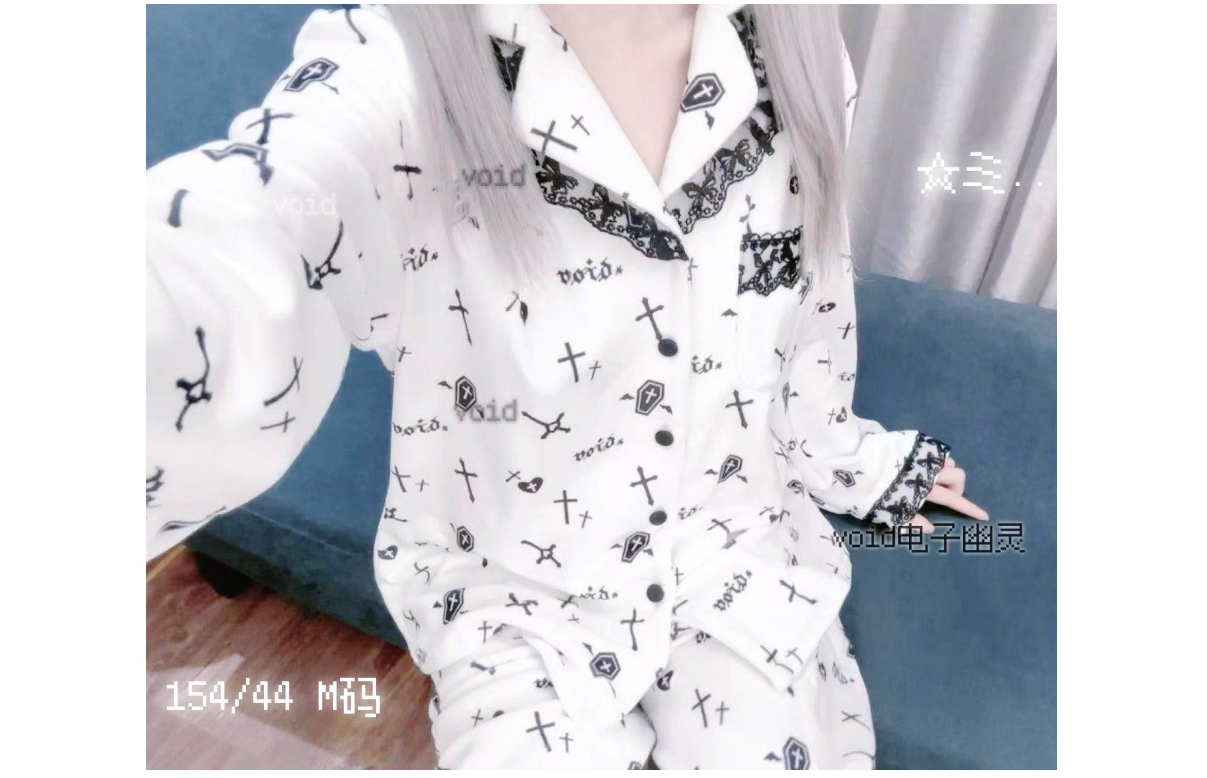 原创加绒十字架双长睡衣套装哥特亚文化暗黑宅系蕾系海岛绒 [Original Page Link]