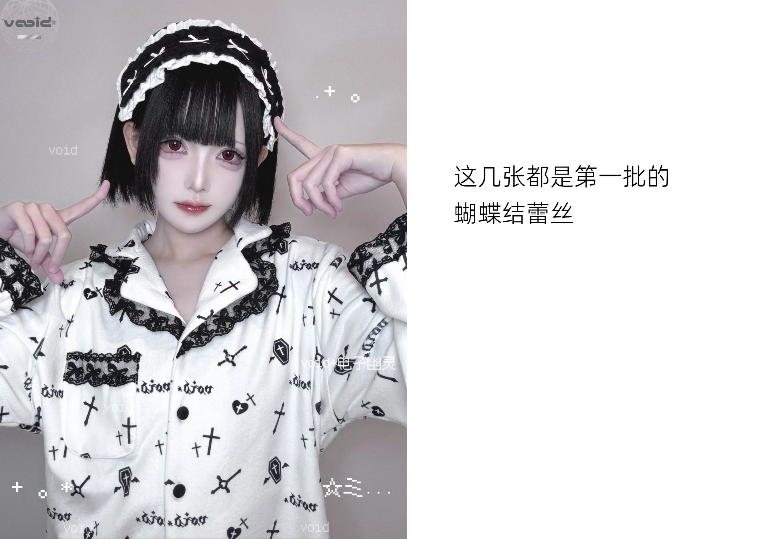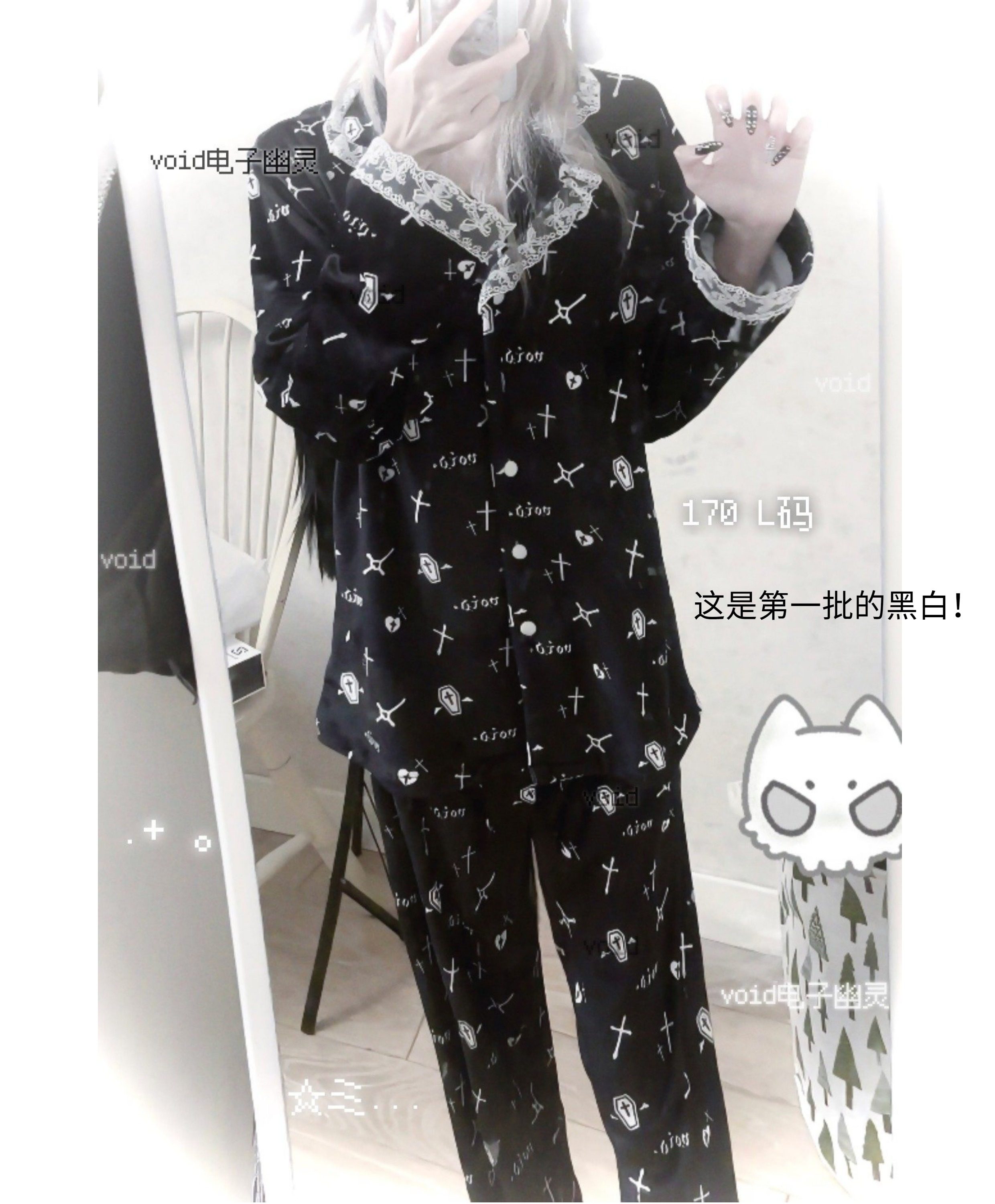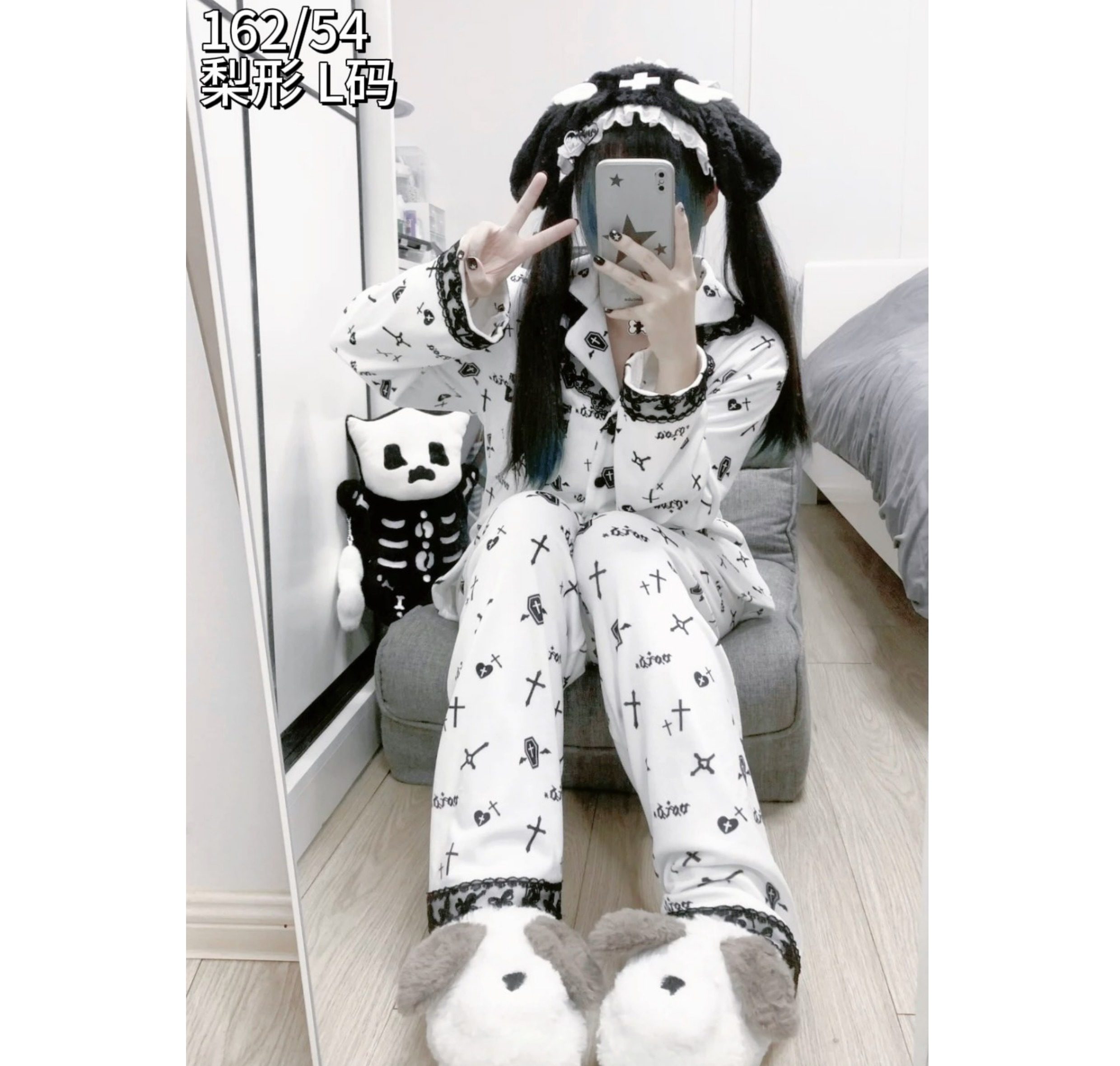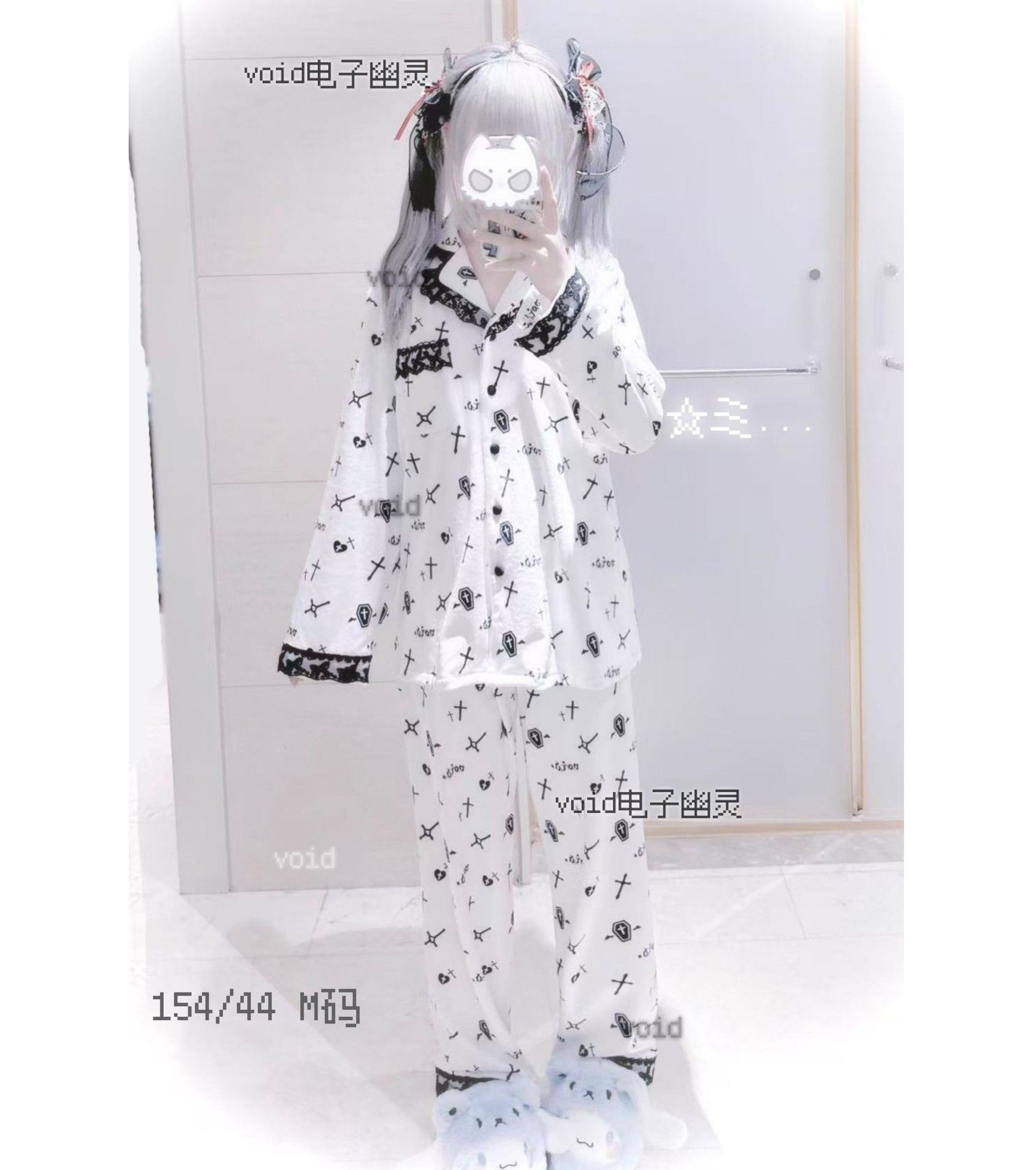 原创加绒十字架双长睡衣套装哥特亚文化暗黑宅系蕾系海岛绒 [Original Page Link]