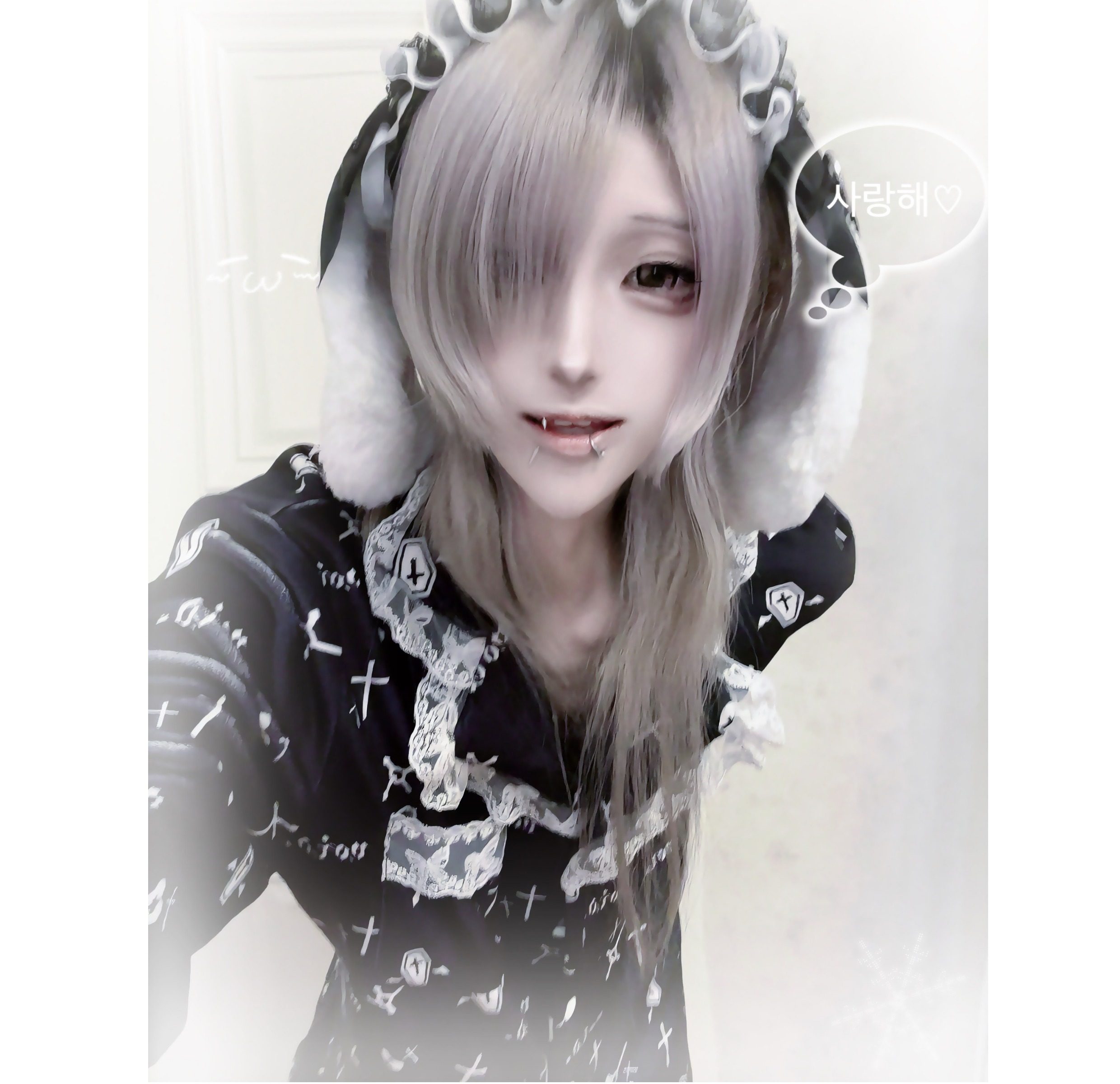 Original fleece-lined cross double-length pajama set, Gothic Asian style, dark otaku style, lace style, island fleece.