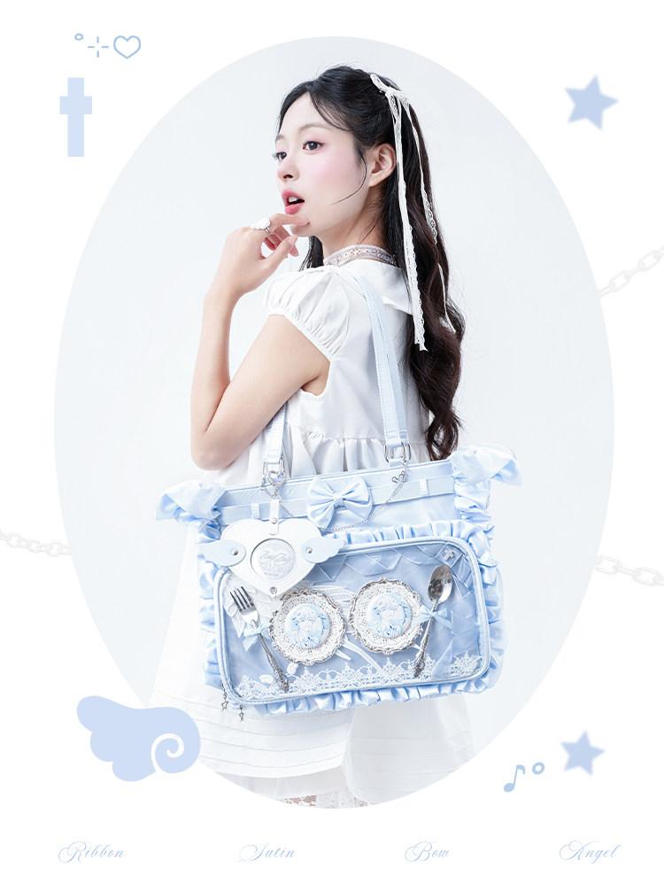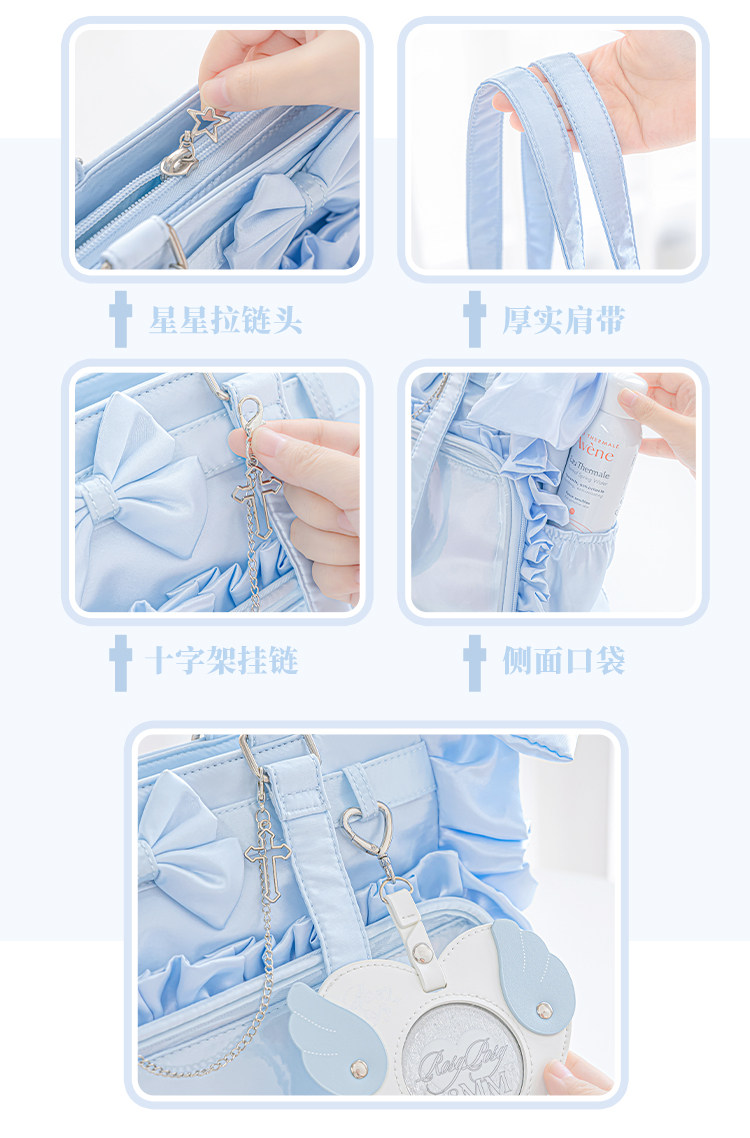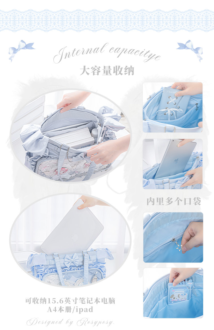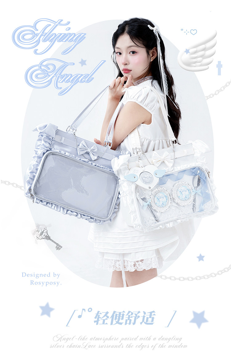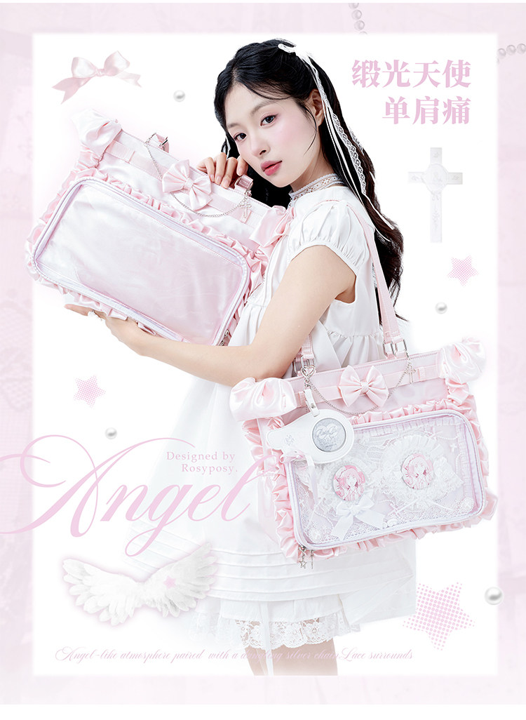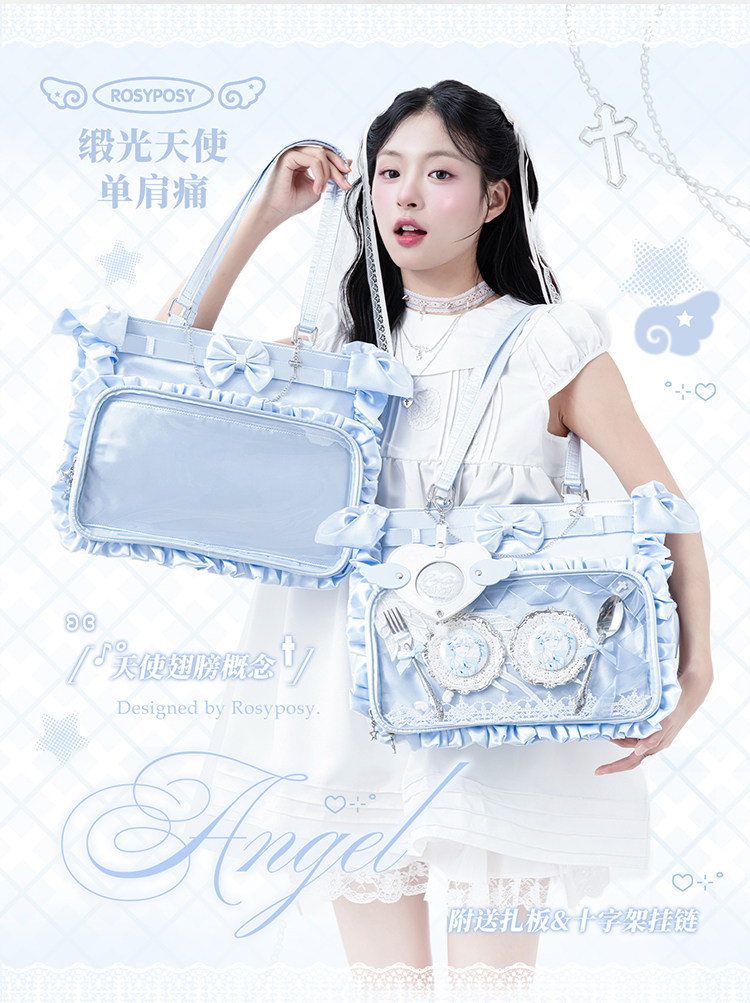 RosyPosy柔设缎面天使单肩痛包大食量娃包日常原创追星大容量包包 [Original Page Link]