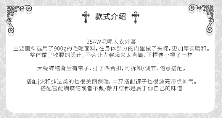 HBreaker 11.10/20:00可拆卸大蝴蝶结毛呢大衣外套 [Original Page Link]