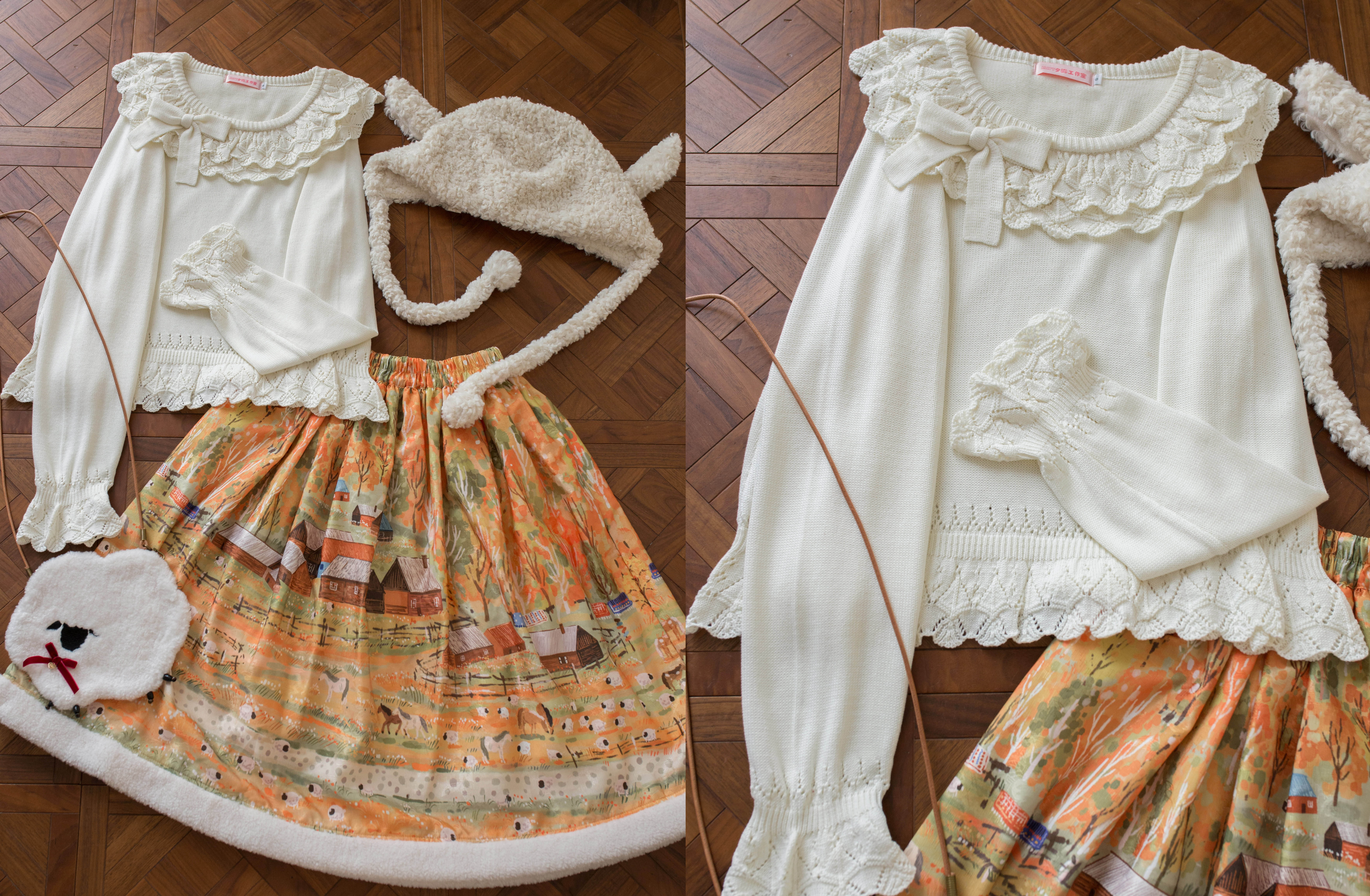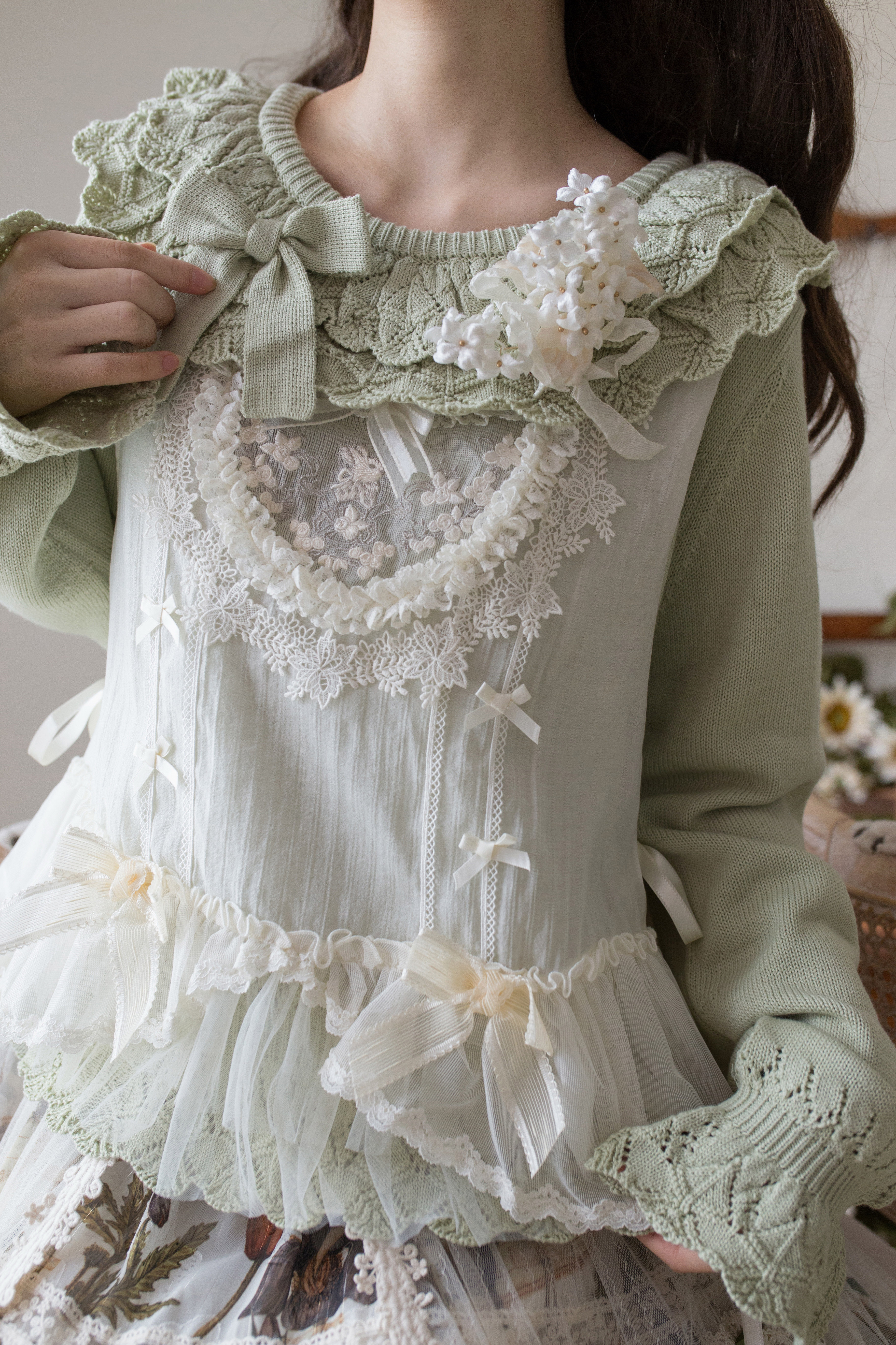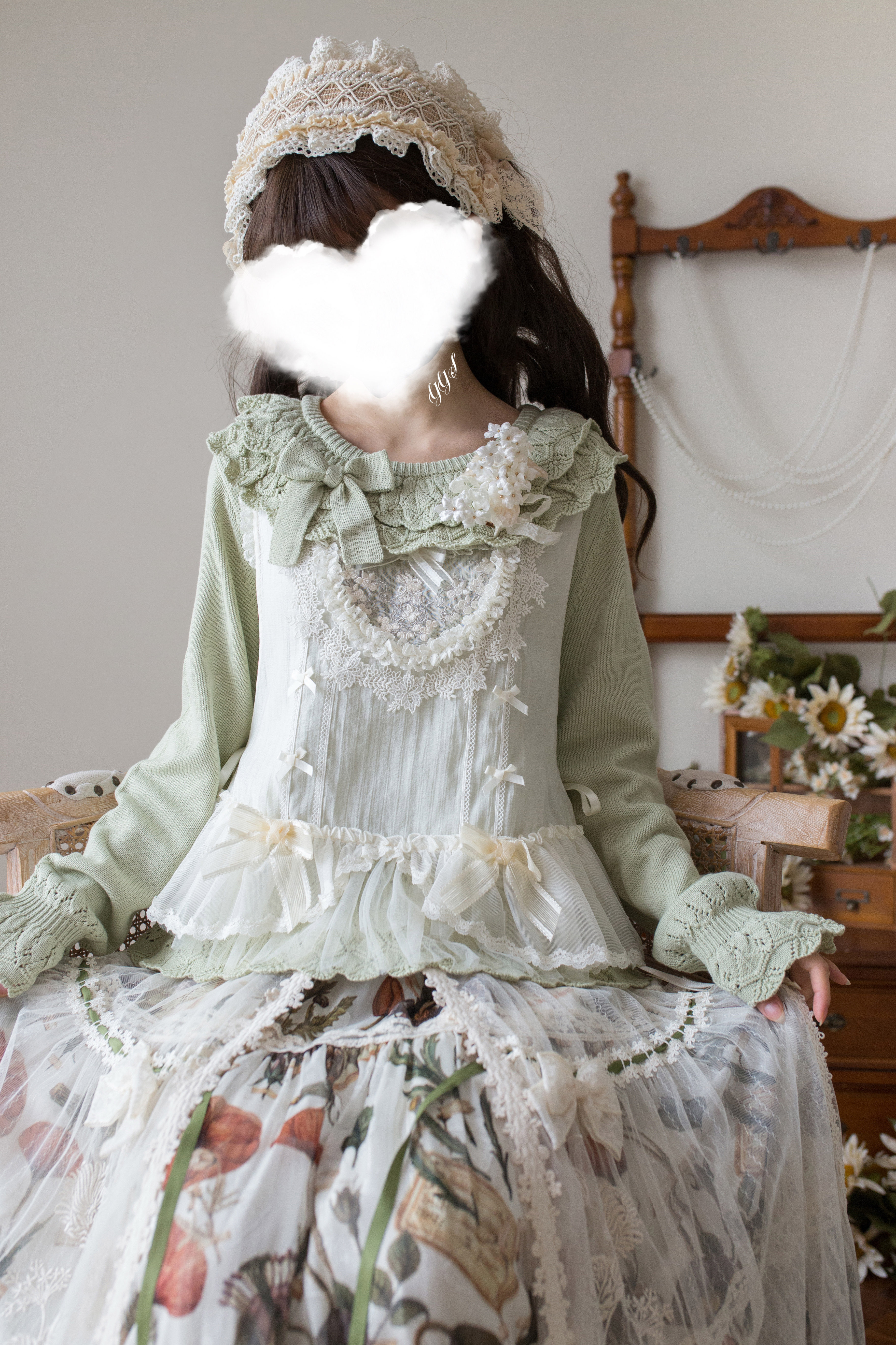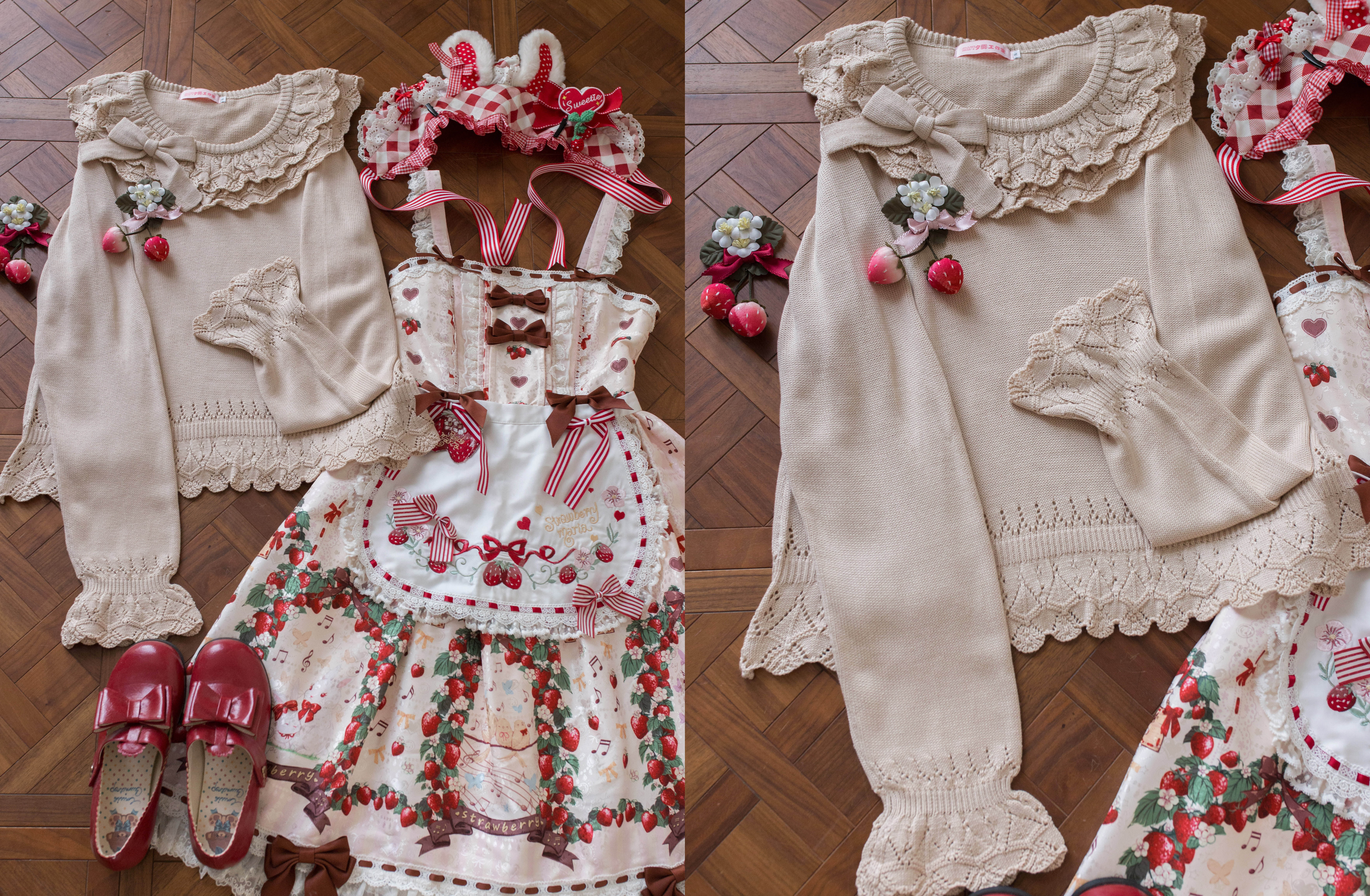 Nana pullover crew neck sweater, a cute puff sleeve Lolita sweater, a warm knitted inner layer for autumn and winter.