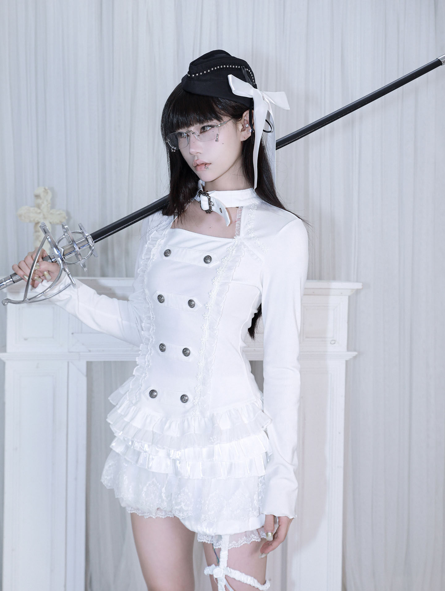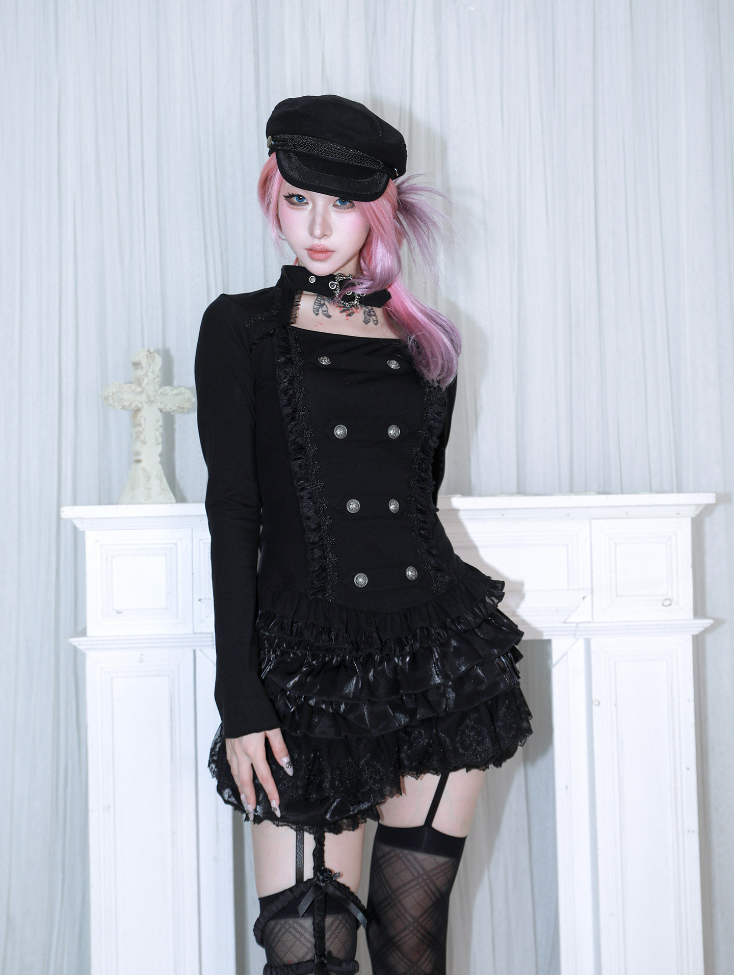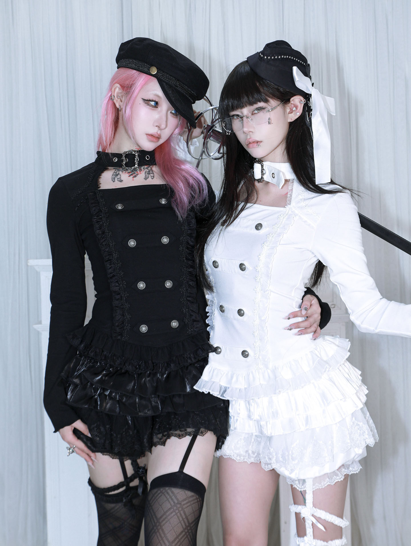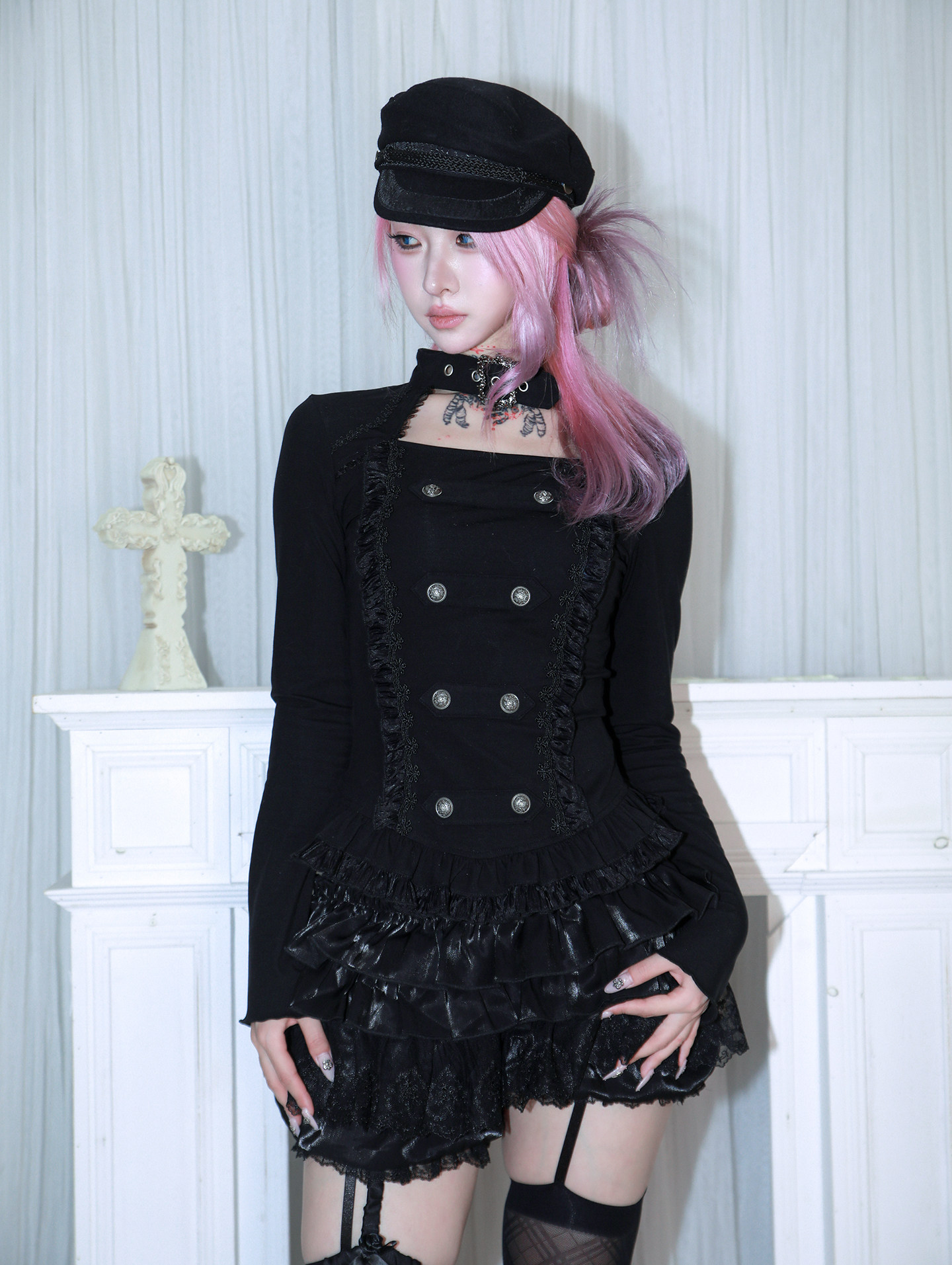 HBreaker 亚文化薄绒双排扣黑白挂脖长袖打底衫上衣 [Original Page Link]