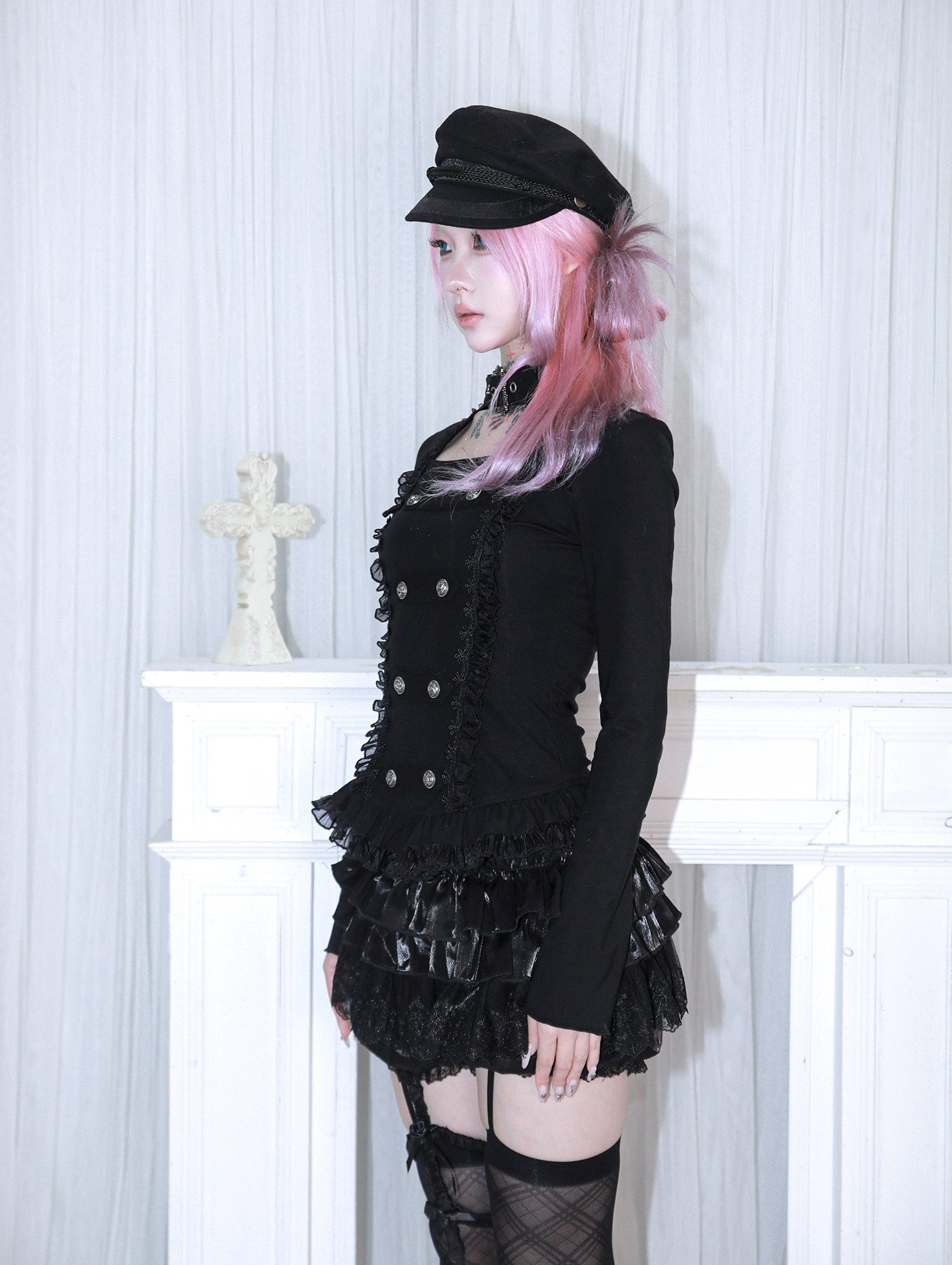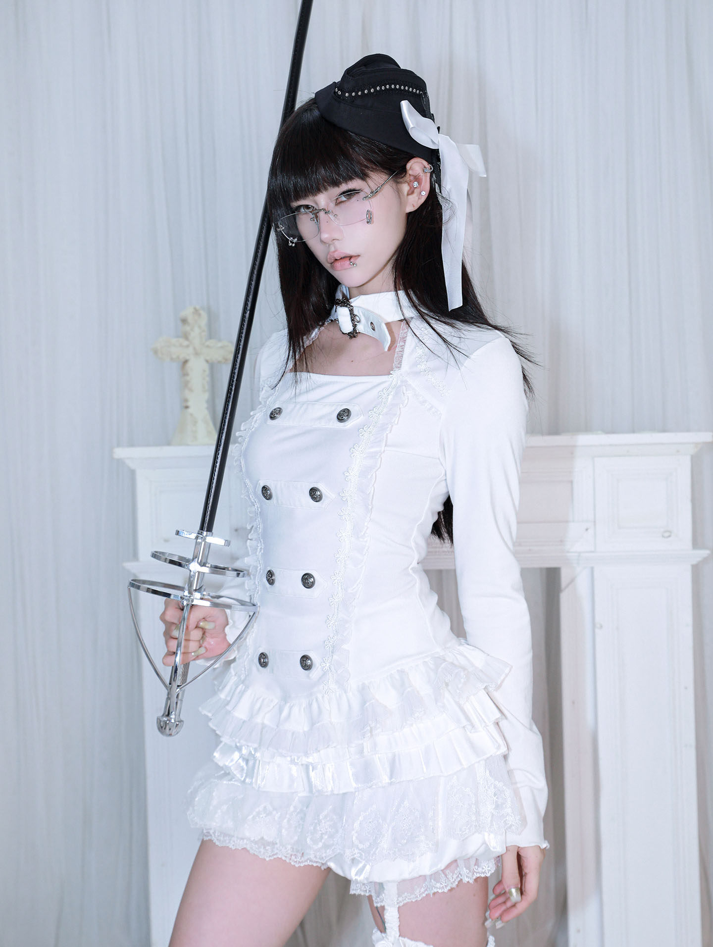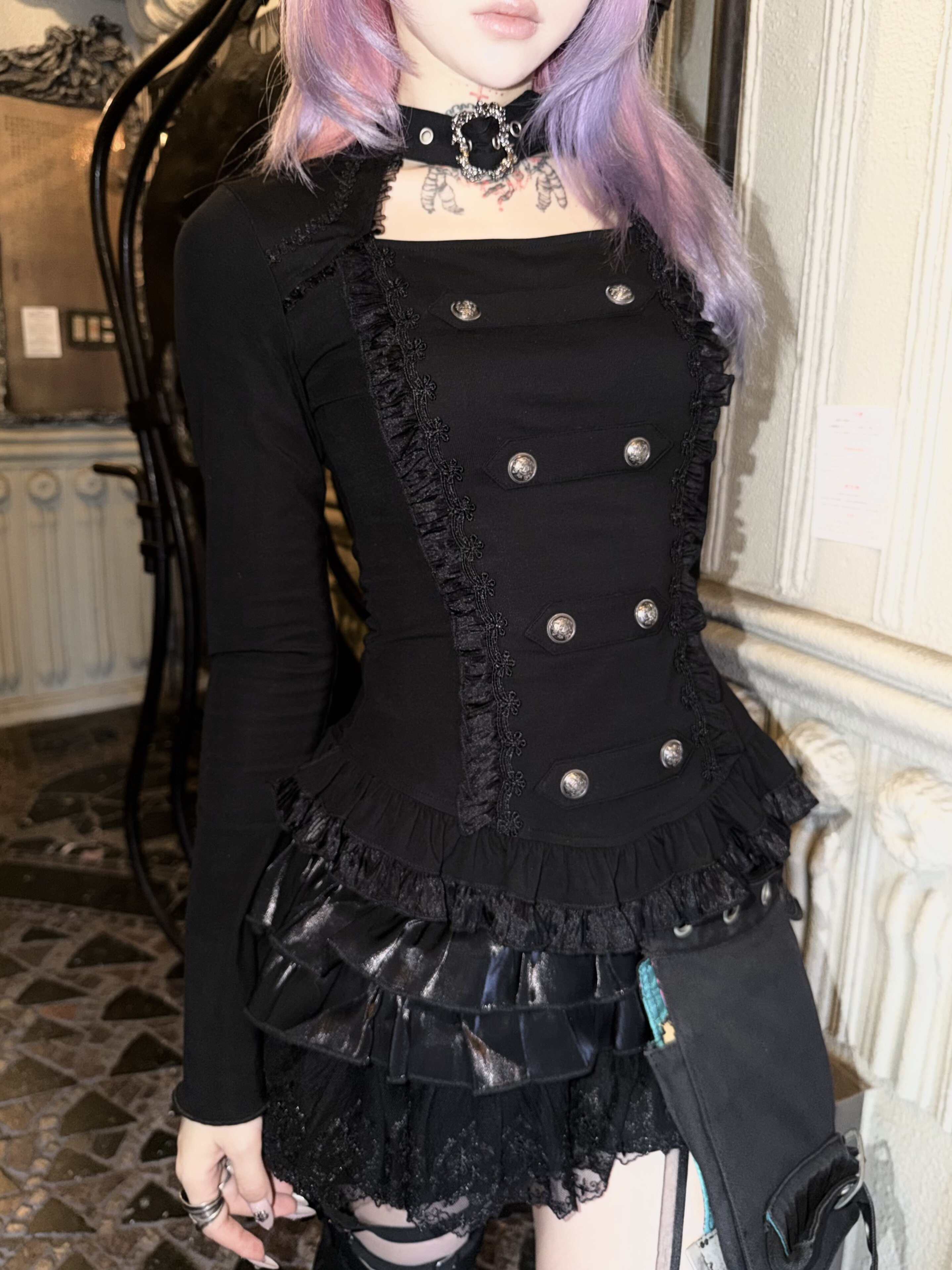 HBreaker 亚文化薄绒双排扣黑白挂脖长袖打底衫上衣 [Original Page Link]