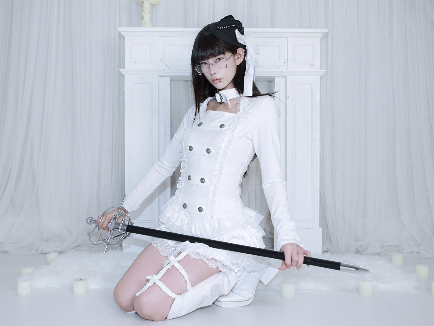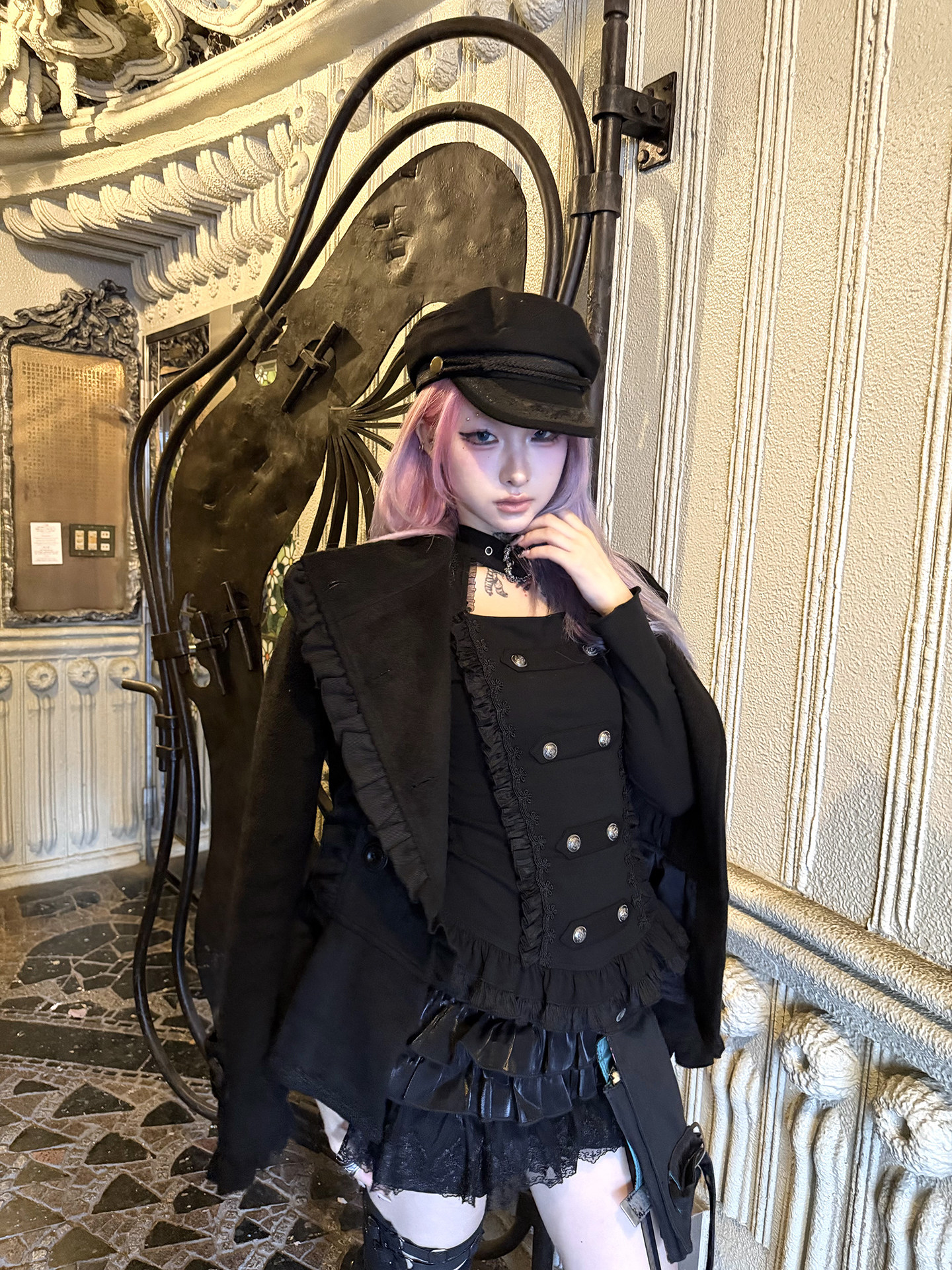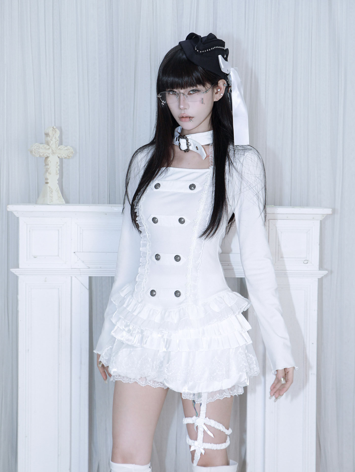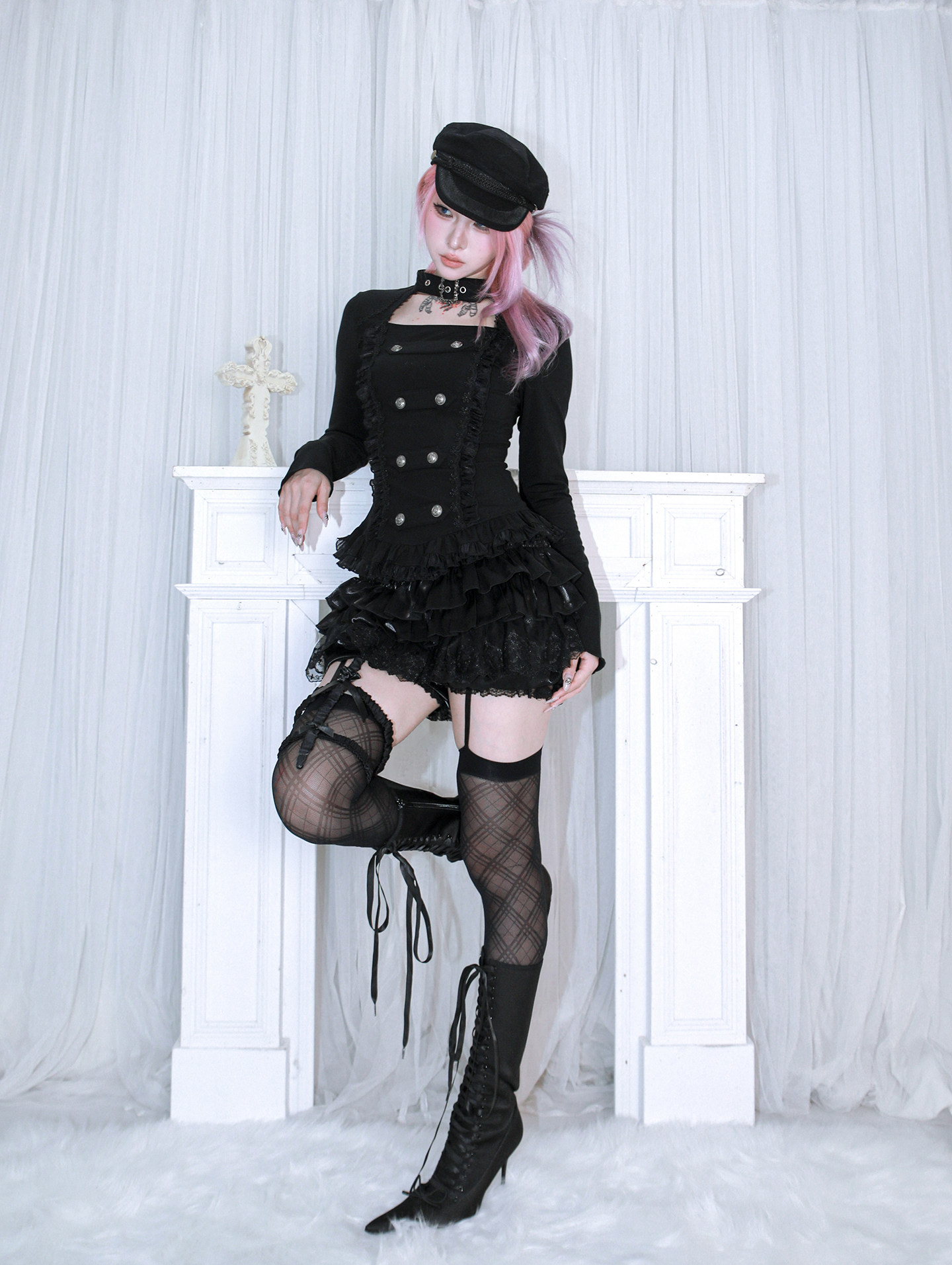 HBreaker 亚文化薄绒双排扣黑白挂脖长袖打底衫上衣 [Original Page Link]