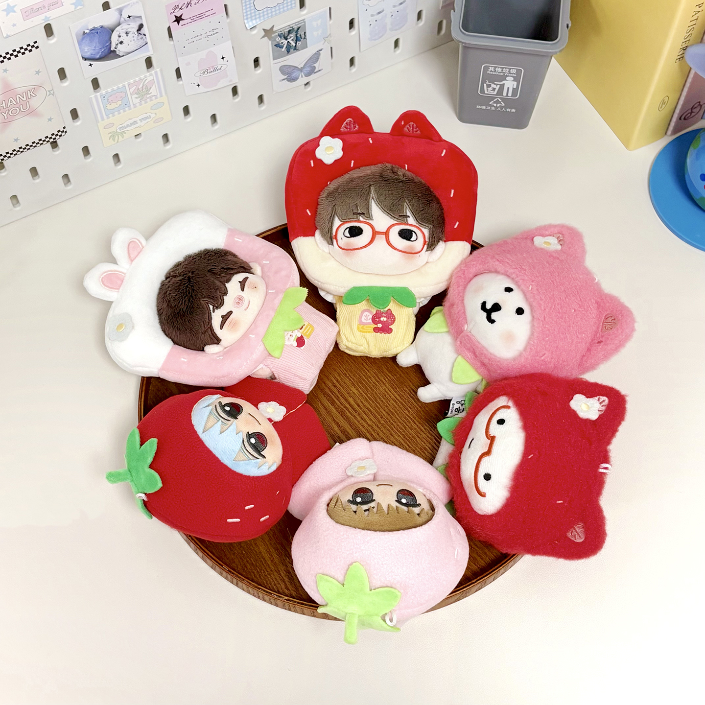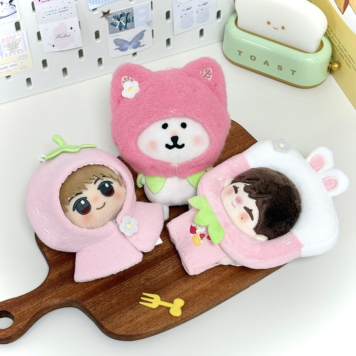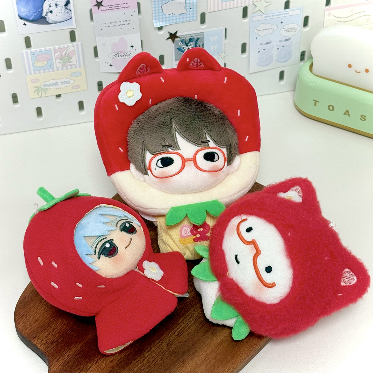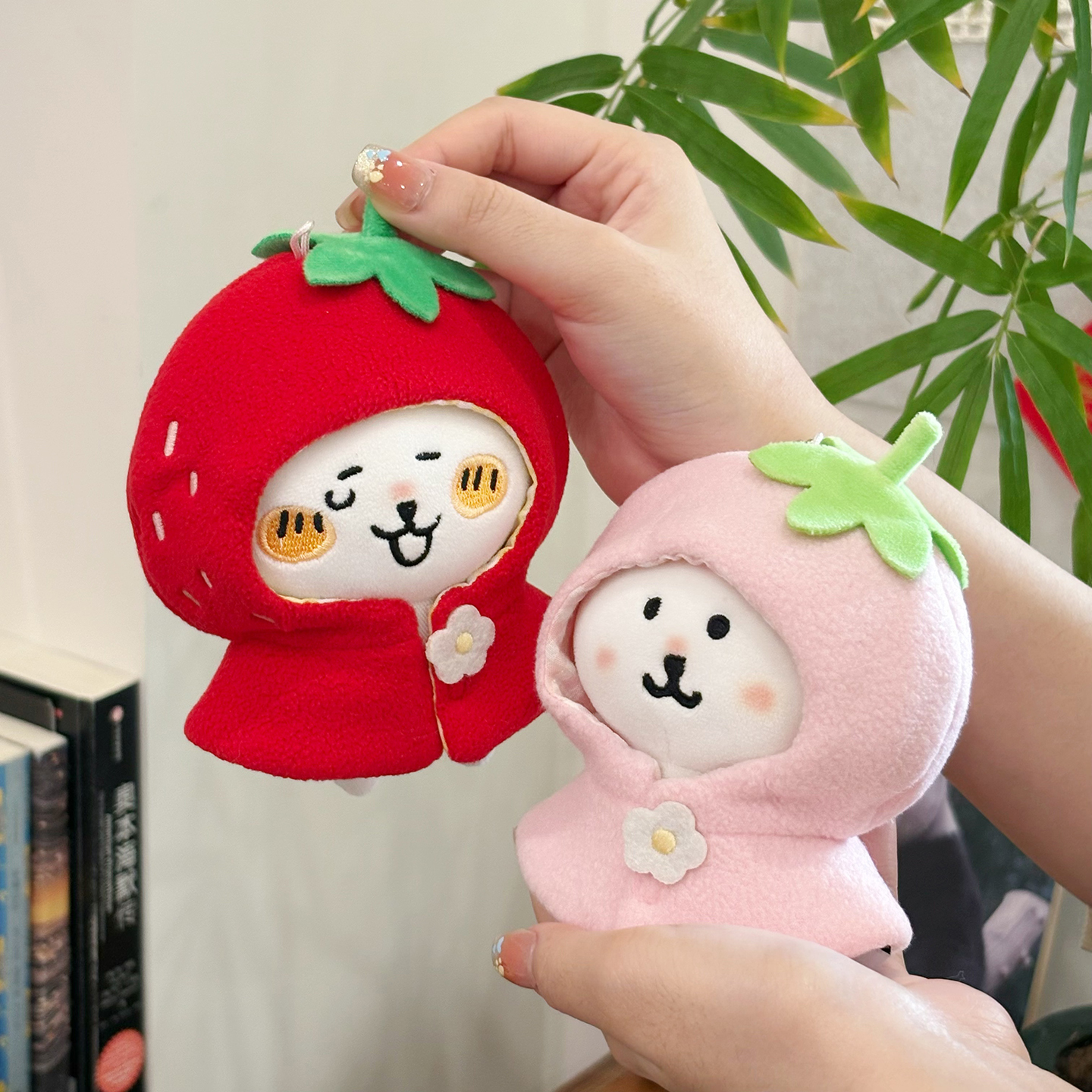 宇宙商店 草莓系列 10cm棉花娃娃衣自嘲熊平淡兔毛绒挂件斗篷头套 [Original Page Link]