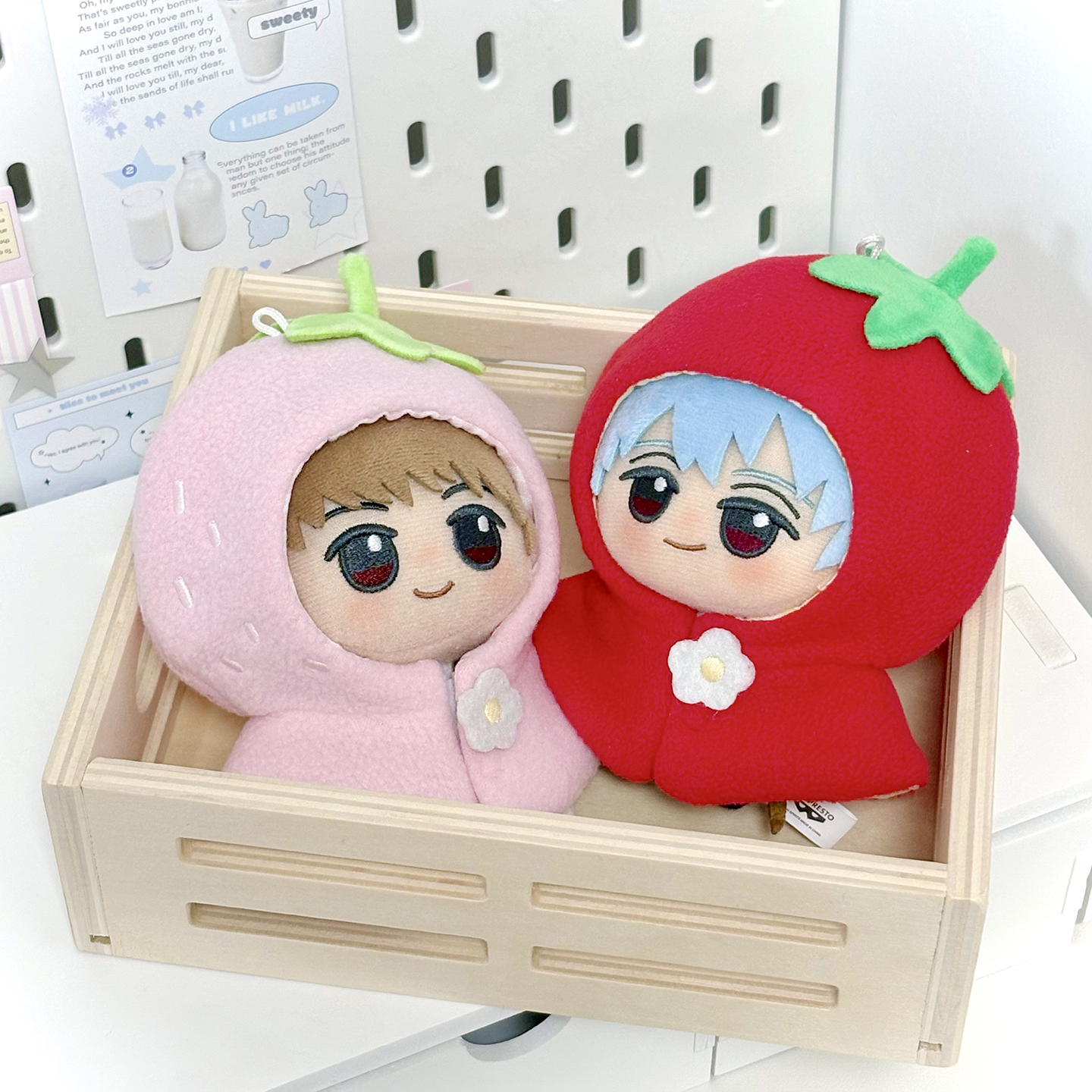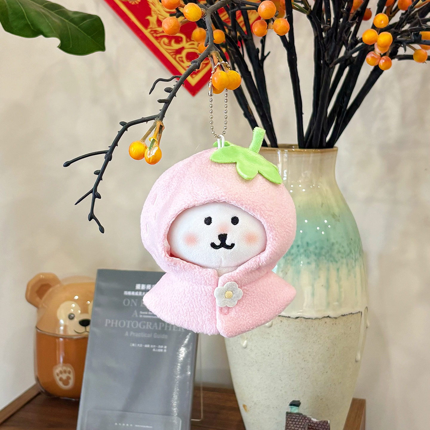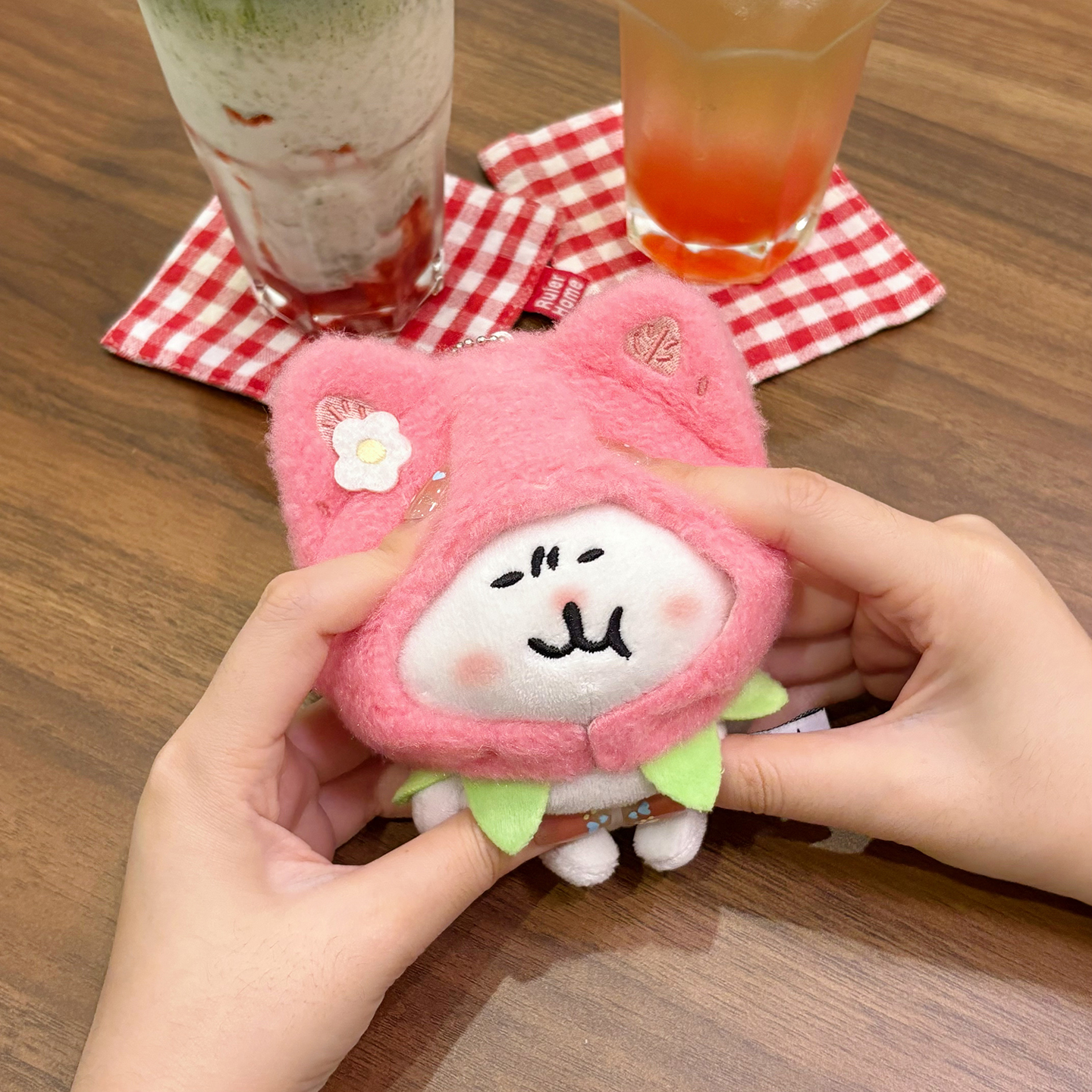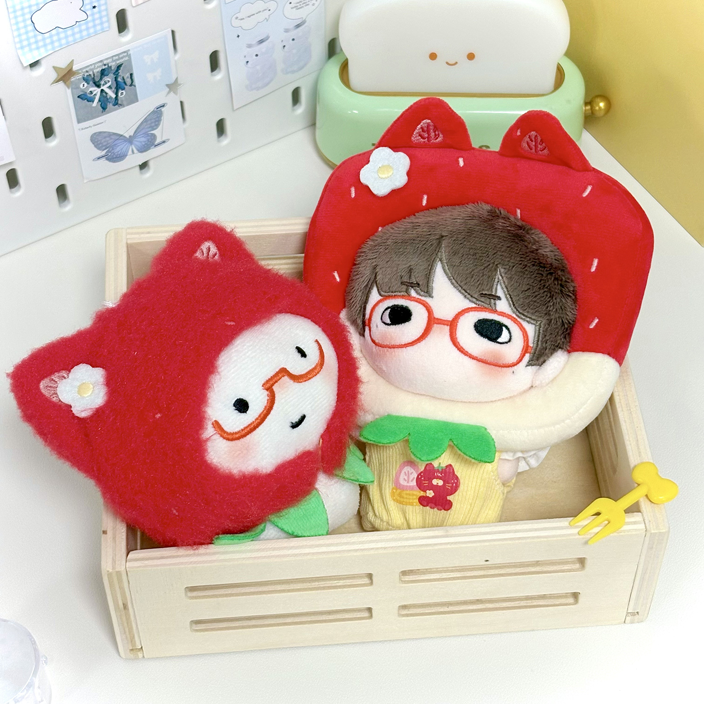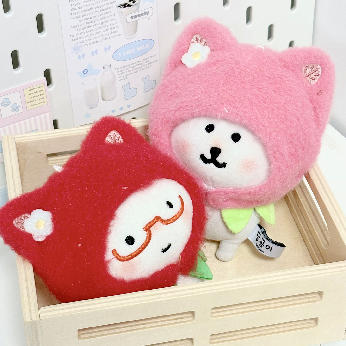 宇宙商店 草莓系列 10cm棉花娃娃衣自嘲熊平淡兔毛绒挂件斗篷头套 [Original Page Link]