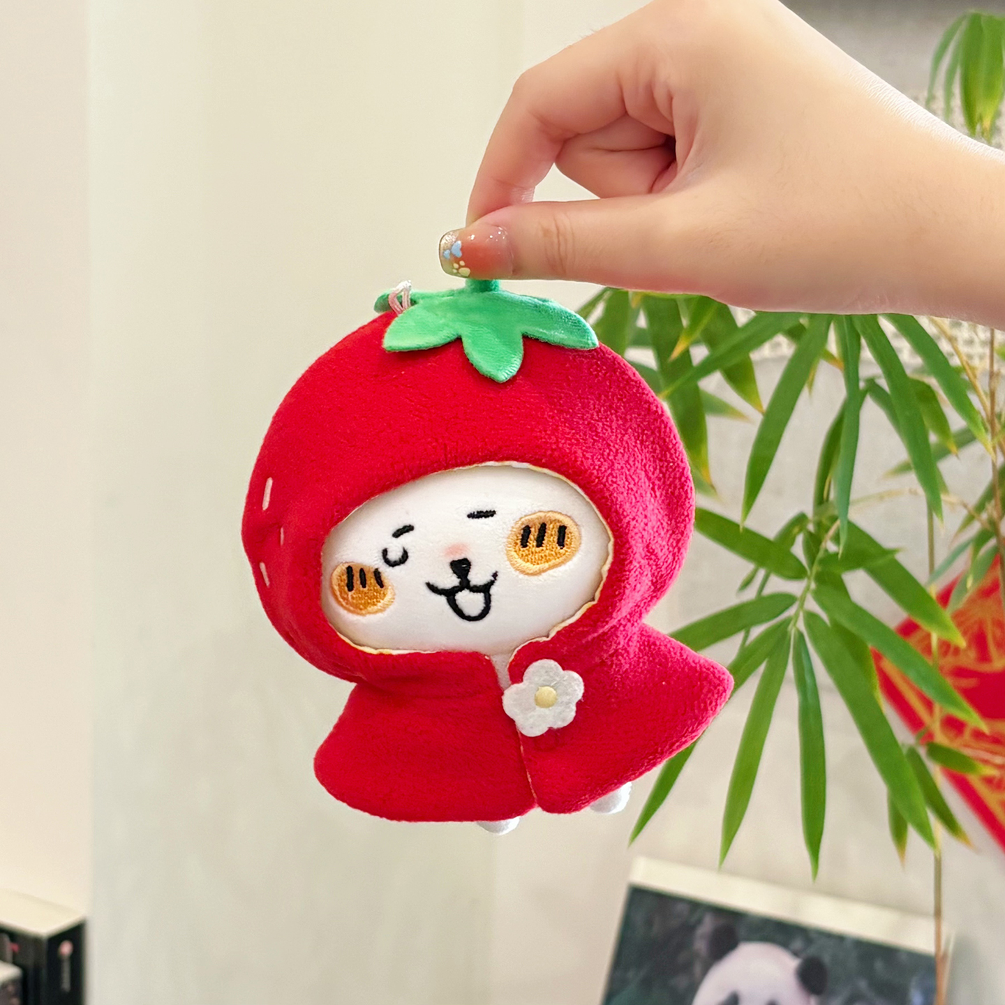 Cosmic Store Strawberry Series 10cm Cotton Doll Dress, Self-deprecating Bear, Plain Rabbit Plush Keychain, Cape Headgear