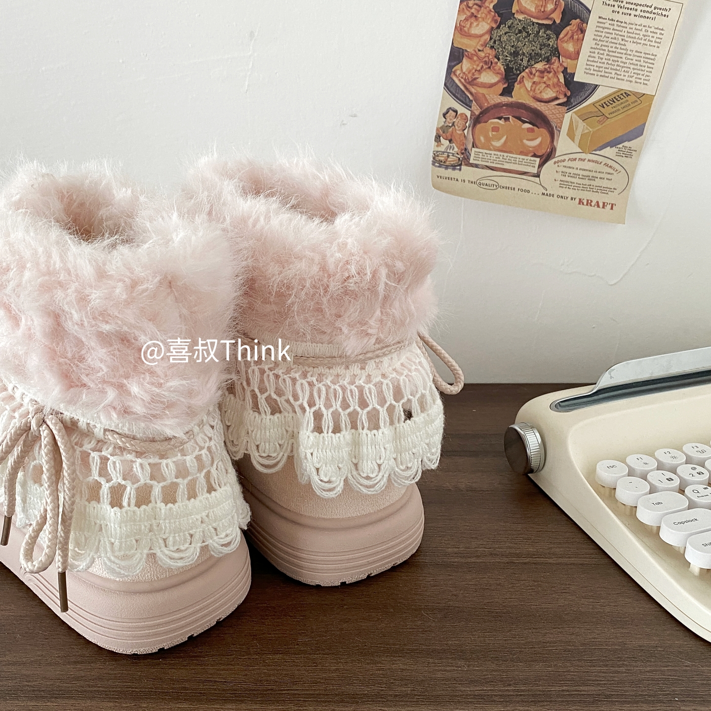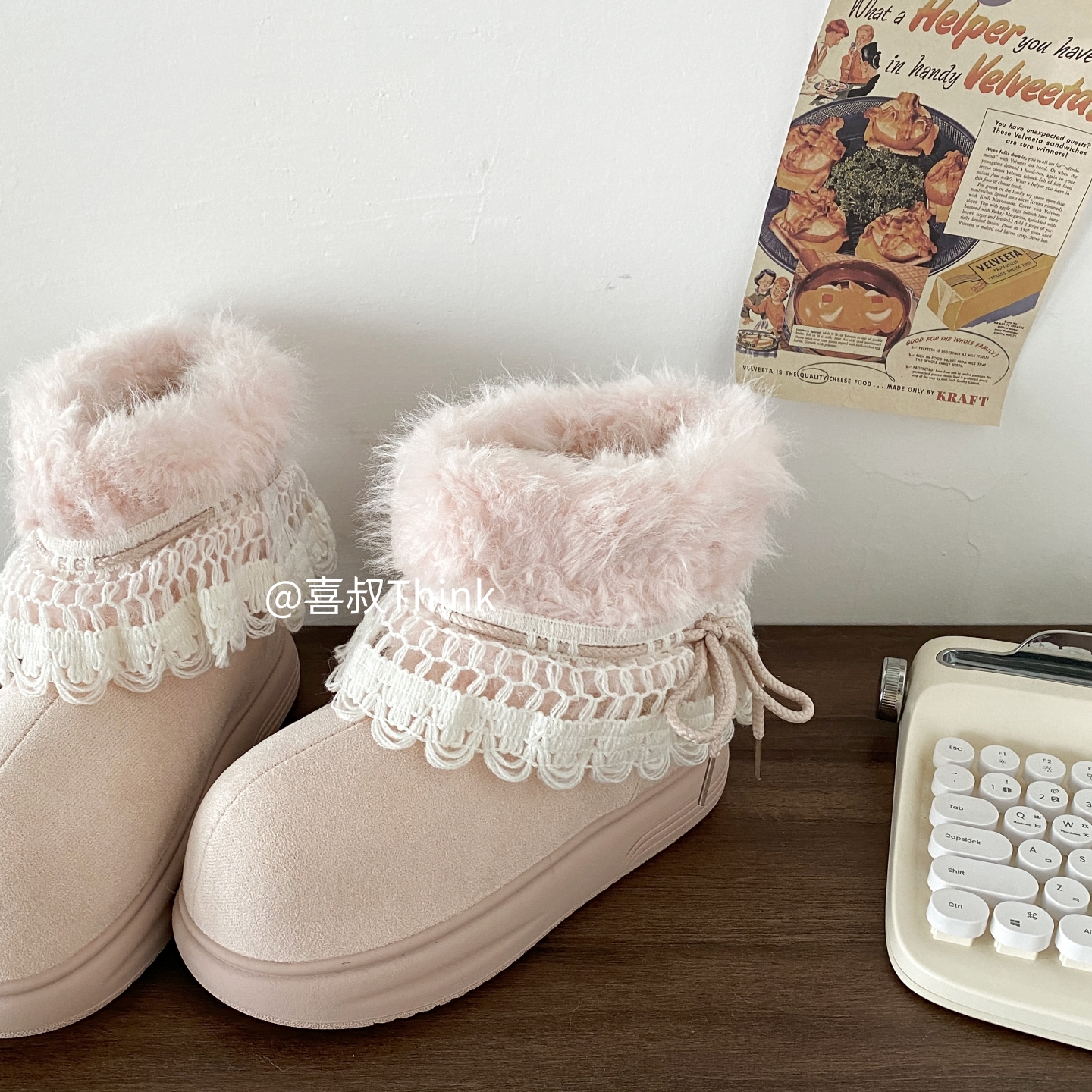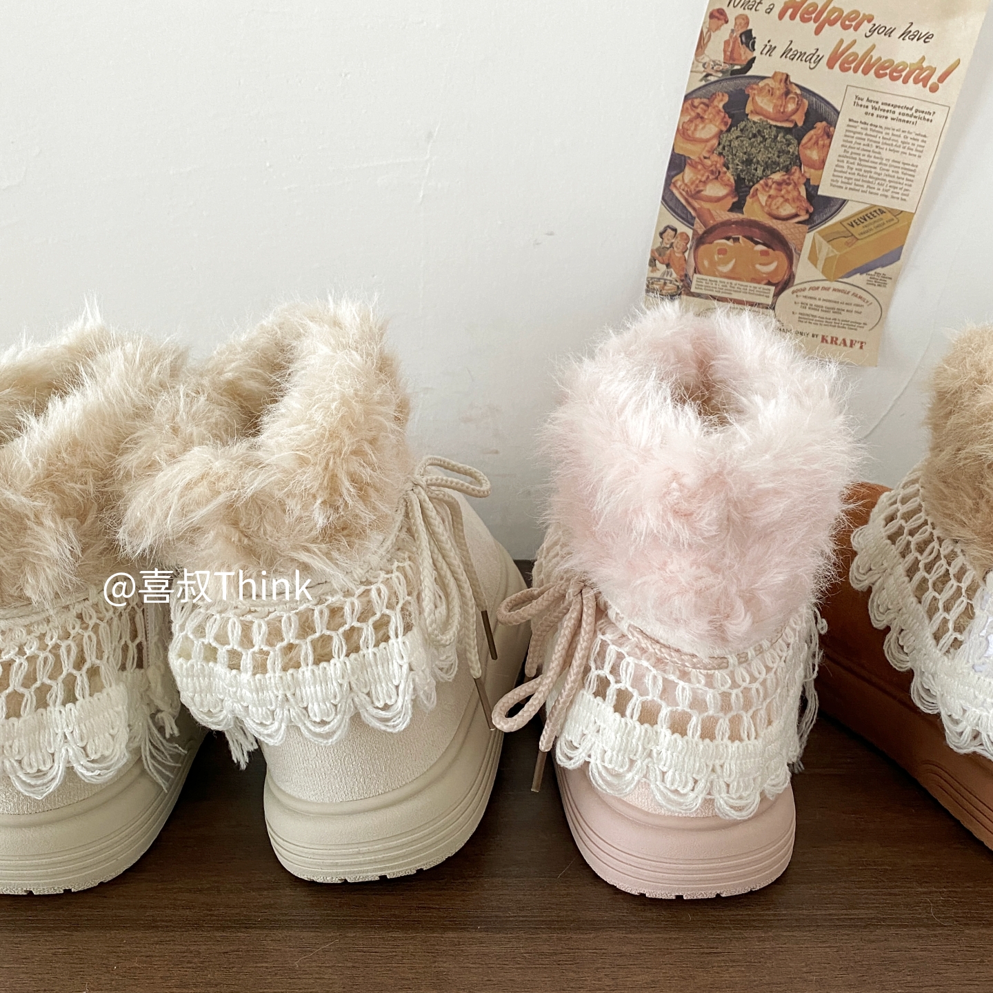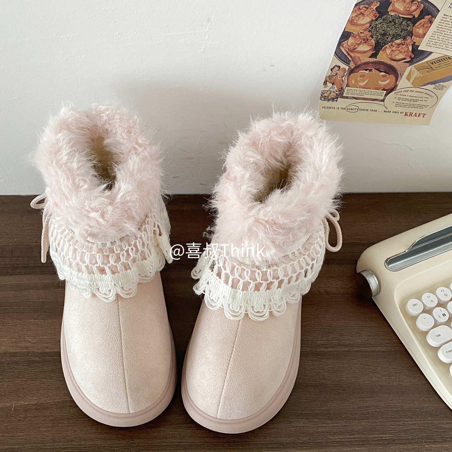 喜叔粉色厚底费尔岛雪地靴女款冬季加绒加厚保暖棉鞋外穿毛毛短靴 [Original Page Link]