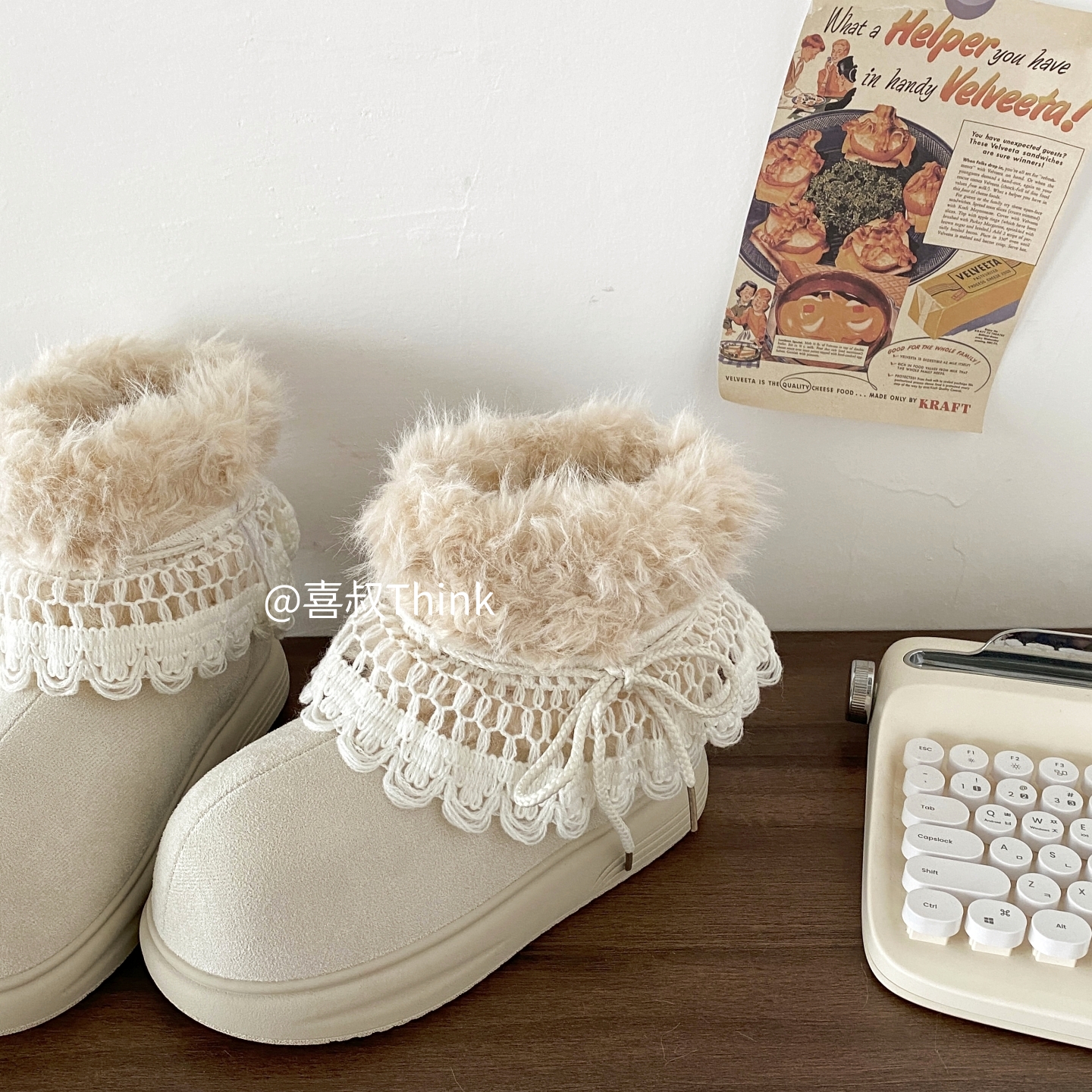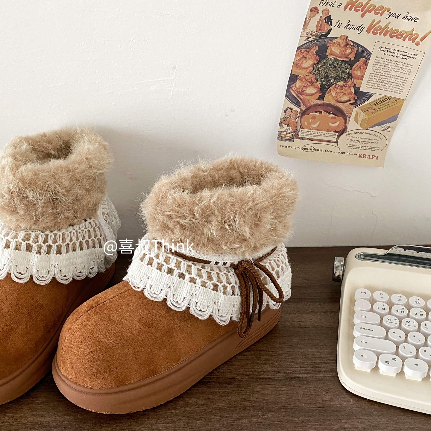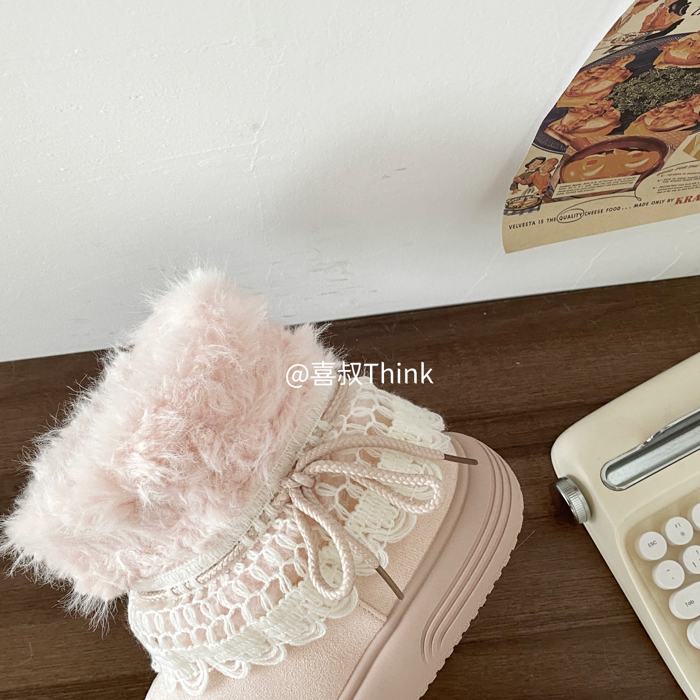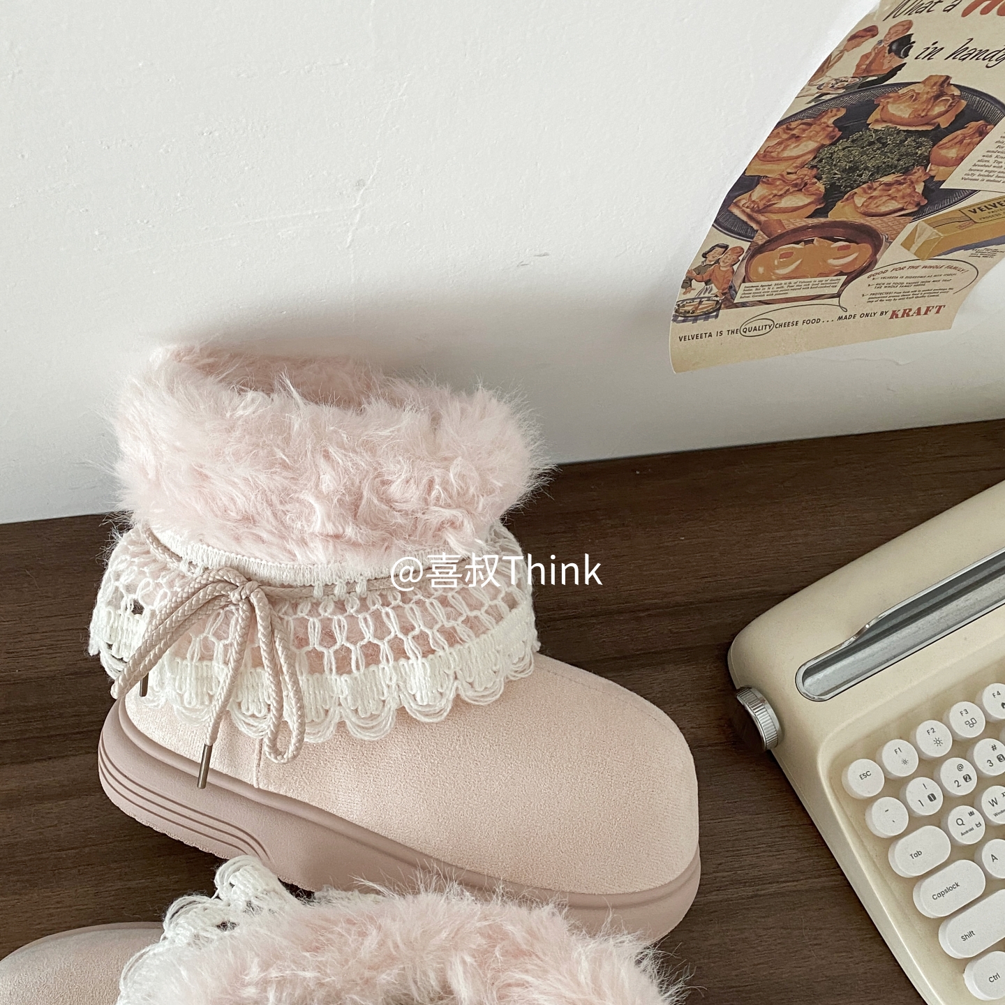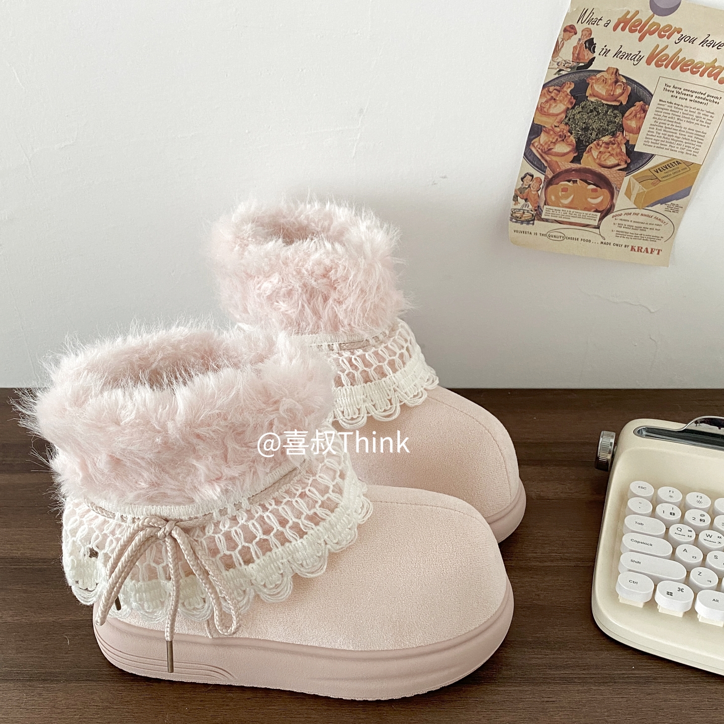 喜叔粉色厚底费尔岛雪地靴女款冬季加绒加厚保暖棉鞋外穿毛毛短靴 [Original Page Link]