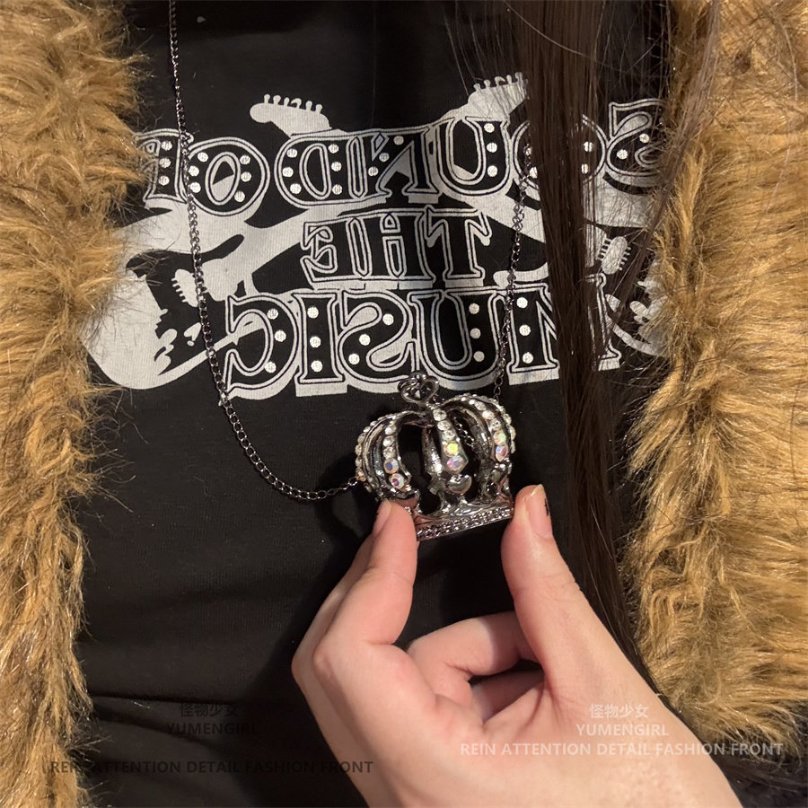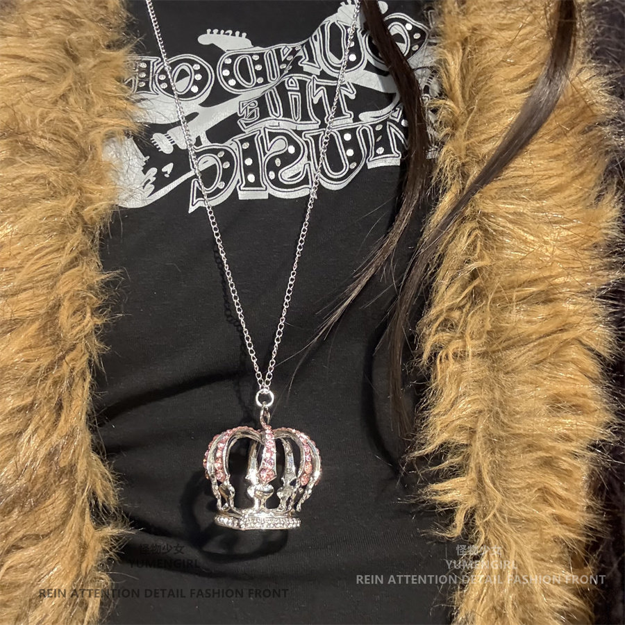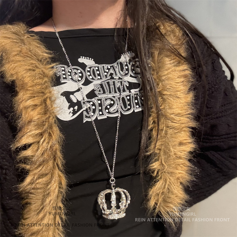 新款水钻皇冠项链长款女复古辣妹秋冬古着高级感毛衣链长款饰品 [Original Page Link]