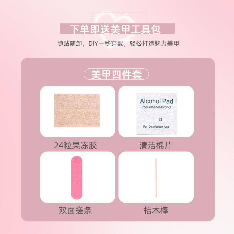 M324秋日米菲萌系小猫蝴蝶结穿戴甲中长款高级感可爱半手工美甲 [Original Page Link]