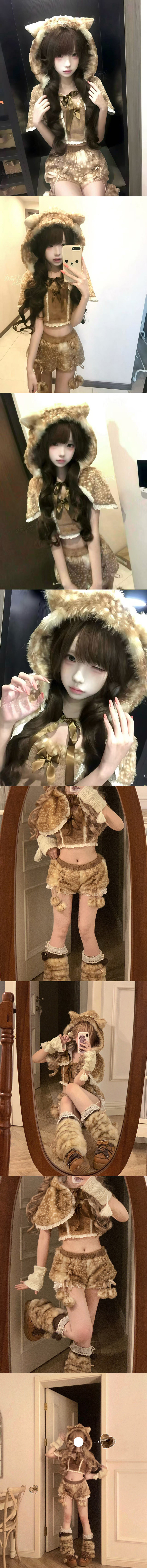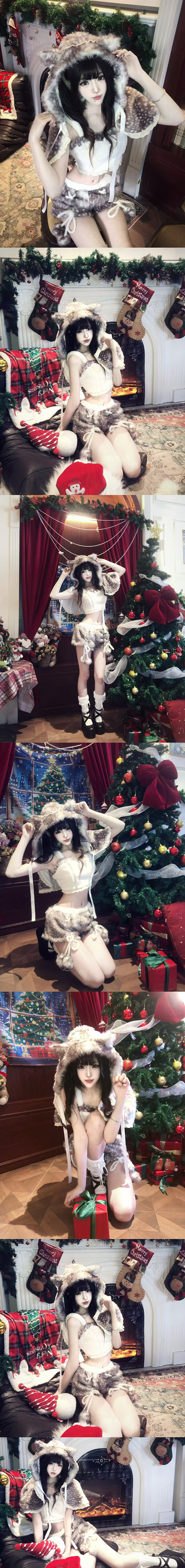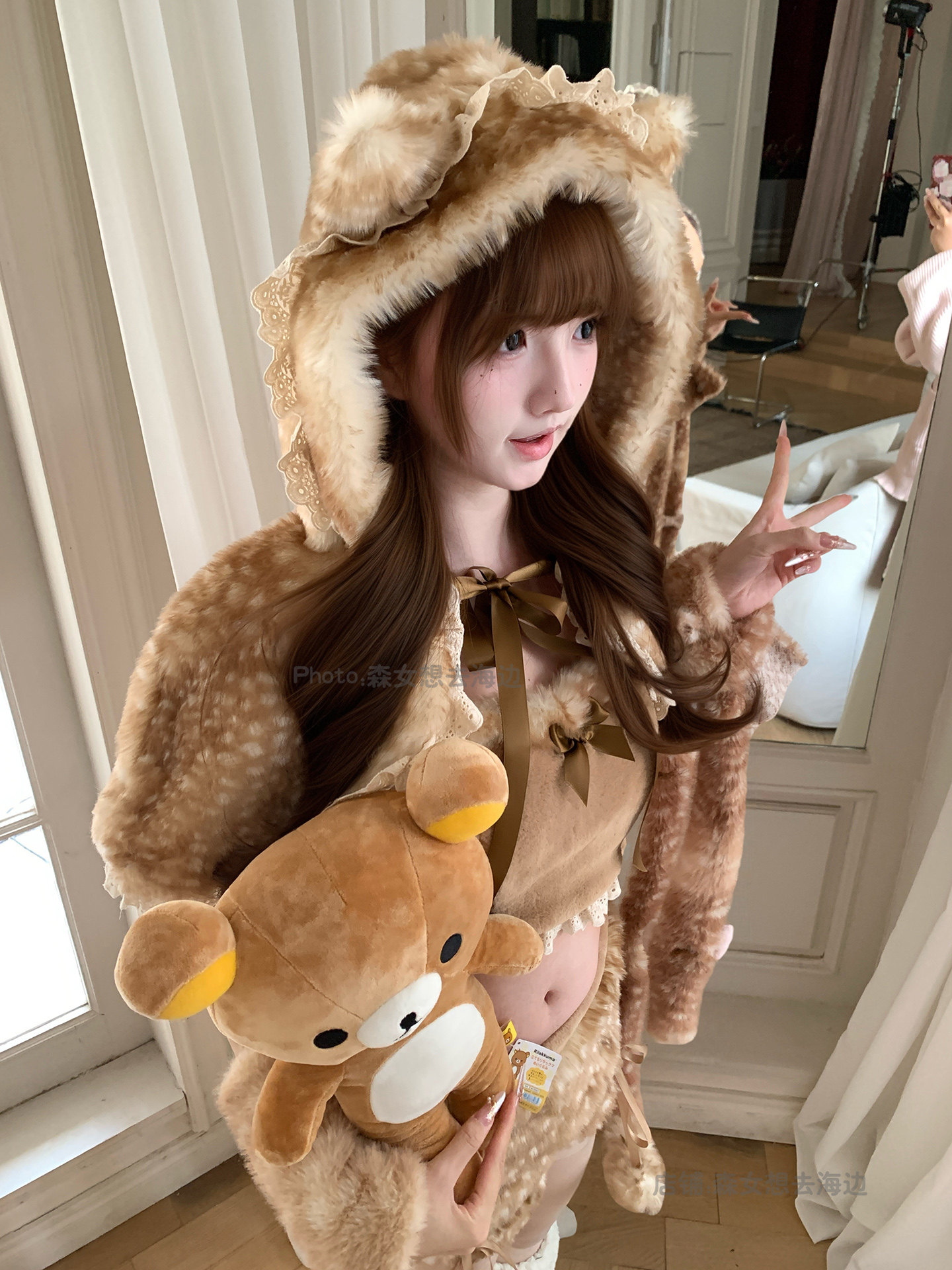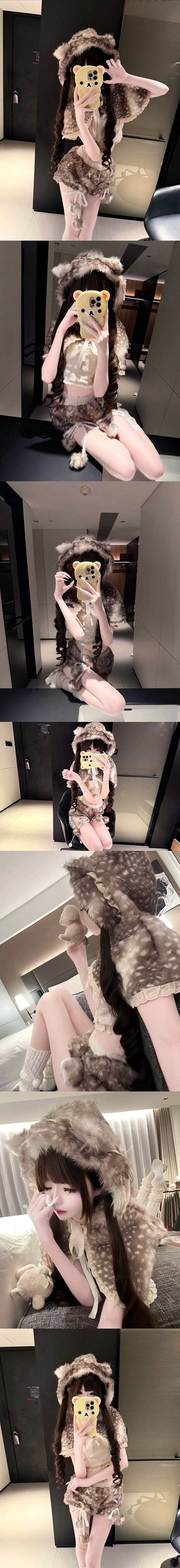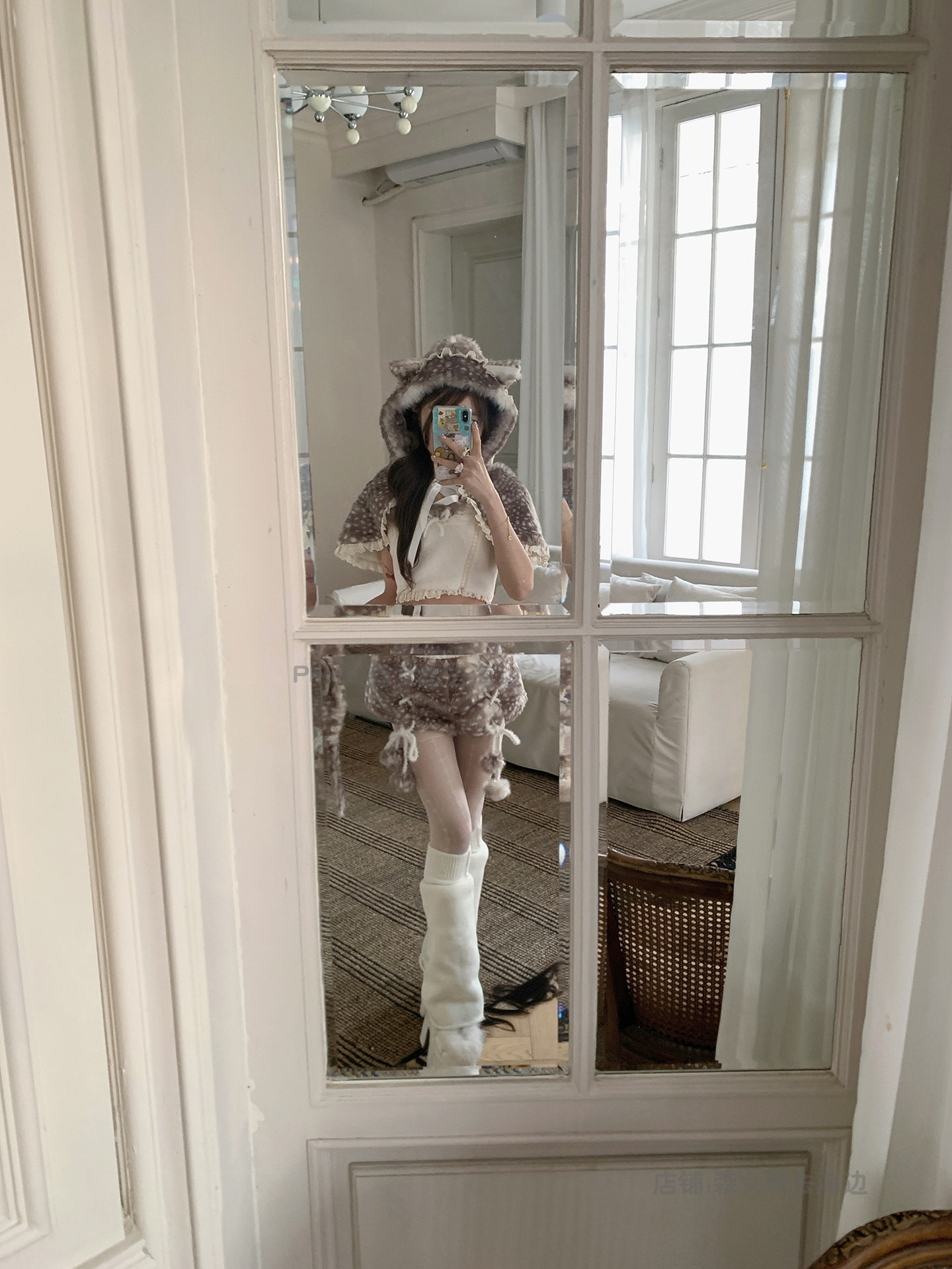 森女系原创想去海边 饼干小鹿 可爱小鹿纹圣诞风套装斗篷短裤吊带 [Original Page Link]