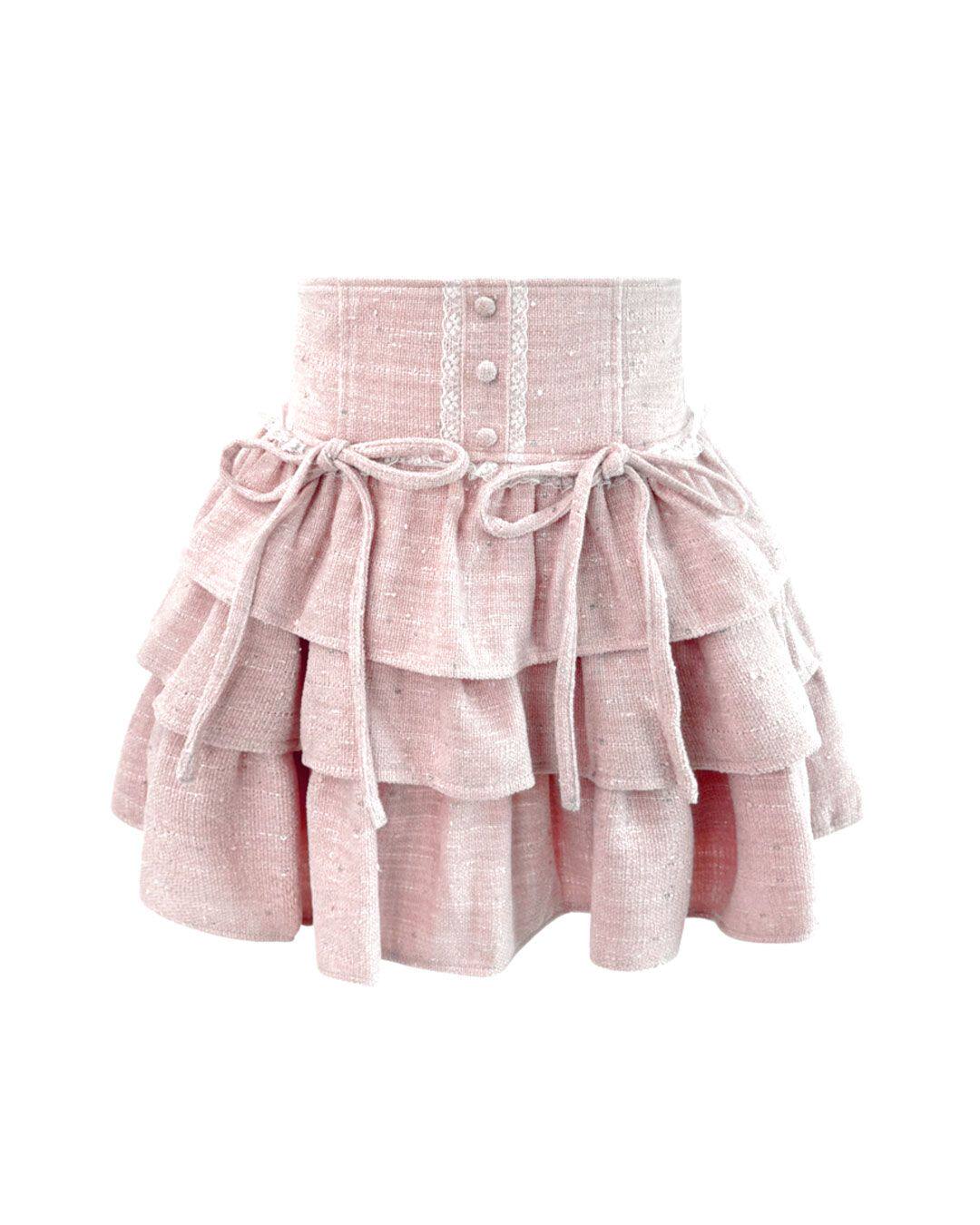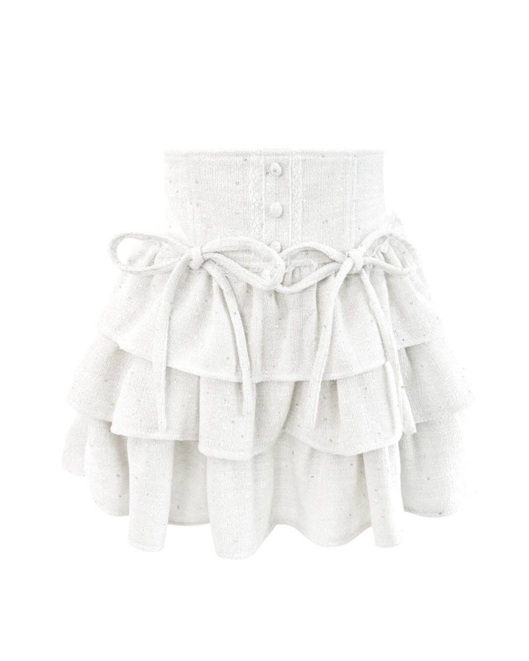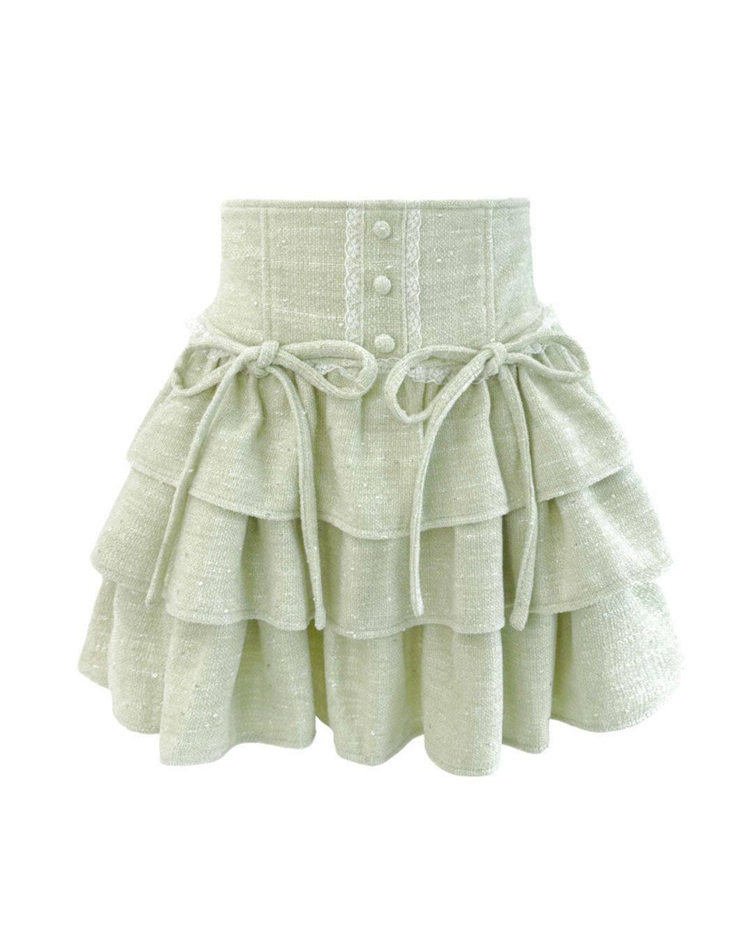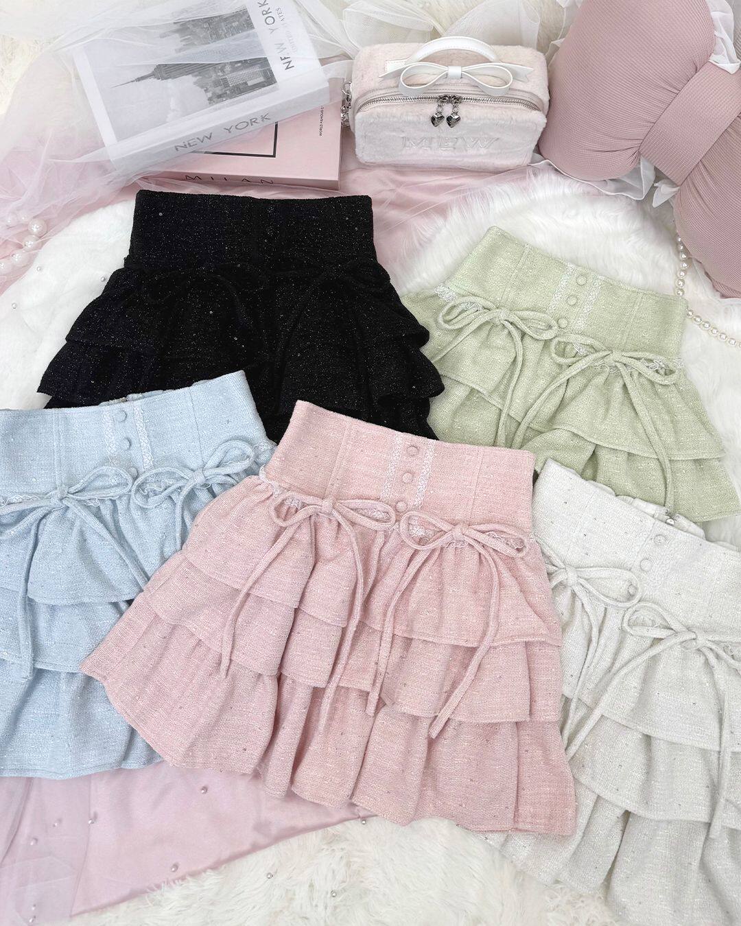 Honeymew style tweed cake skirt, high-waisted, multi-pleated, bow-tie short skirt, new women's skirt.