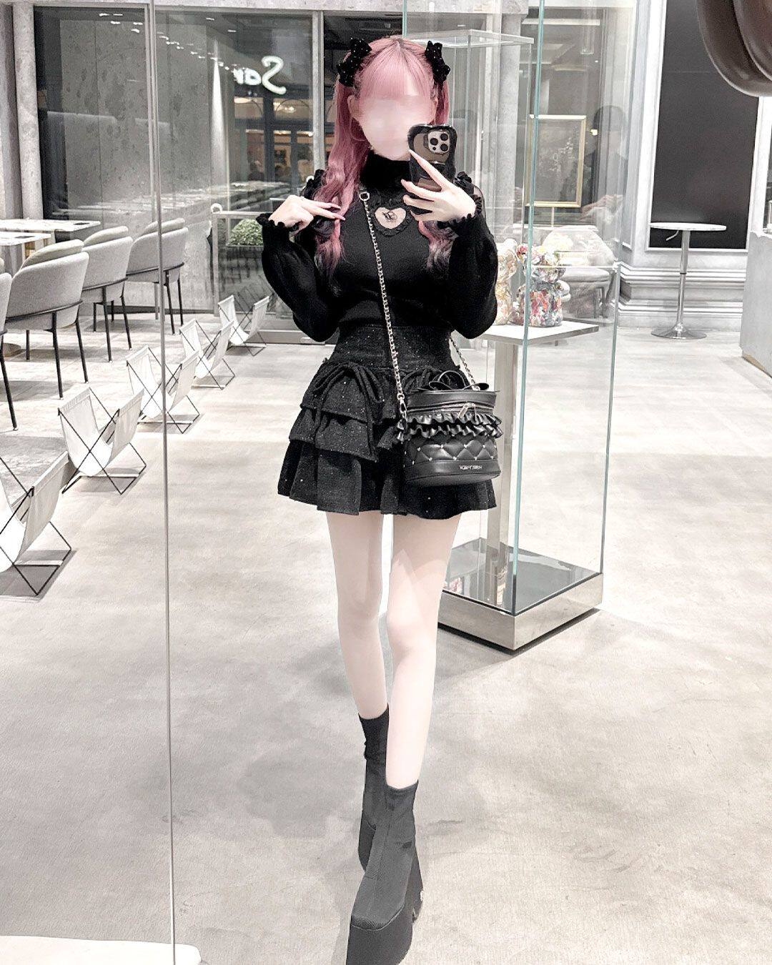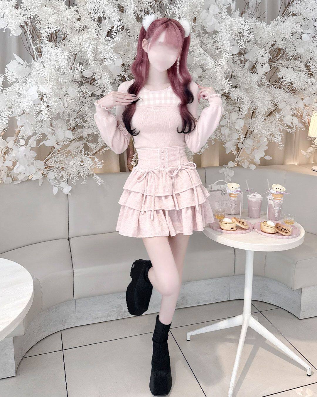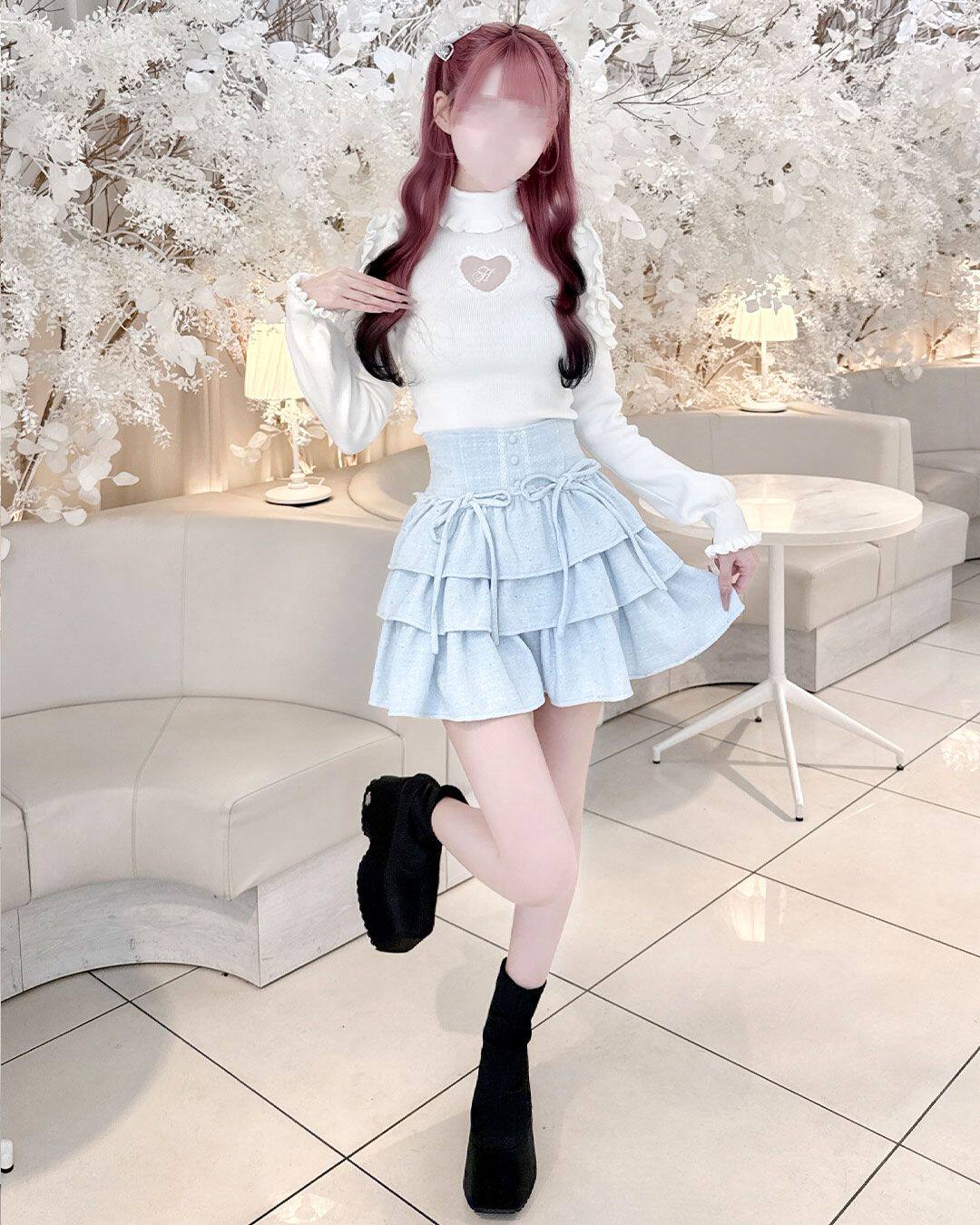 Honeymew同款粗花呢蛋糕裙高腰多层褶蝴蝶结系带短裙新款女半身裙 [Original Page Link]