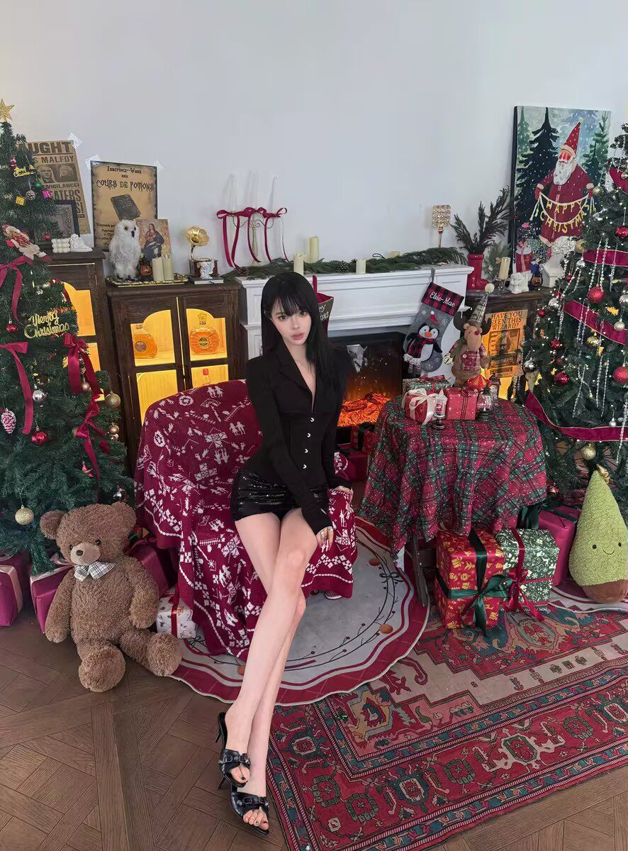 TONGAABB Hot Girl Style Black Deep V-Neck Button-Down Fishbone Top for Women, Autumn and Winter Slim Fit Waist-Defining Top
