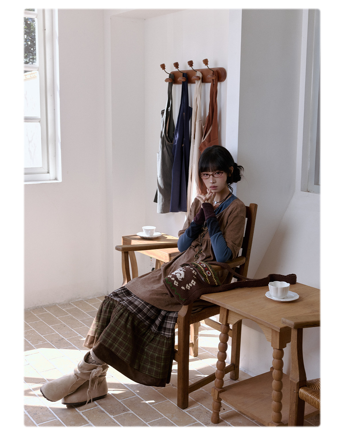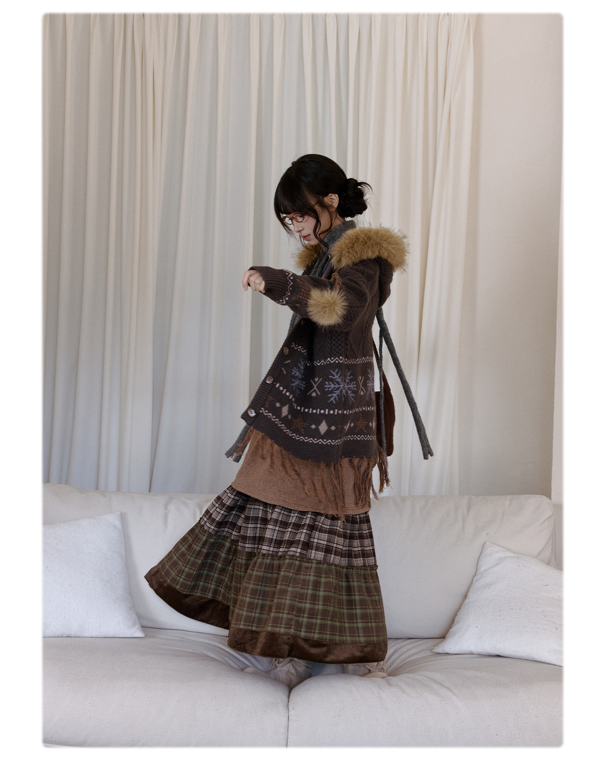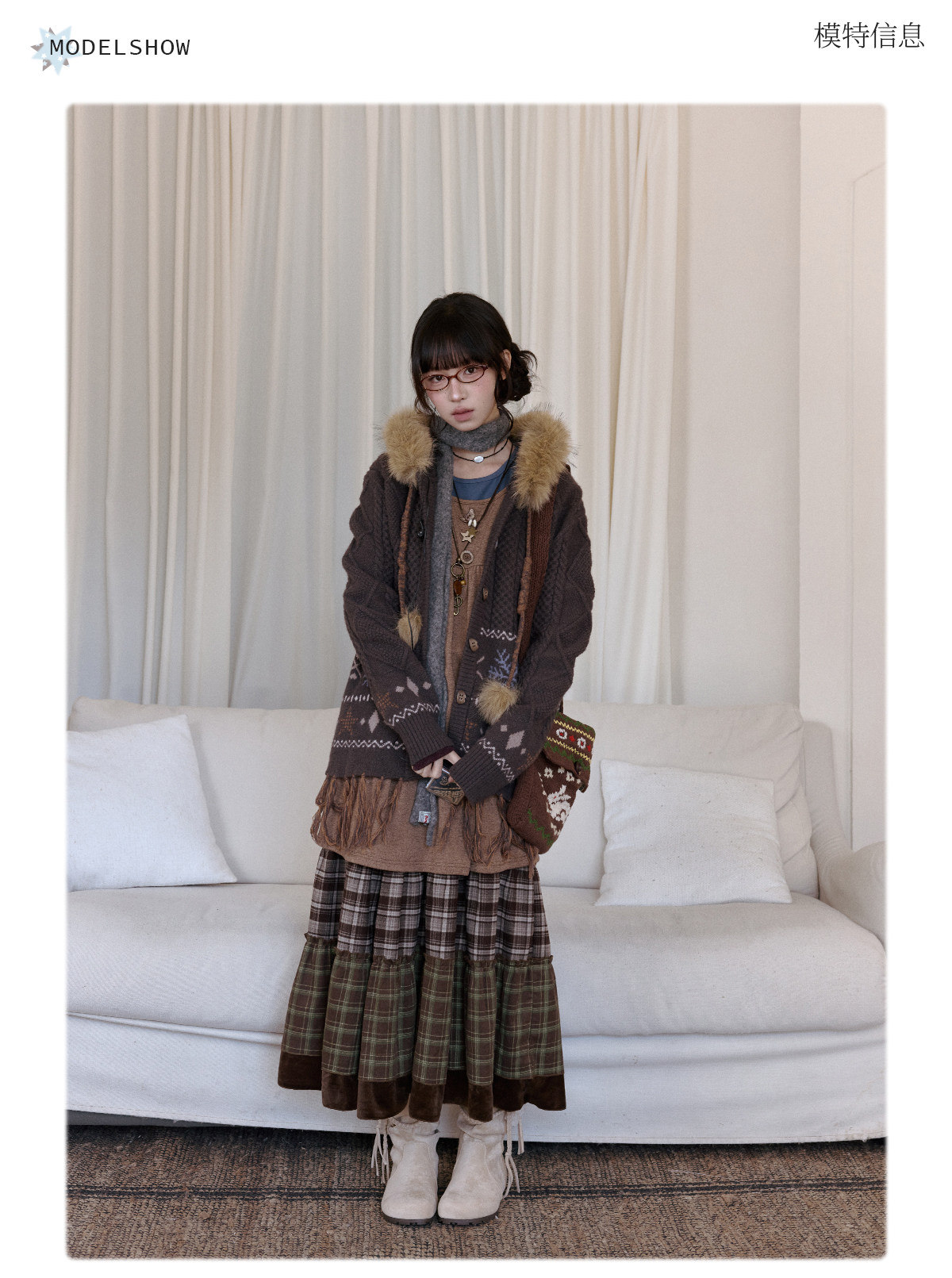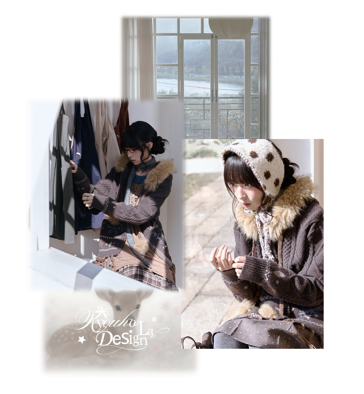 【Gengdou's Story】Twilight Deer Hunting Forest Style Lazy Knit Set with Tassel Wool Coat Loose Autumn/Winter